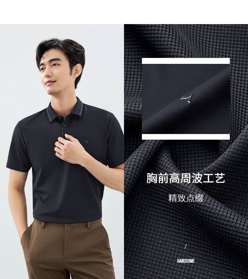 【华夫格肌理/凉感】柒牌短袖POLO衫男夏季新款时尚休闲翻领上衣