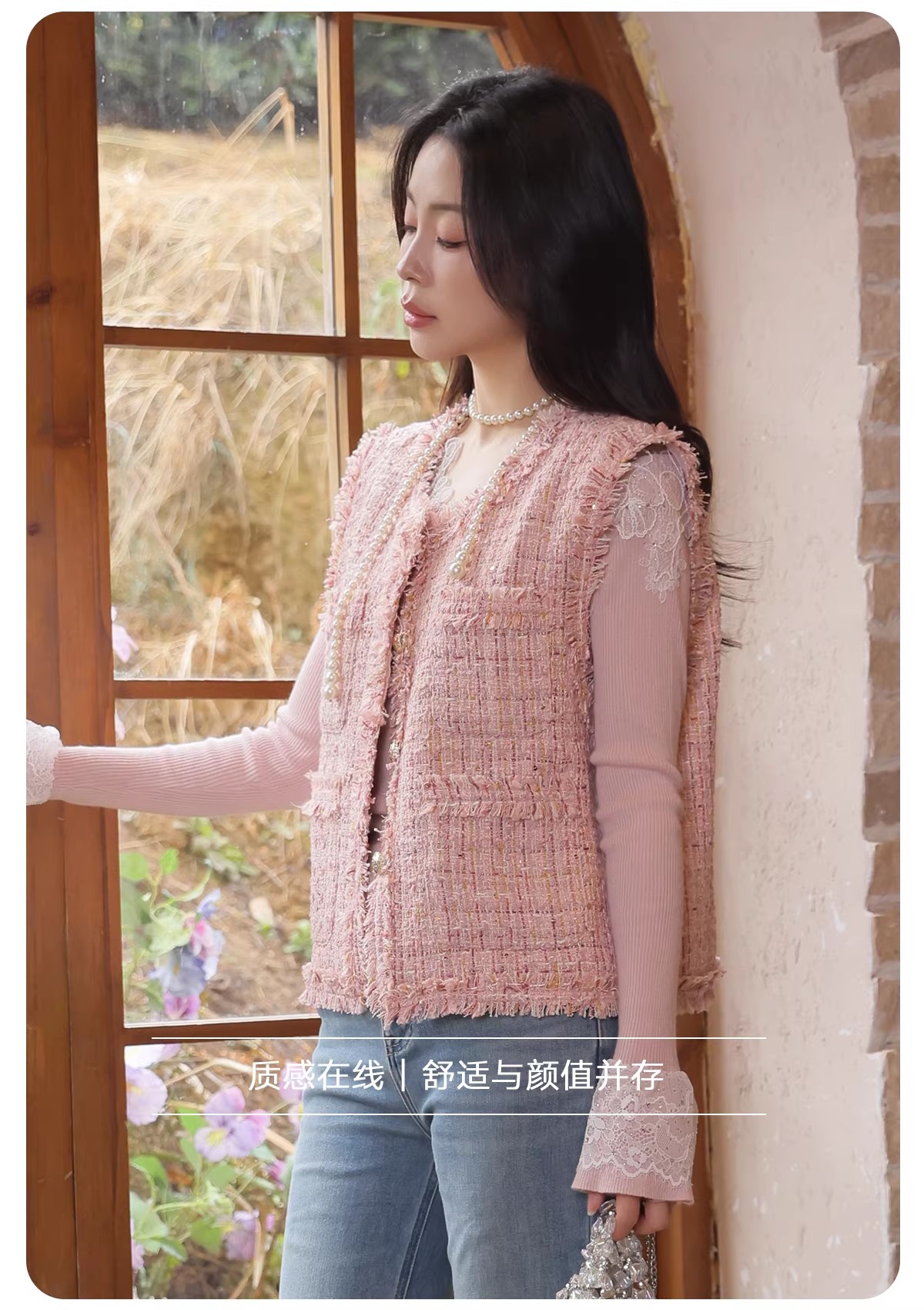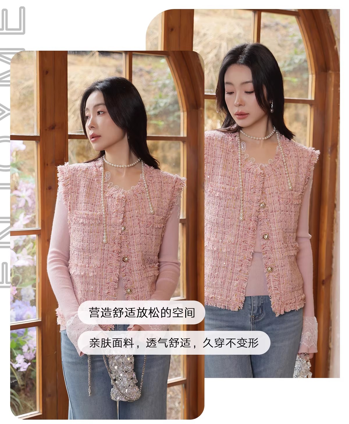 【门店同款】ENJOY春季“柔光芳序”粉雾香颂小香马甲 169393671