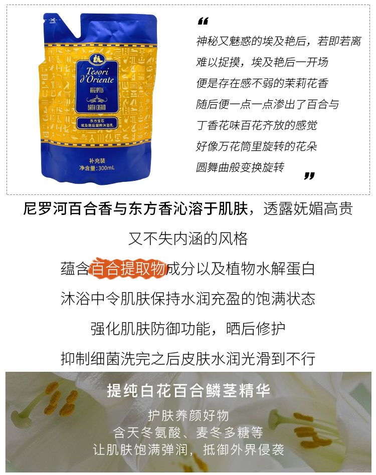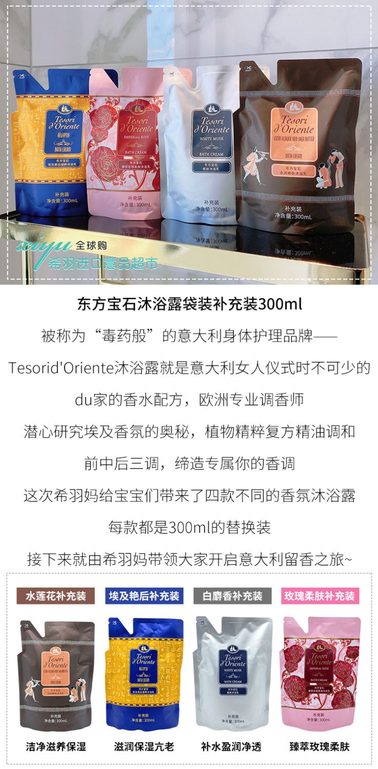 【爆款超低价预售 急单慎拍】意大利东方宝石香氛沐浴露300ml补充持久留香男女学生沐浴露袋装