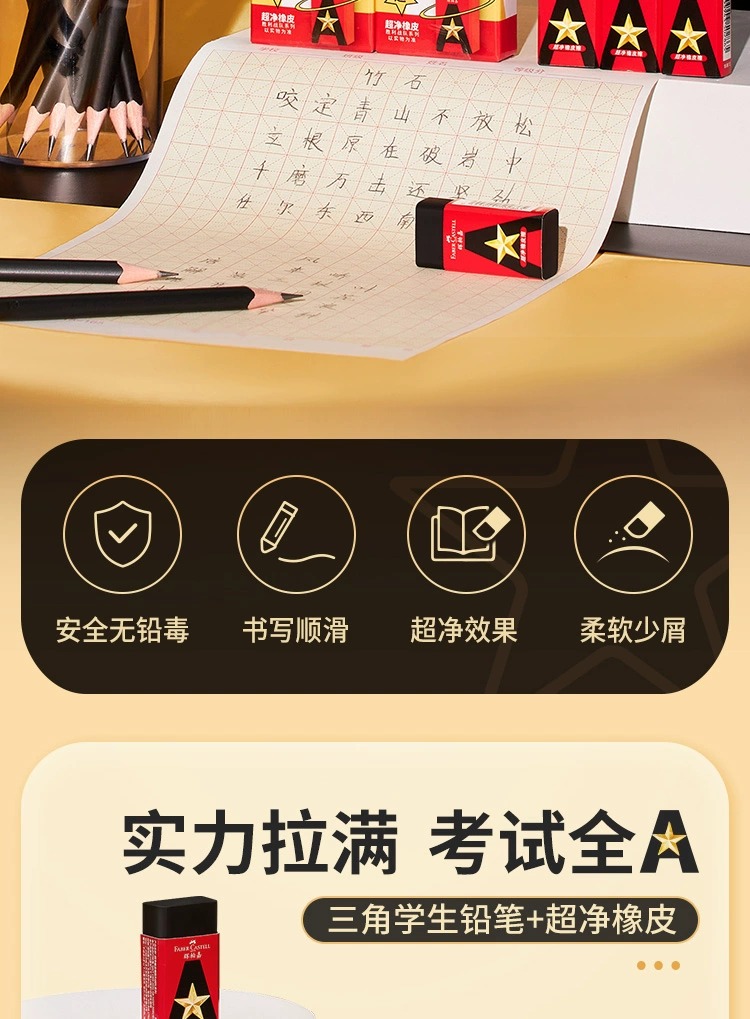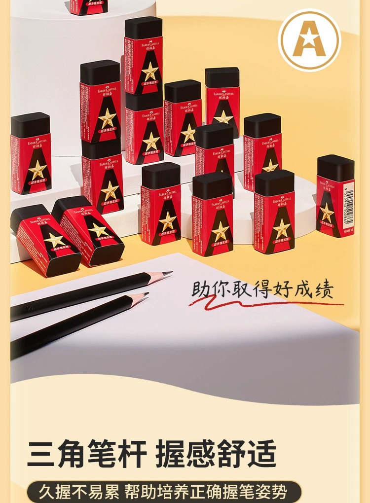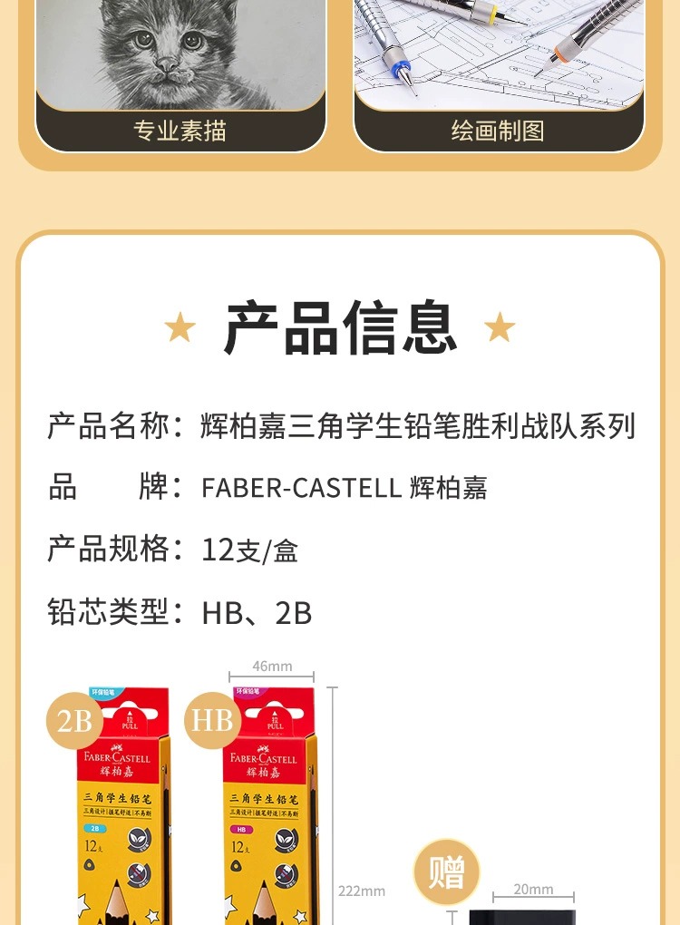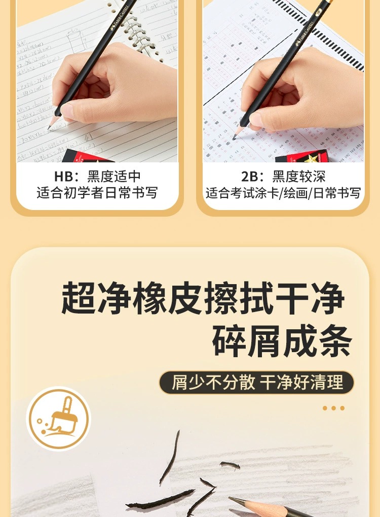 【新品】辉柏嘉三角铅笔HB2B学生铅笔橡皮橡皮擦小学生专用无屑干净考试可用书写绘画