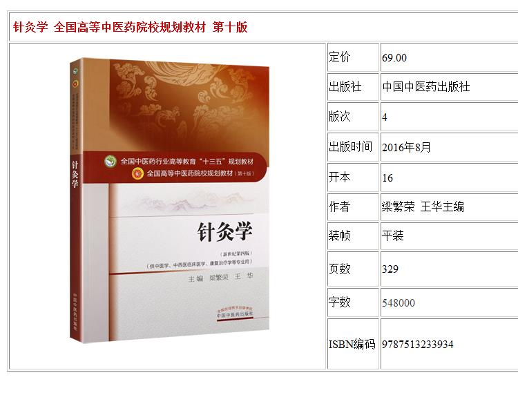 针灸学 新世纪第4四版 全国高等中医药院校规划教材 第十10版 梁繁荣 王华主编 中国中医药出版社供中医学中西医临床医学等专业用