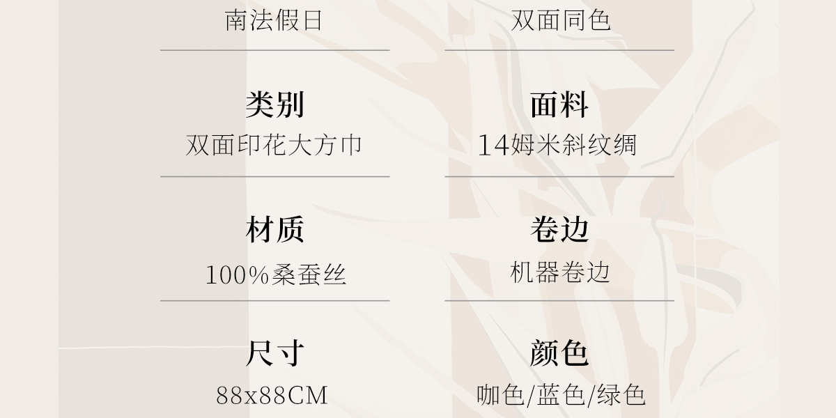 万事利“南法假日”88厘米双面印花大方巾