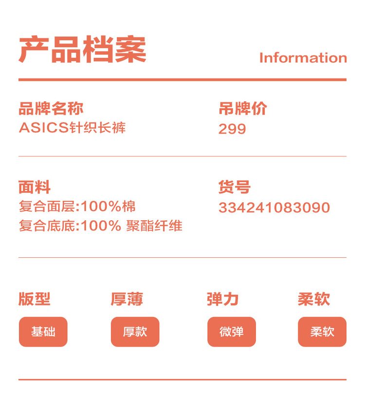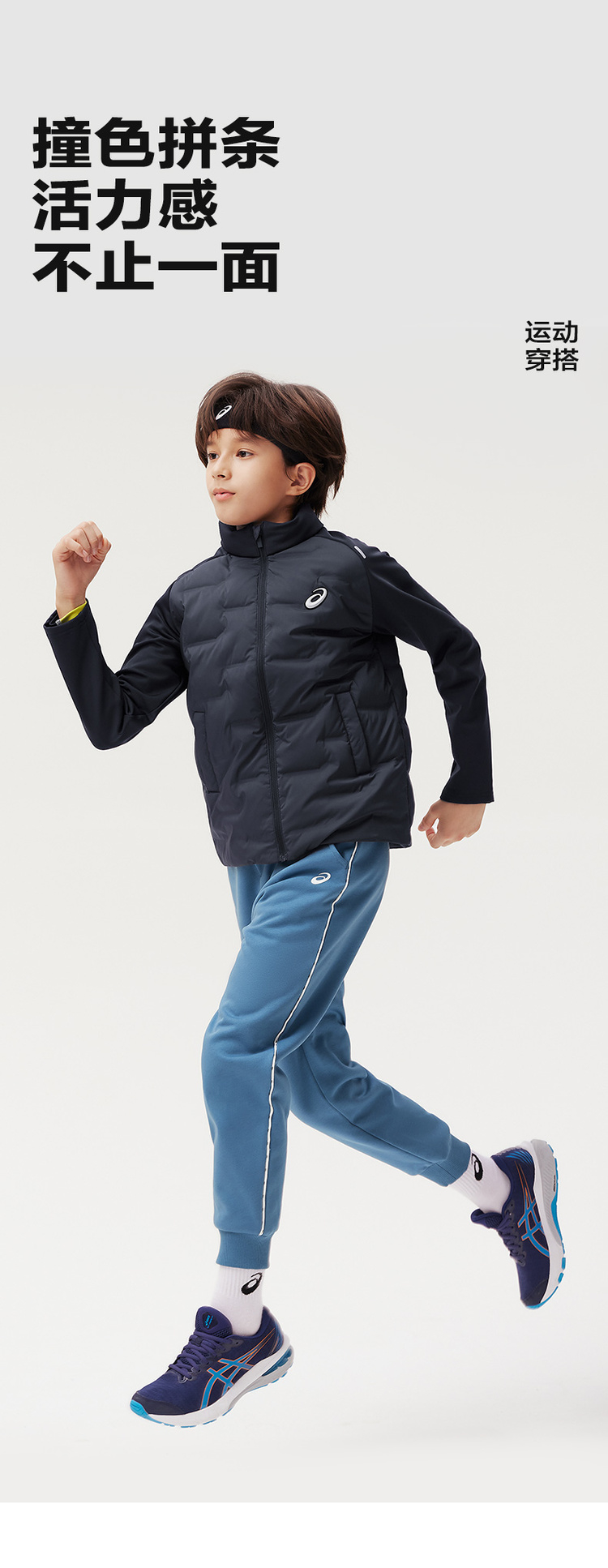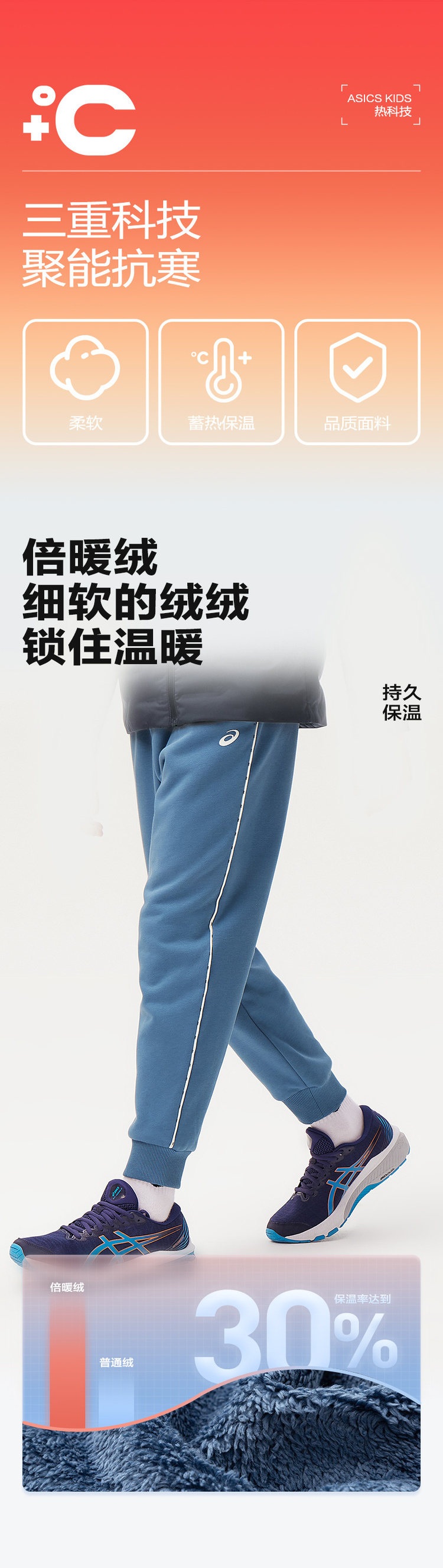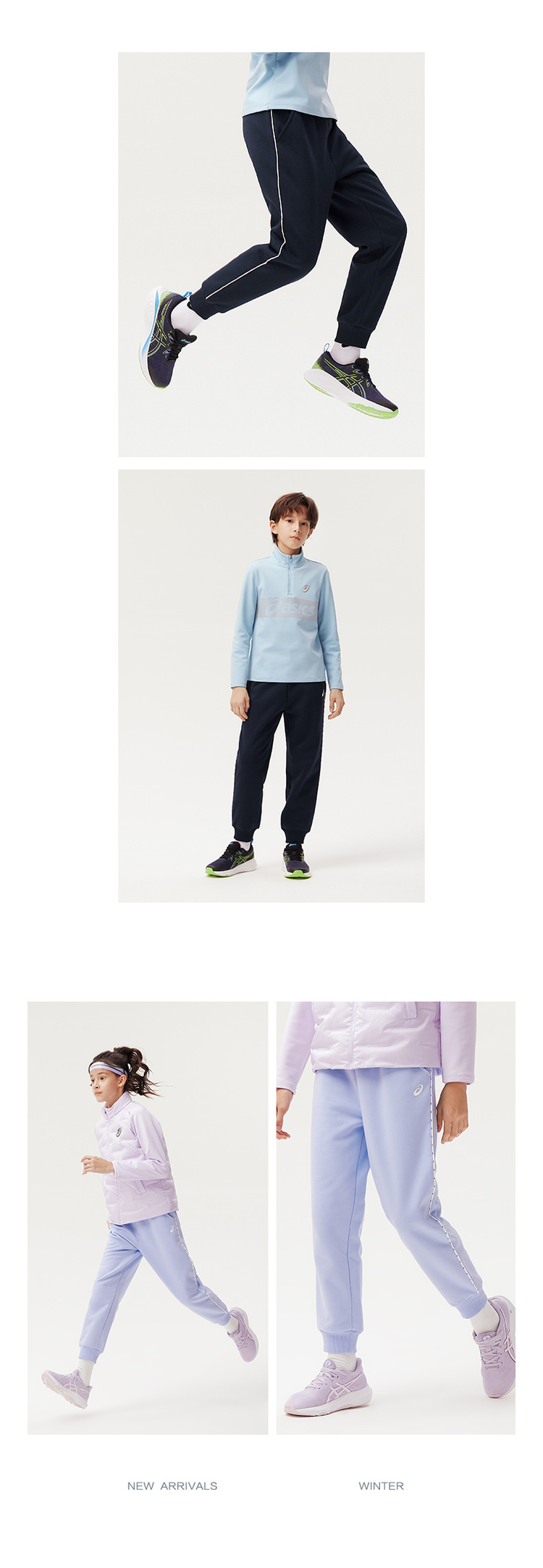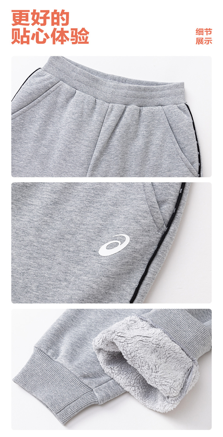 Asics/亚瑟士童装2024年秋冬季新品针织卫裤加绒加厚保暖运动长裤