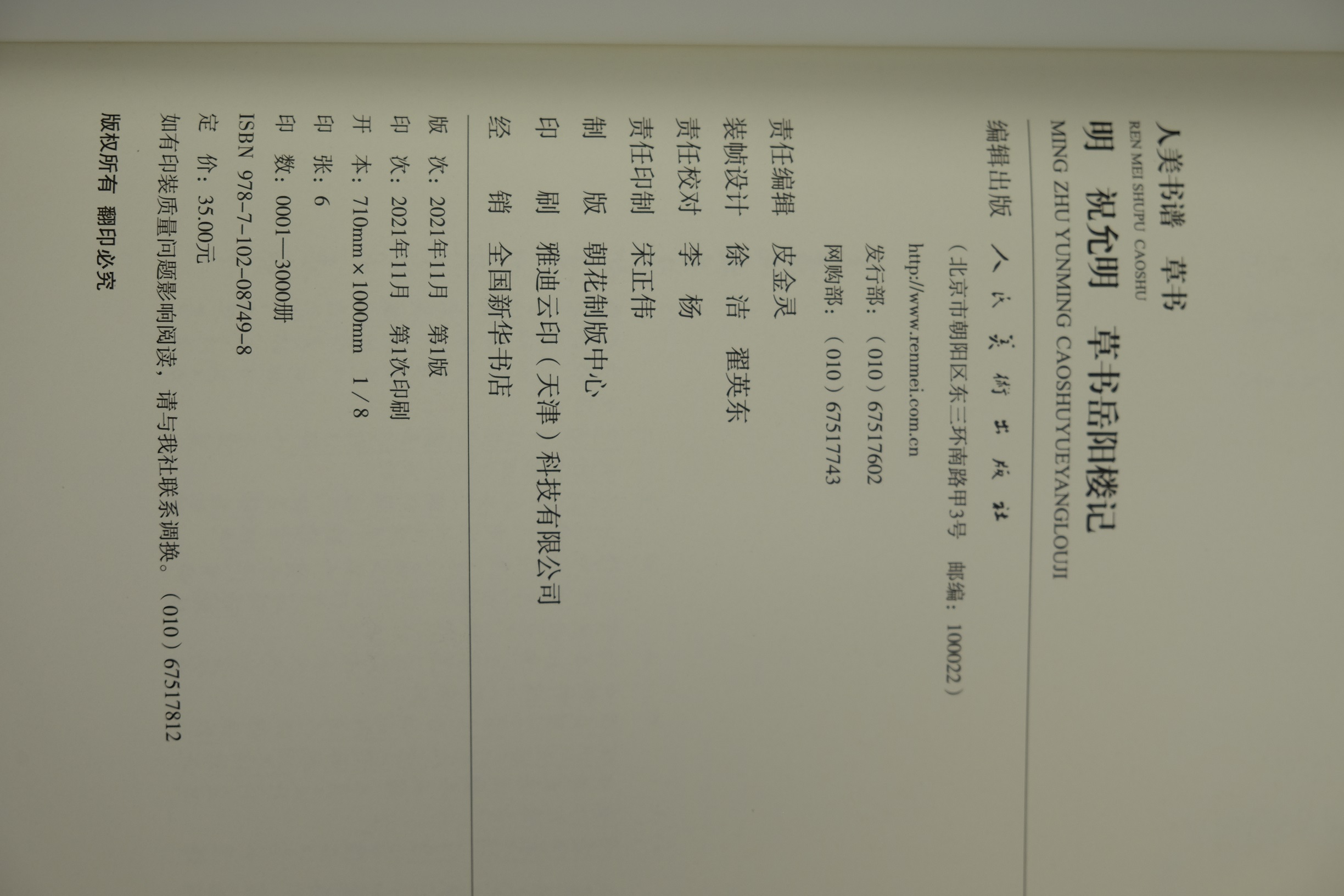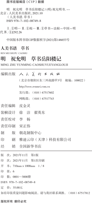 人美书谱 草书 明 祝允明 草书岳阳楼记【现货包邮】RM0059