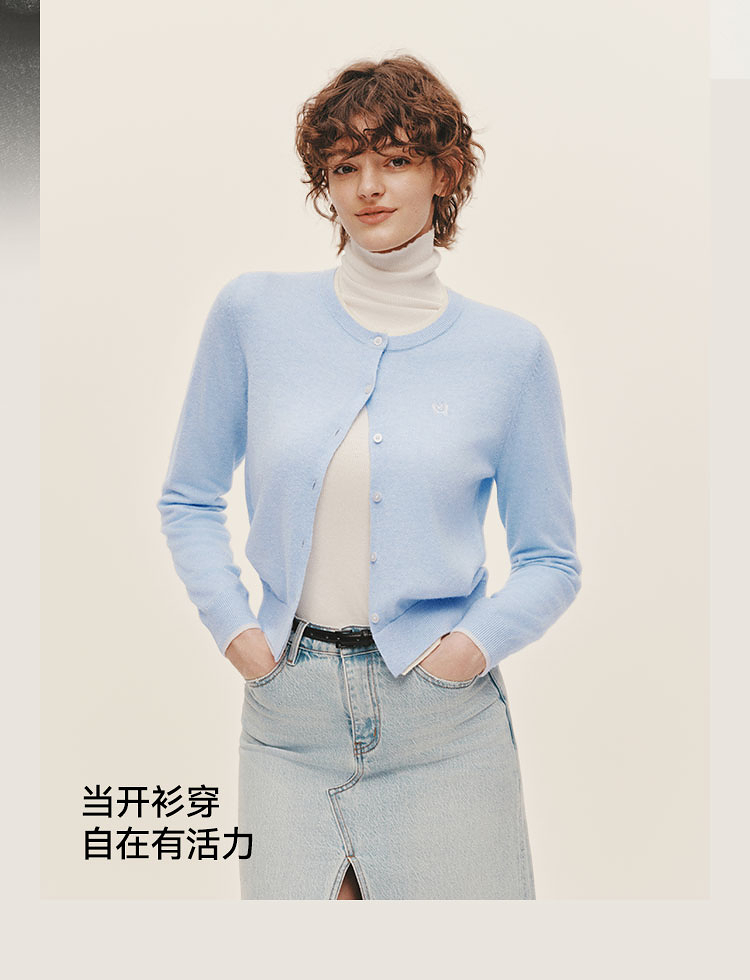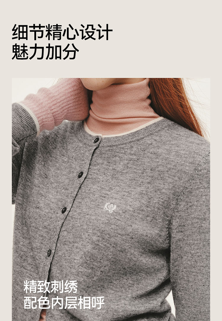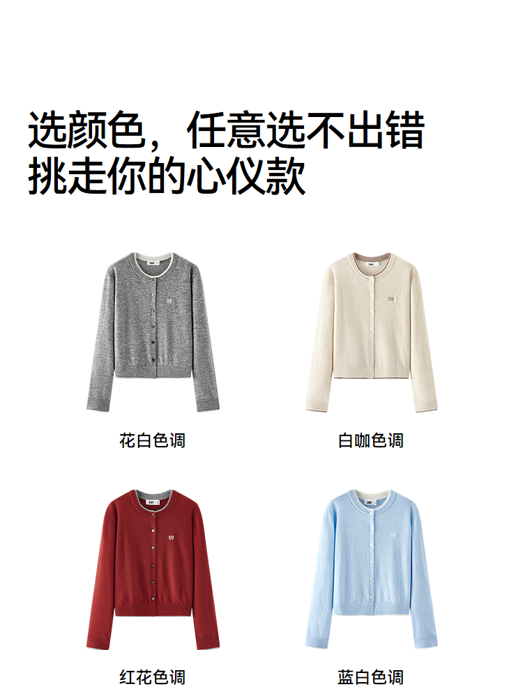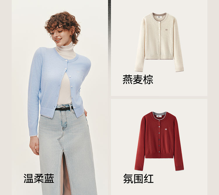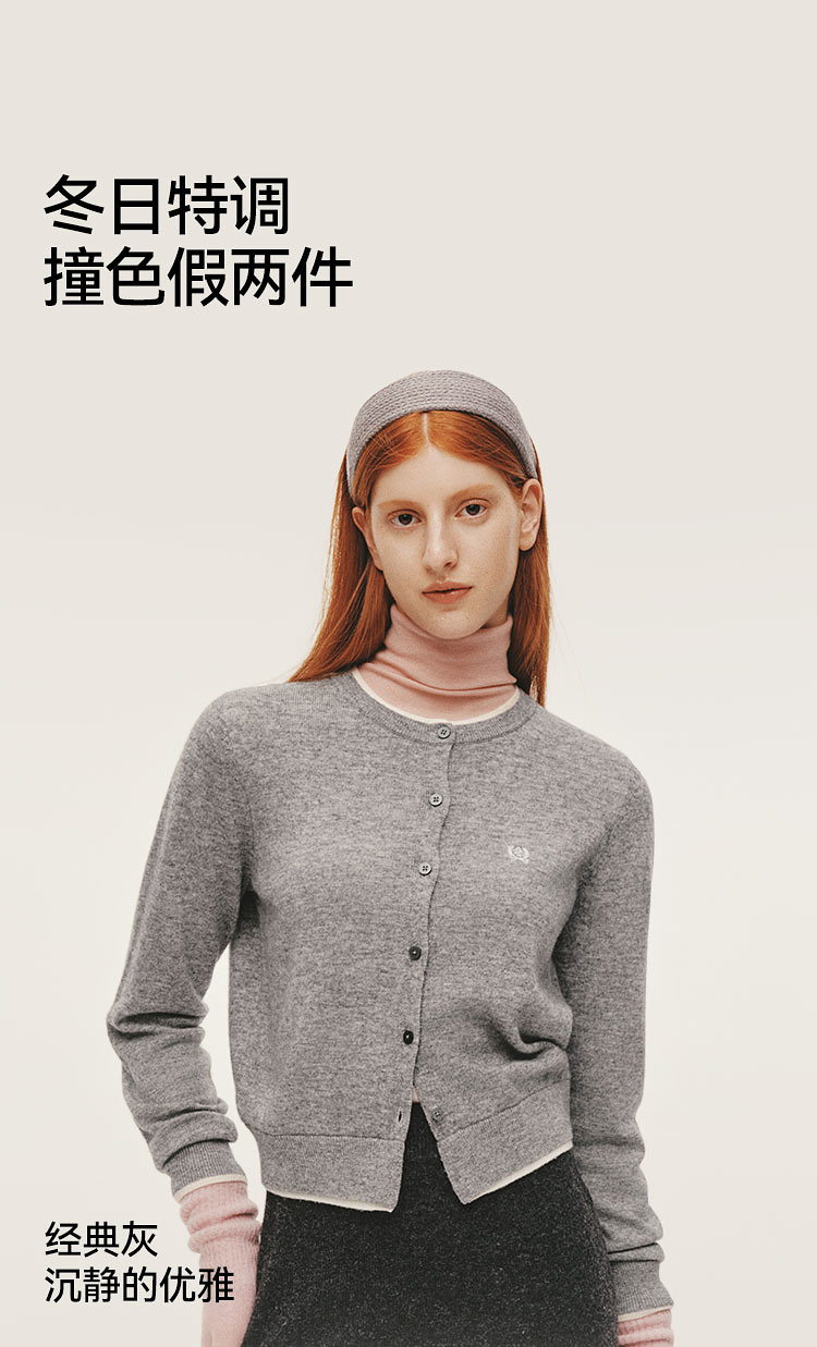 森马针织开衫女短款假两件圆领显瘦2025冬新款刺绣含羊毛毛衫气质