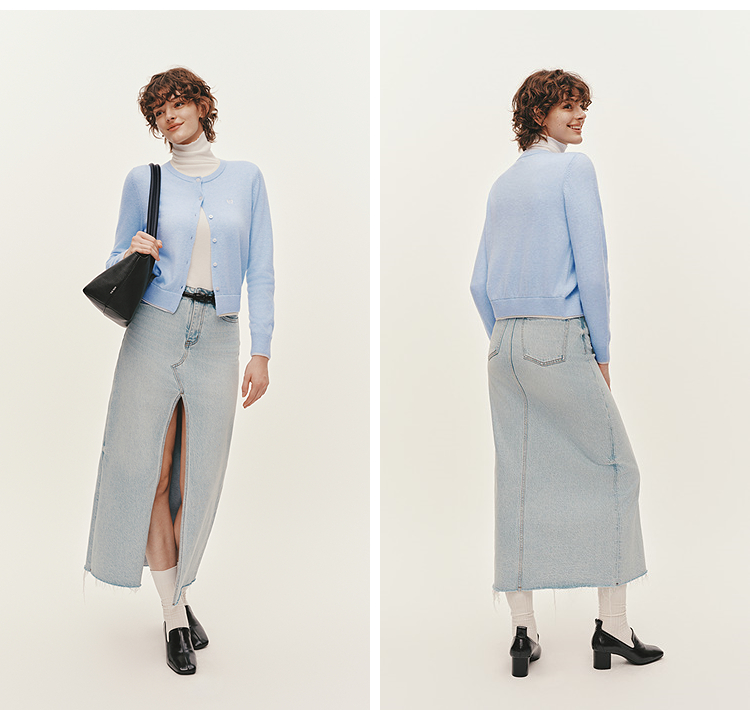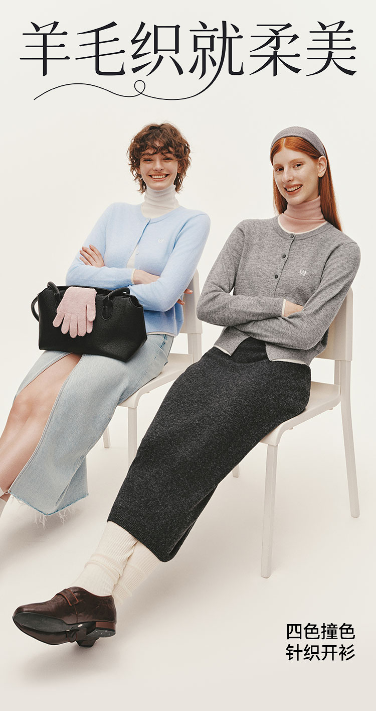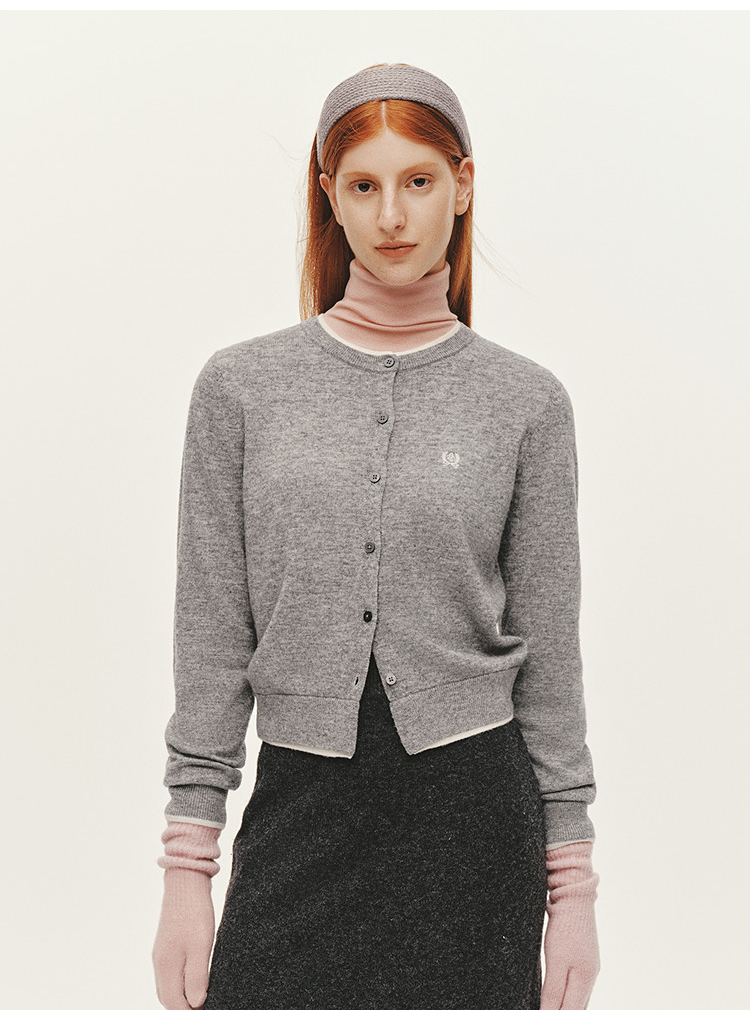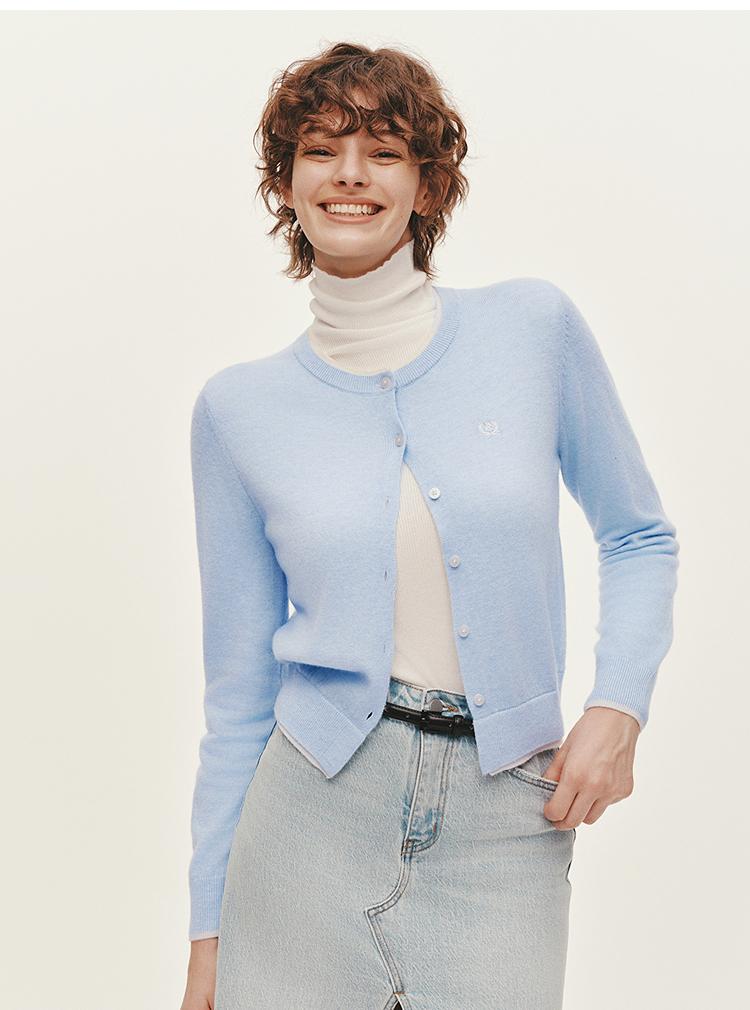 森马针织开衫女短款假两件圆领显瘦2025冬新款刺绣含羊毛毛衫气质