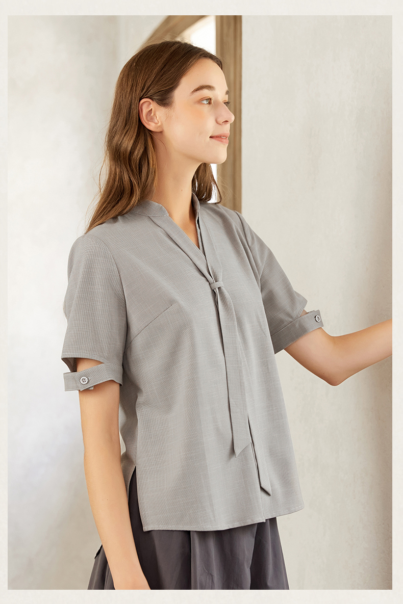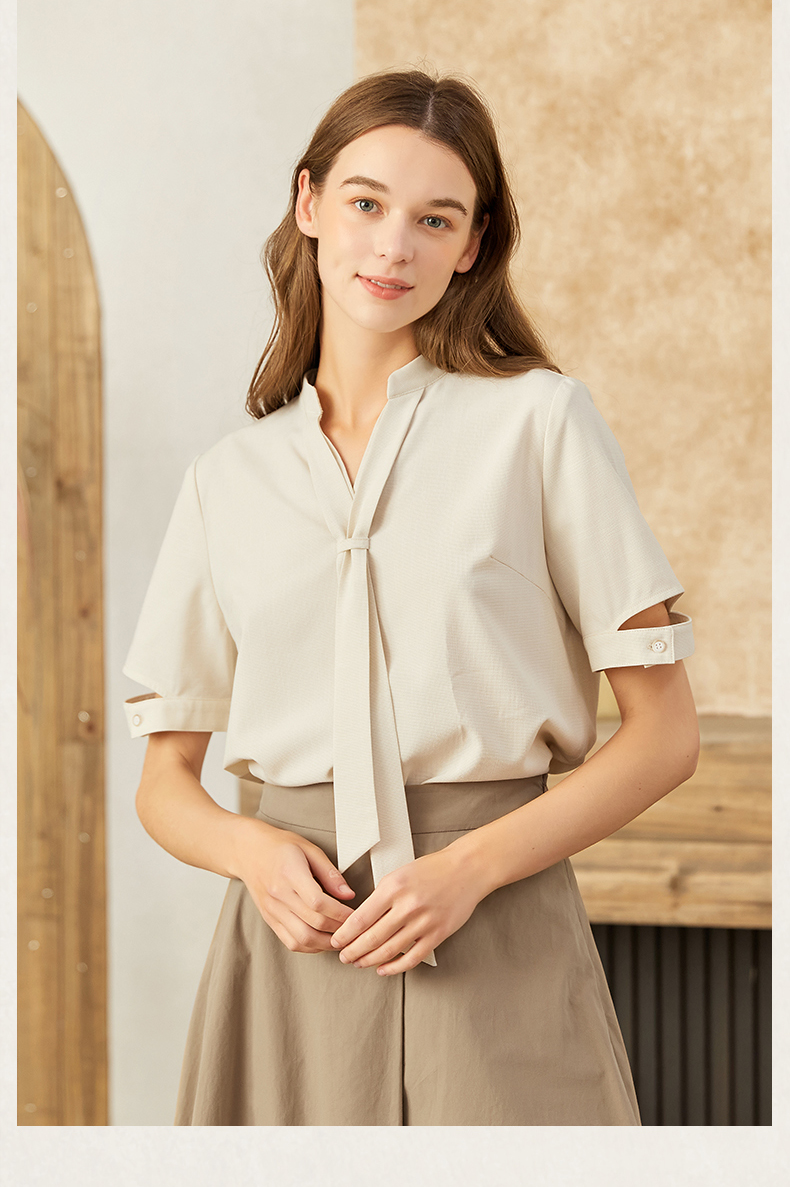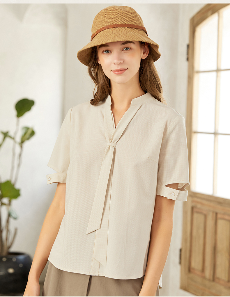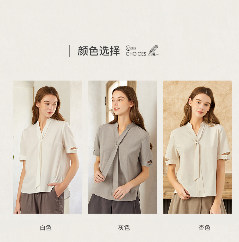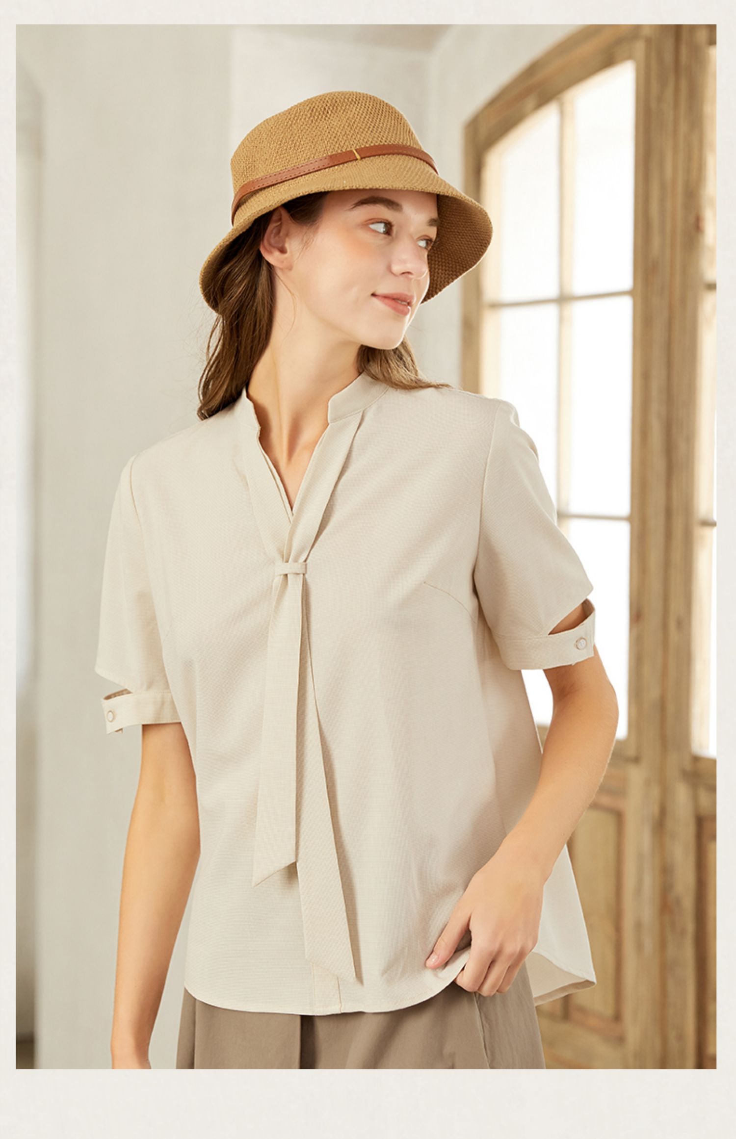 Famecoco范可儿短袖衬衫设计感春夏季V领小众别致上衣女F223BK001