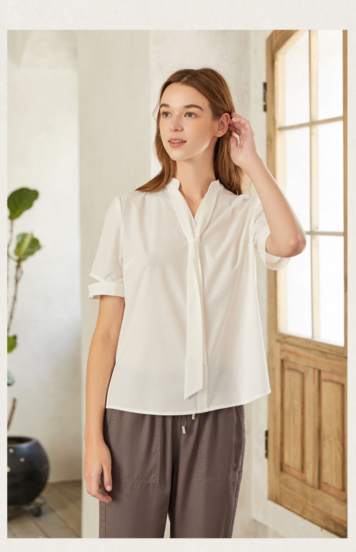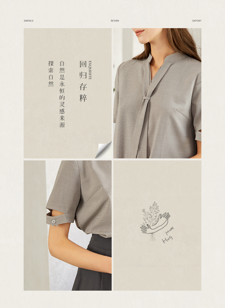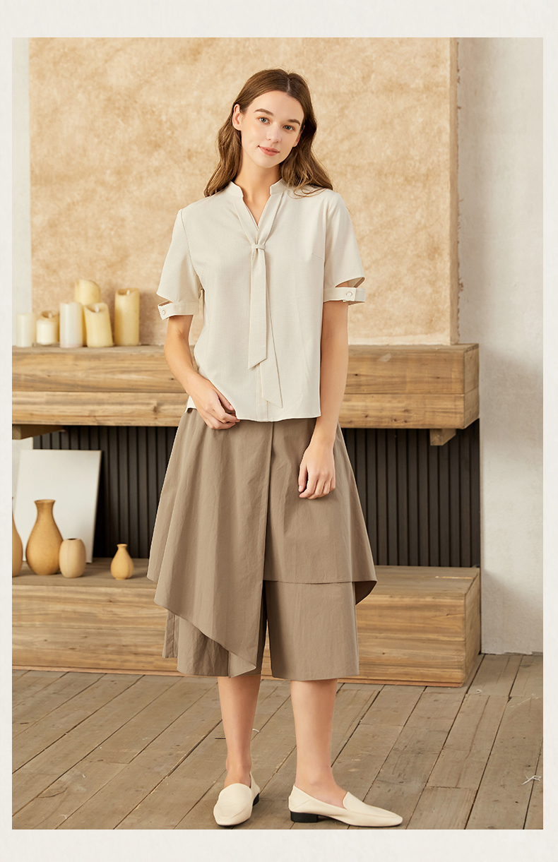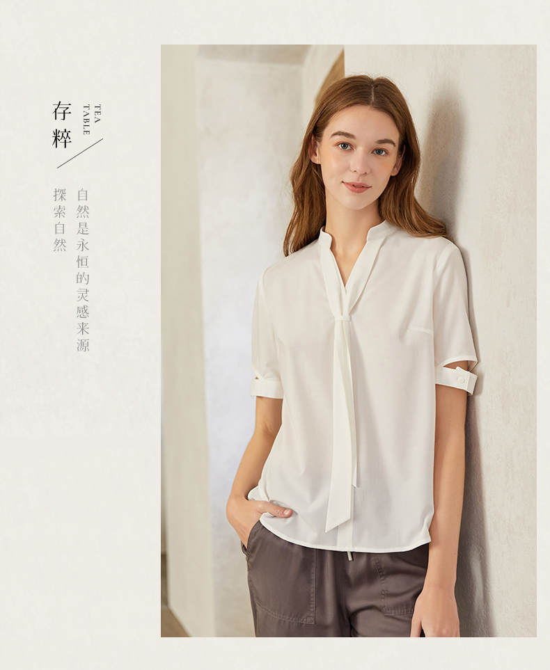 Famecoco范可儿短袖衬衫设计感春夏季V领小众别致上衣女F223BK001