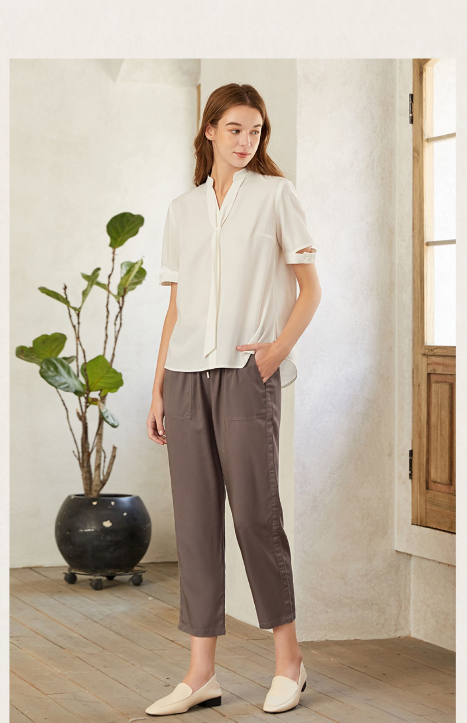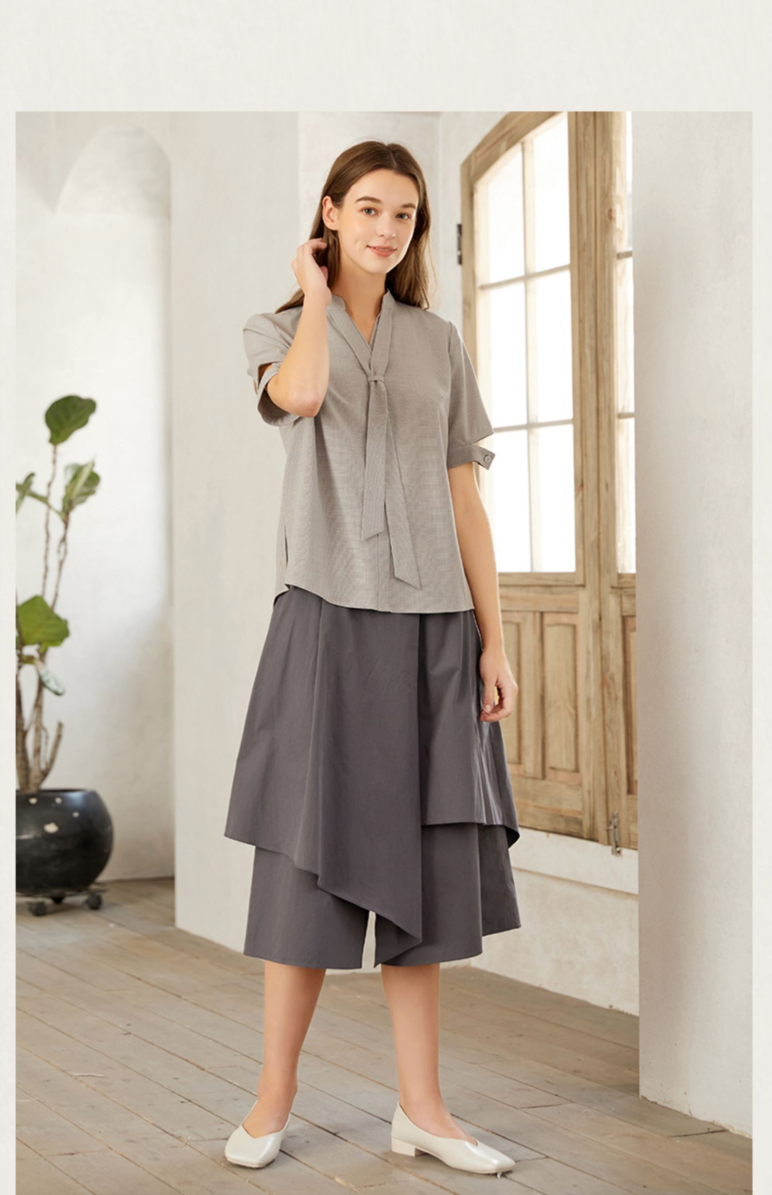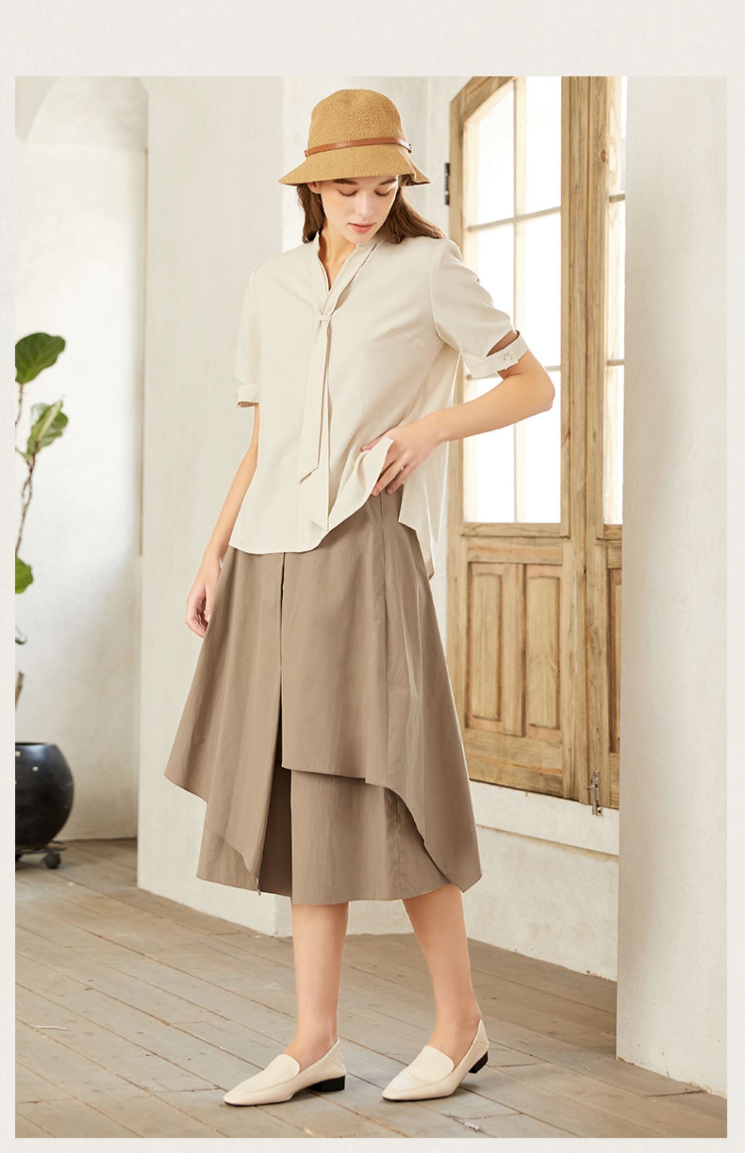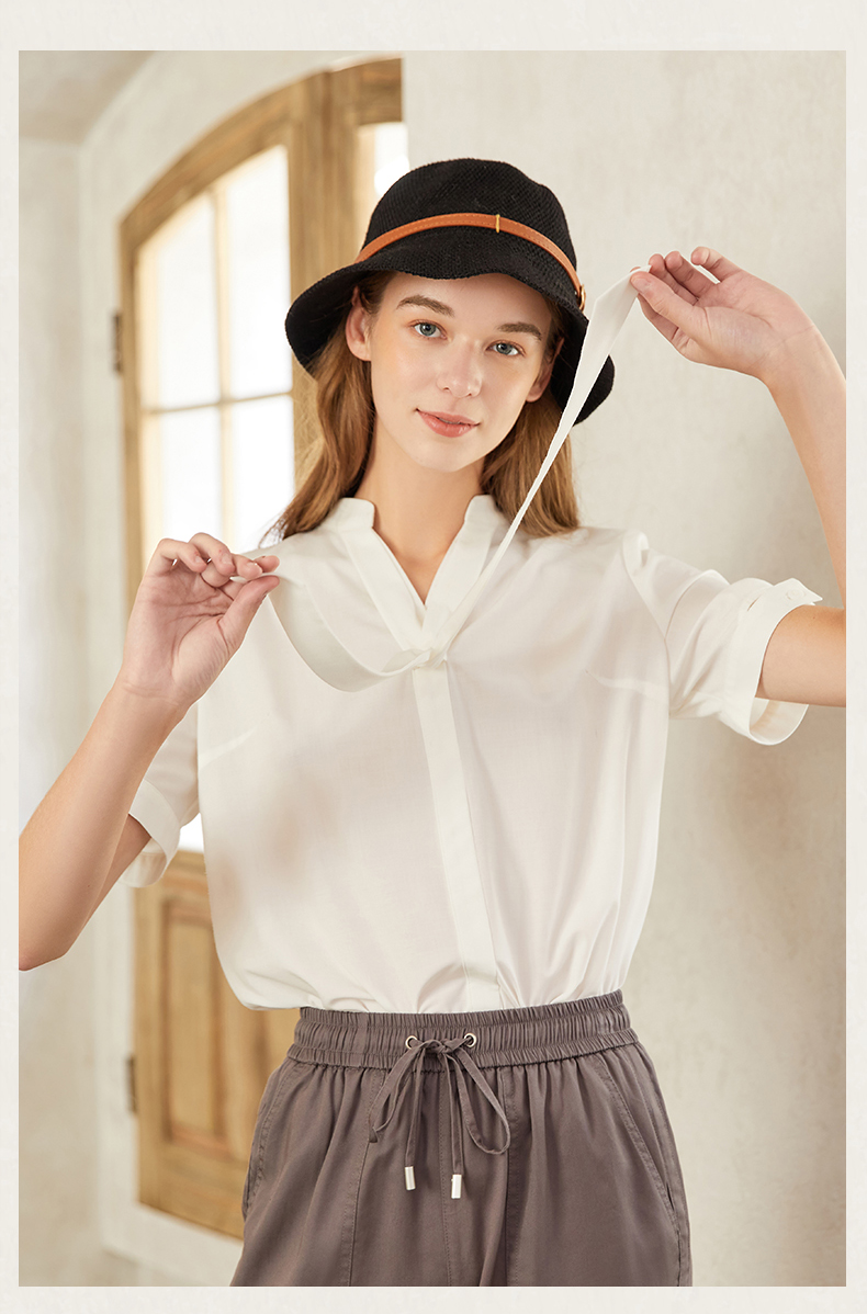 Famecoco范可儿短袖衬衫设计感春夏季V领小众别致上衣女F223BK001