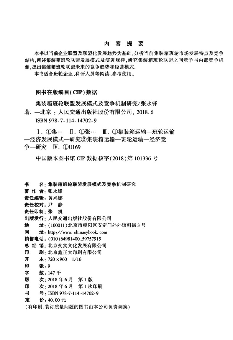 书名:集装箱班轮联盟发展模式及竞争机制研究