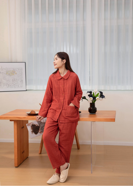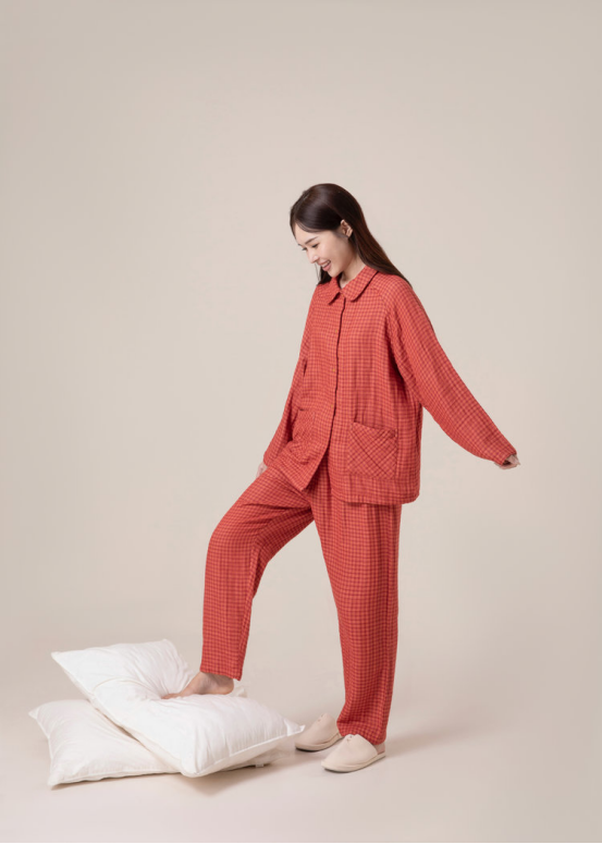 在选家居服上,我有3个不能凑合的要求: ①面料:一定要亲肤、柔软,穿起来还不闷汗 ②款式:分体式睡衣是首选,保暖不易走光 ③版型:宽松无束缚,上身自在无压感,让身心得到彻底放松