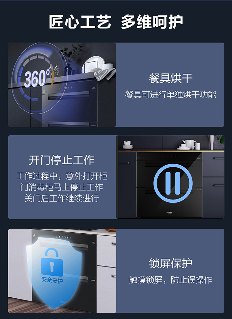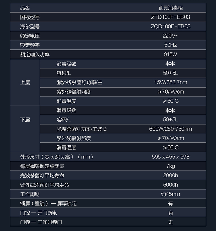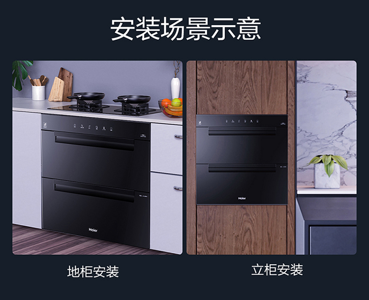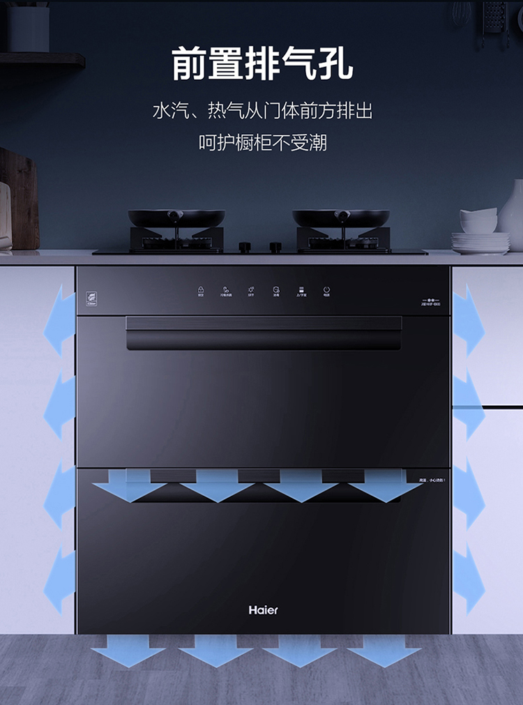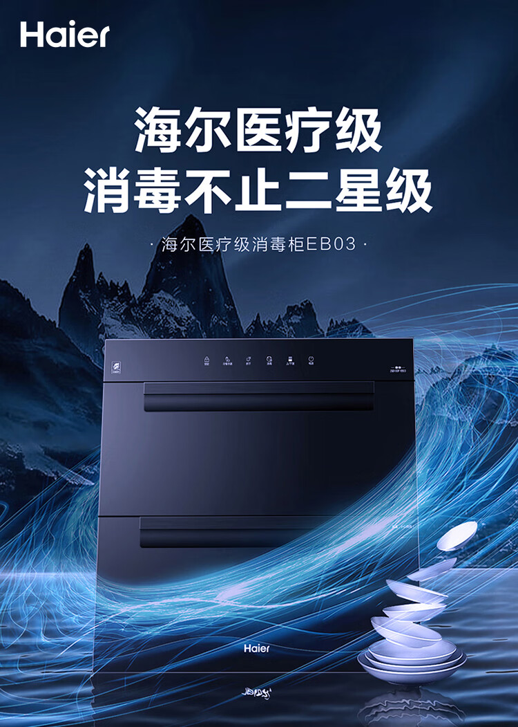 海尔(Haier)消毒柜嵌入式 家用消毒碗柜 100L双二星上下独立控制 紫外线+光波巴氏升级消毒0臭氧 婴儿奶瓶EB03