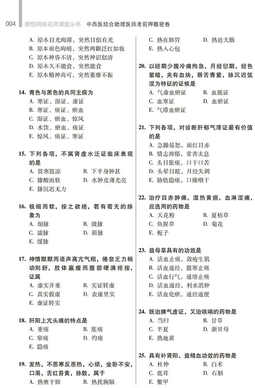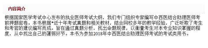 2018中西医结合助理医师考前押题密卷--国家执业医师资格考试辅导丛书