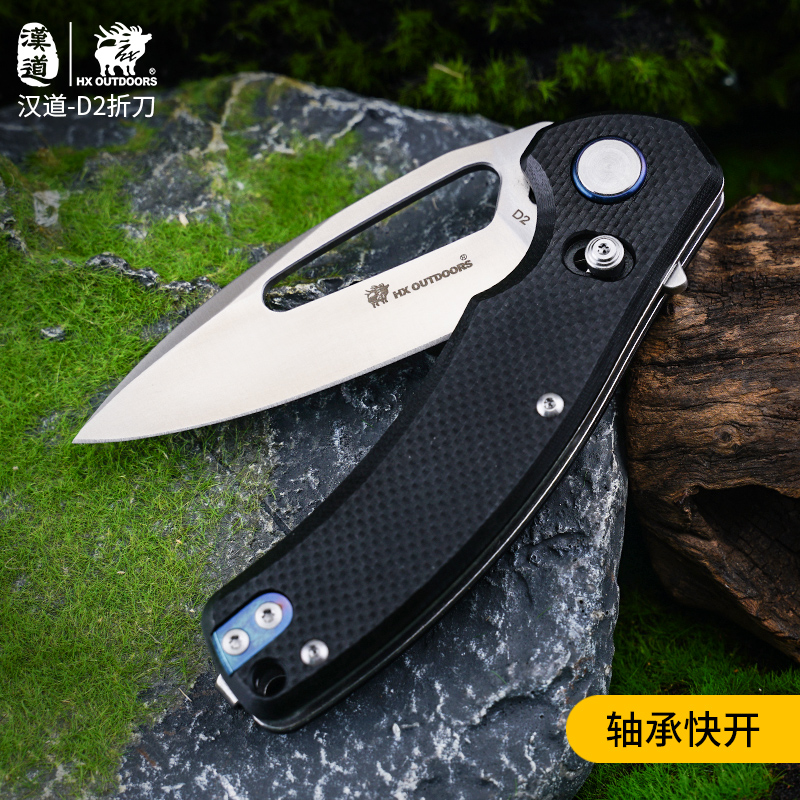 汉道【D2折刀】户外D2钢高硬度折叠刀随身防身刀野外锋利折叠刀