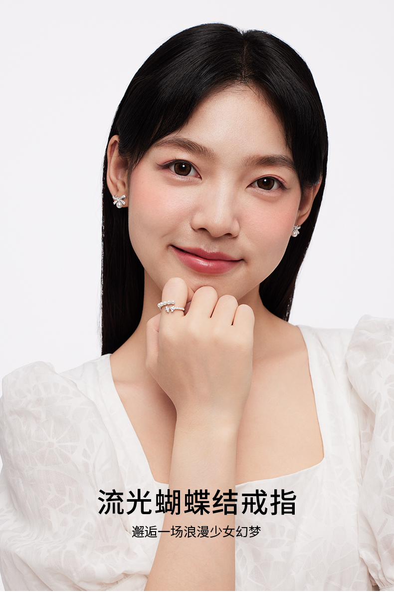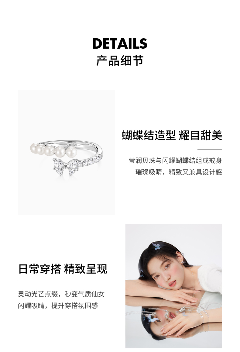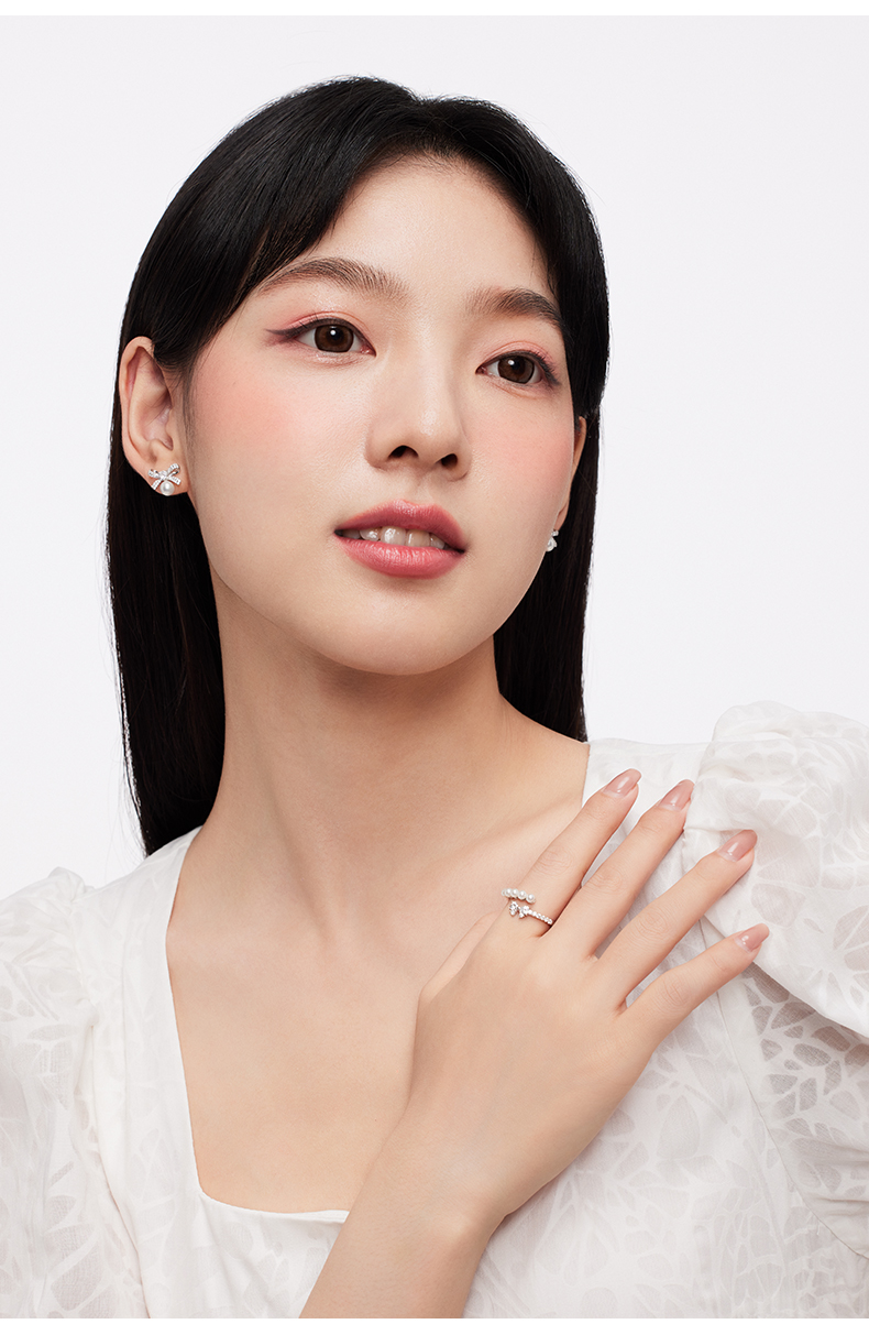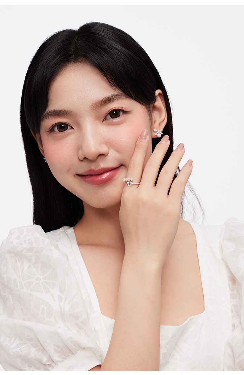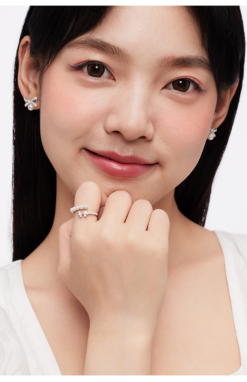 KADER卡蒂罗 流光蝴蝶结人造珍珠戒指 女开口小众设计2023年新款生日礼物