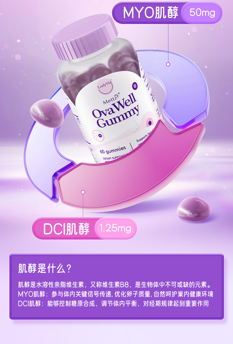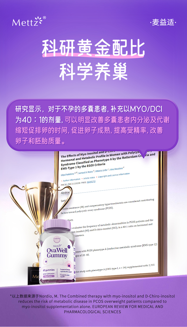 Mettz 40比1myo肌醇手性女性多囊备孕添加圣洁莓硒早更调理内分泌