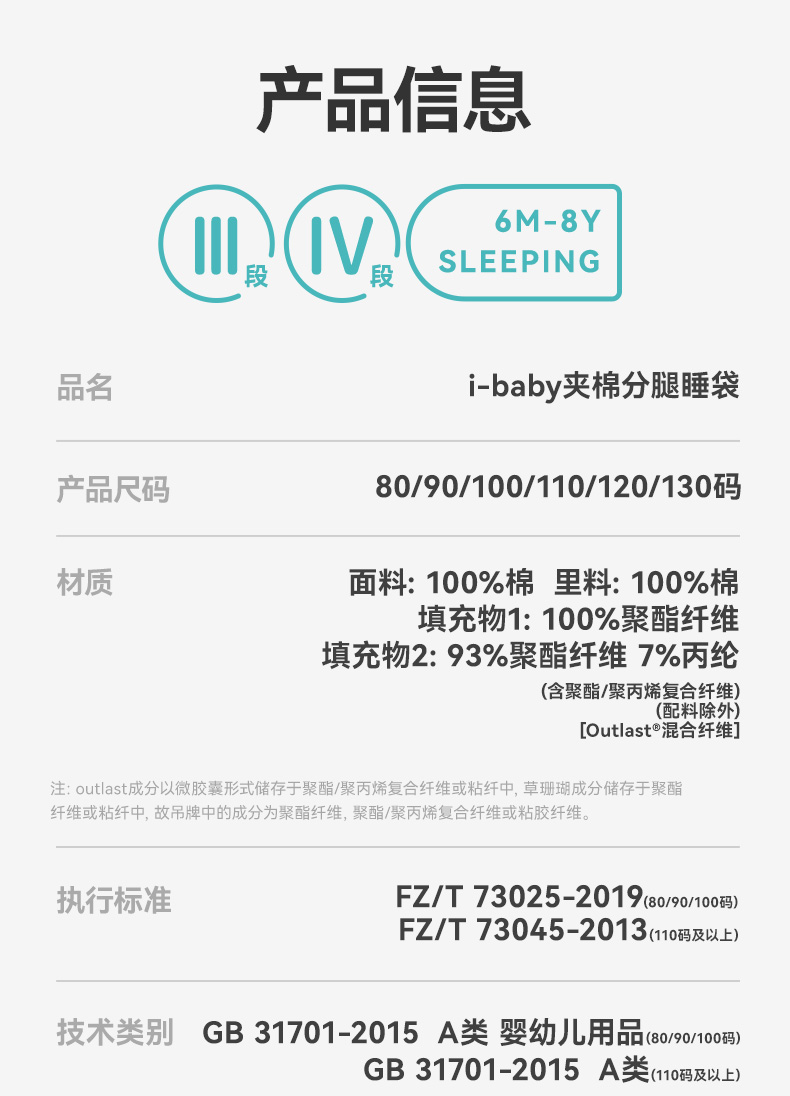 ibaby×outlast太空科技恒温秋冬针织夹棉分腿睡袋