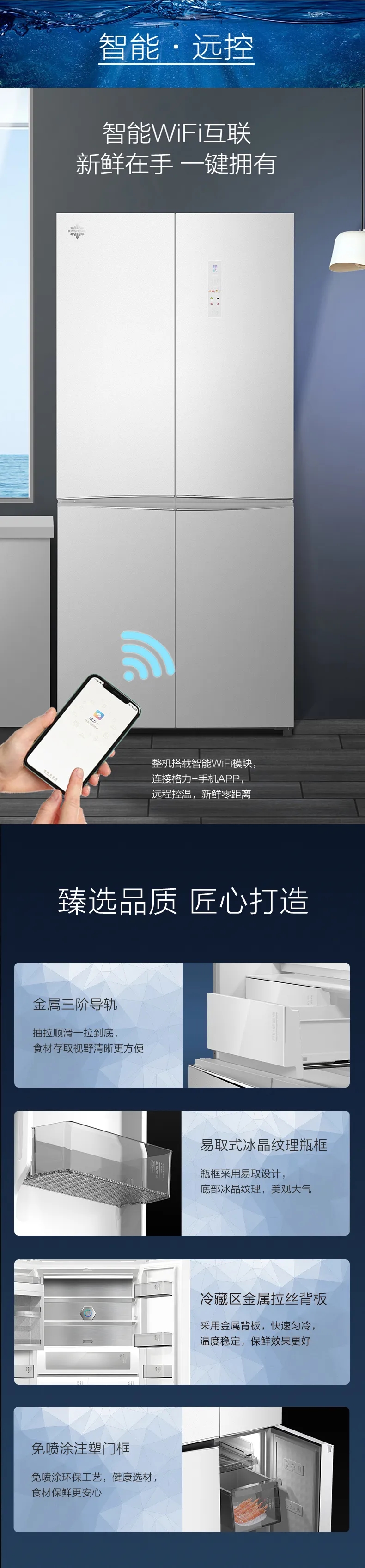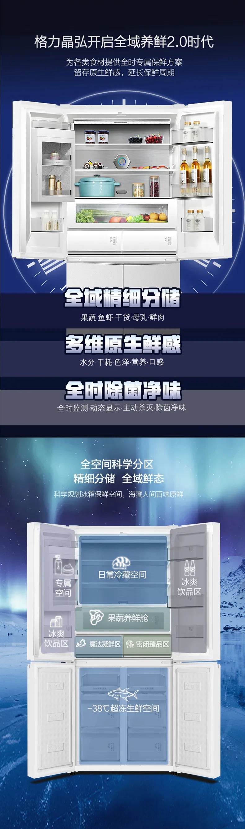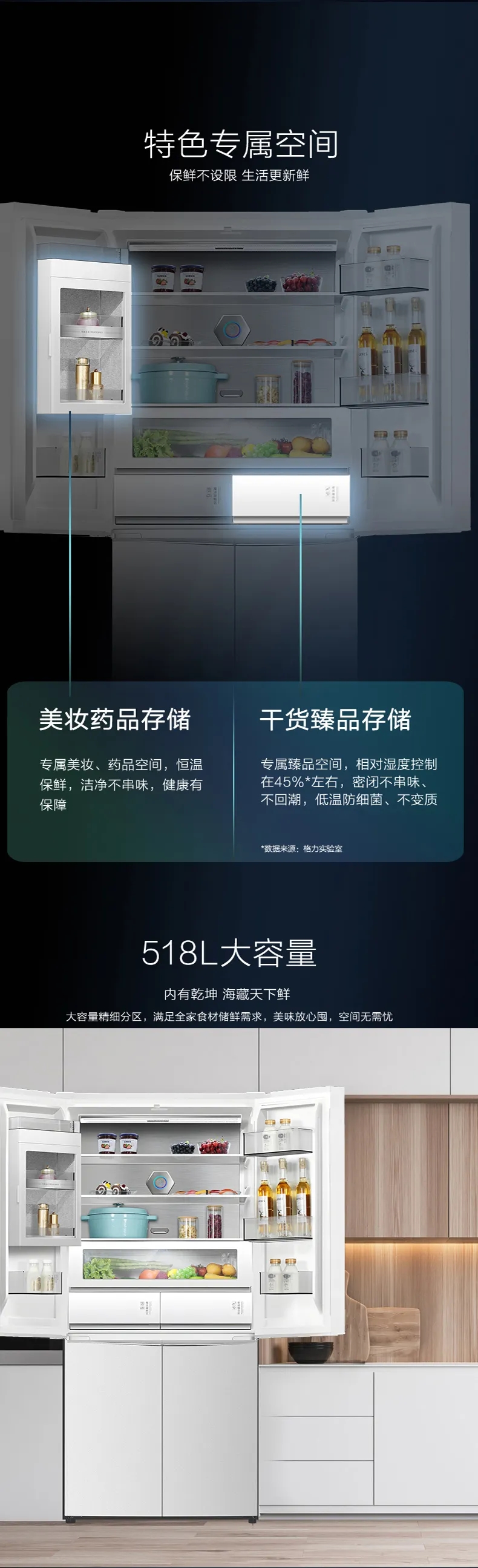 格力晶弘冰箱 十字对开门 518L 全域养鲜 除菌净味 BCD-518WIPSG/肤感白