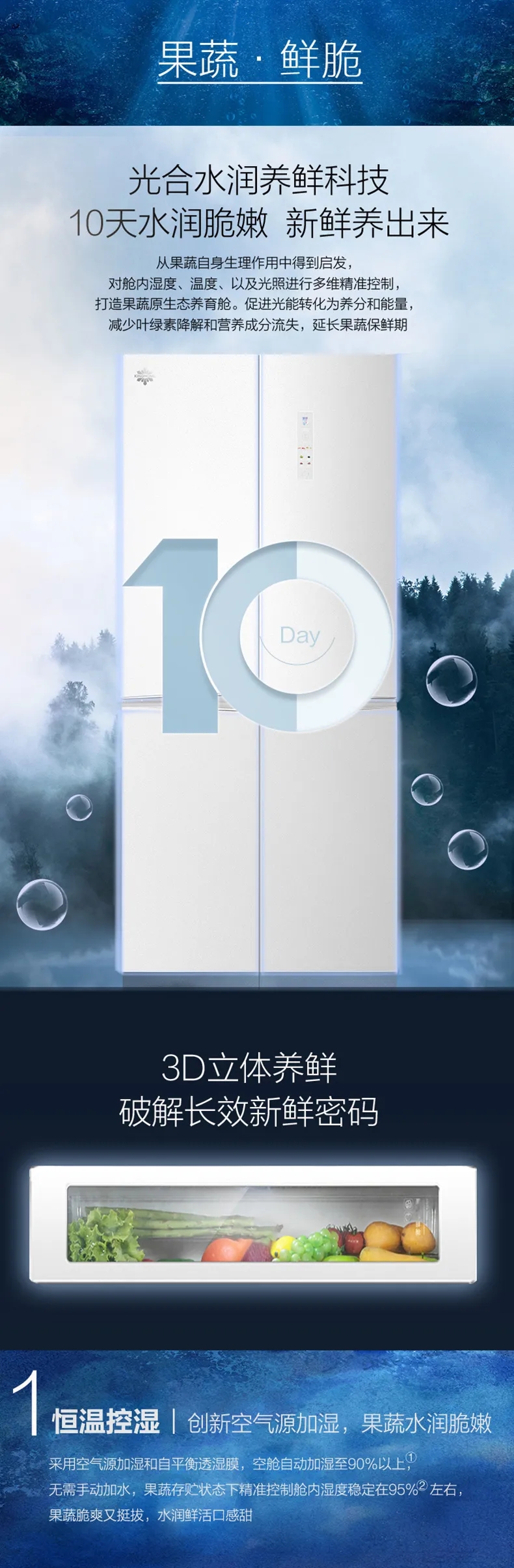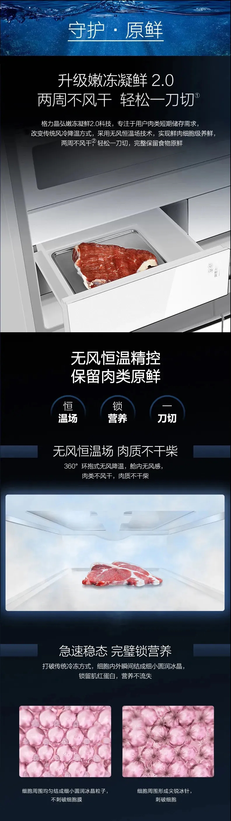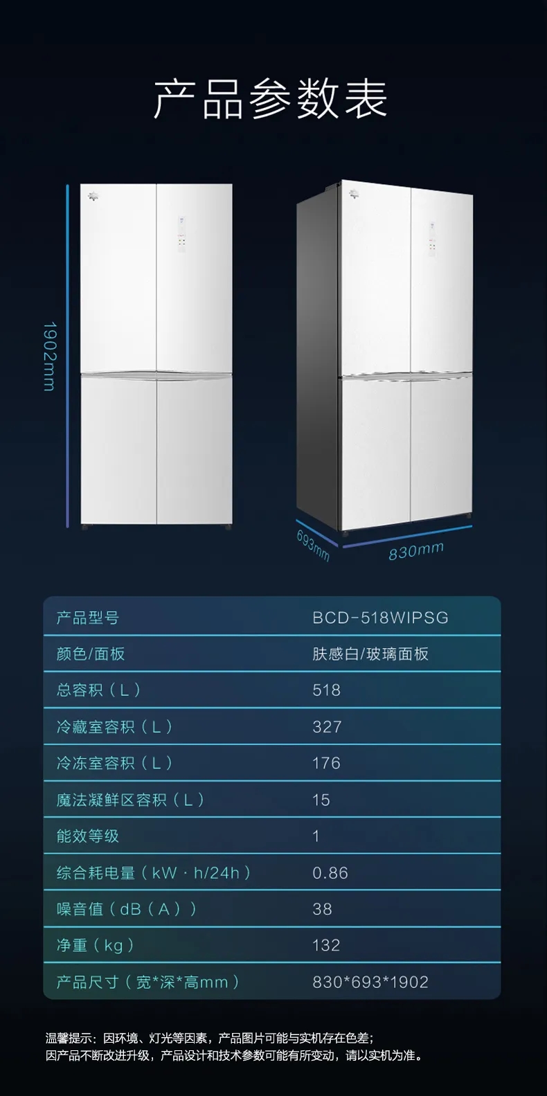 格力晶弘冰箱 十字对开门 518L 全域养鲜 除菌净味 BCD-518WIPSG/肤感白