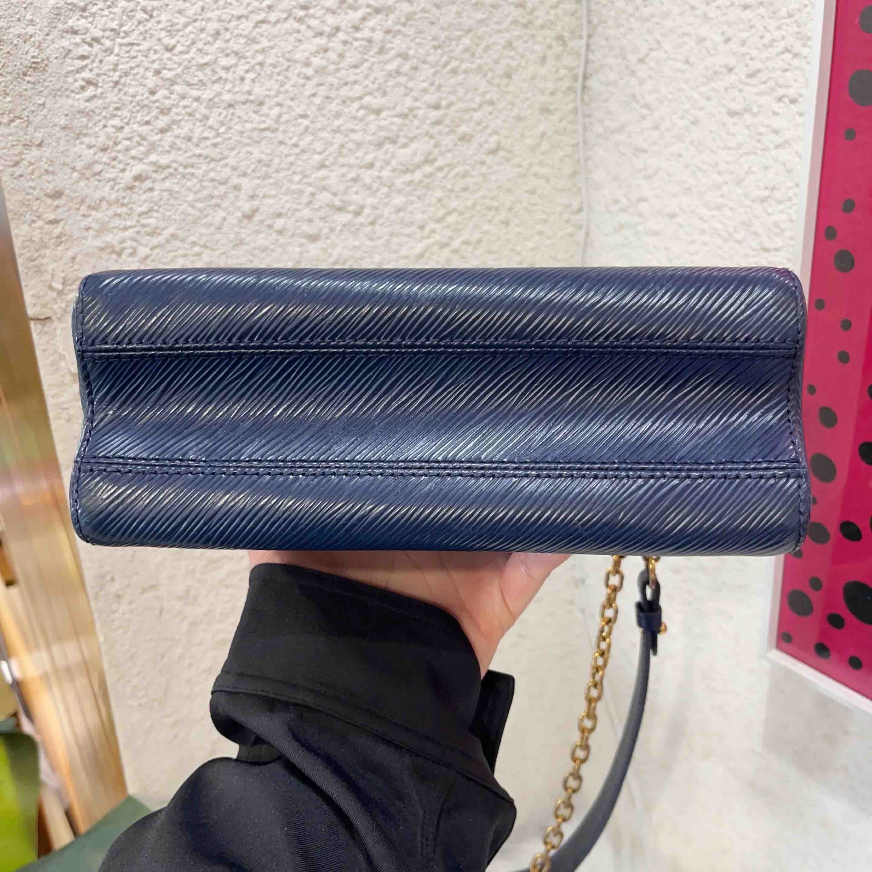 【商品详情】正品二手 LV Twist 蓝色 水波纹 牛皮 中号 金扣 斜挎包👜 93新 23*17 配件:肩带。金属和边角正常使用感。气质型美女