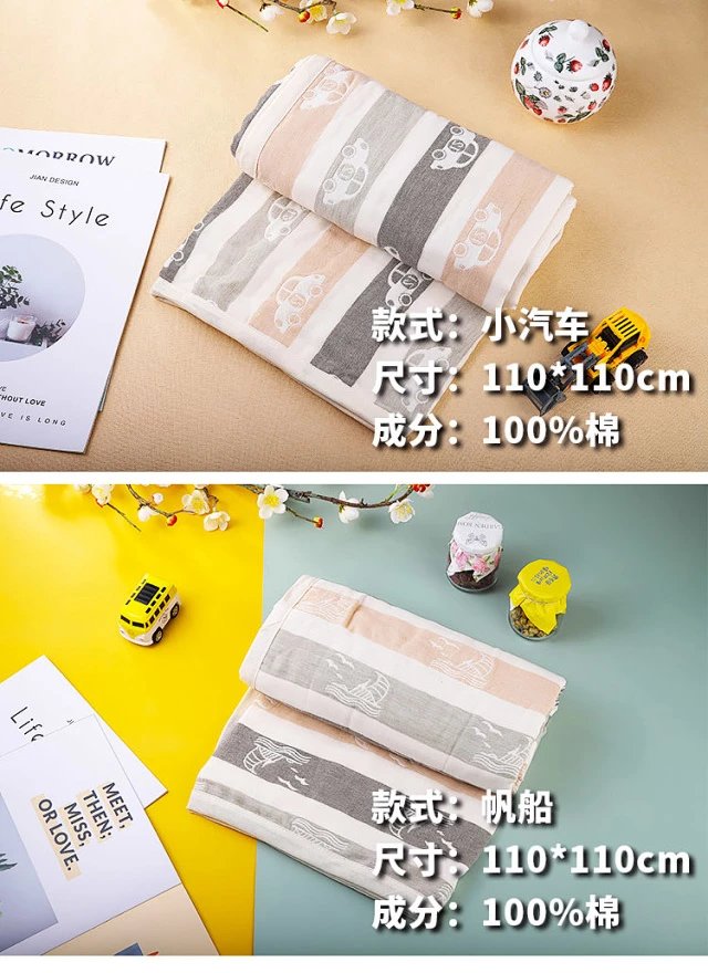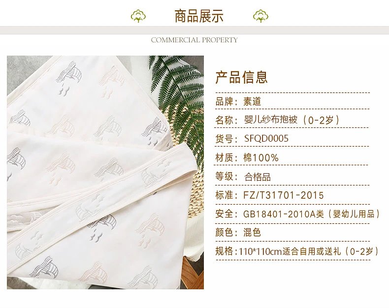 新品上新 素道天然有机纯棉新生儿抱毯 儿童卡通可爱抱被110*110cm
