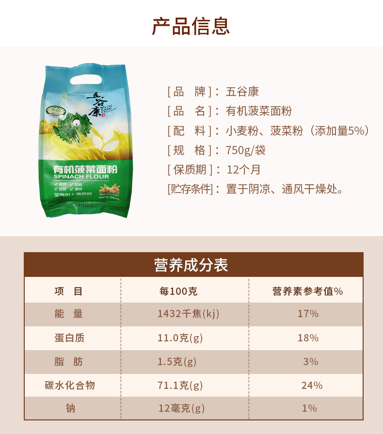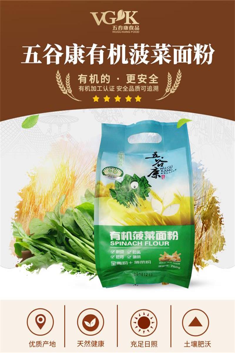 丨有机丨菠菜面粉2袋 南瓜面粉2袋 混搭2袋 750g/袋 五谷康有机面粉
