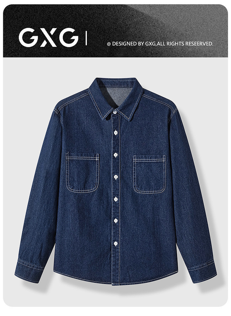 GXG春季经典时尚双开线贴袋户外逛街百搭翻领男士牛仔衬衫K&C