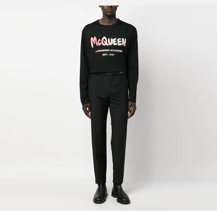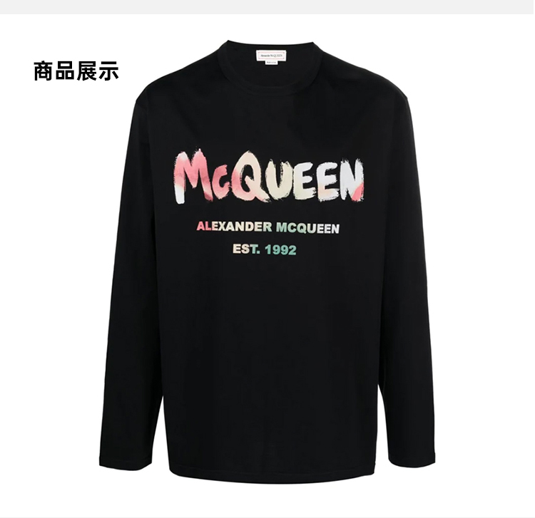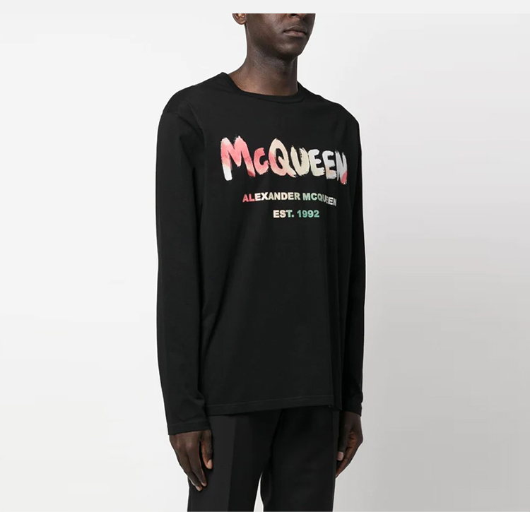 ALEXANDER MCQUEEN 亚历山大.麦昆 男士字母徽标印花圆领长袖T恤 黑色 750668 QVZ15 0901
