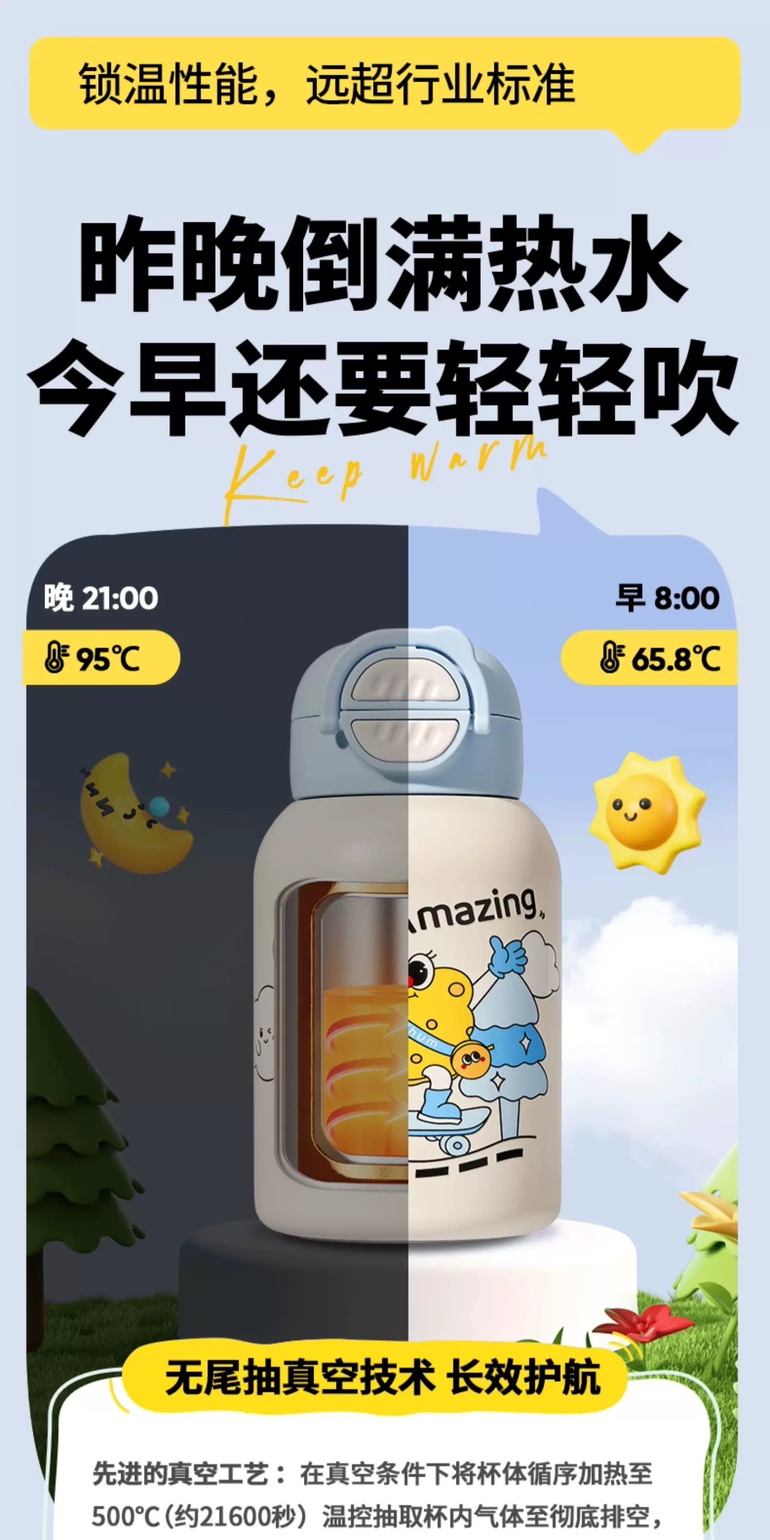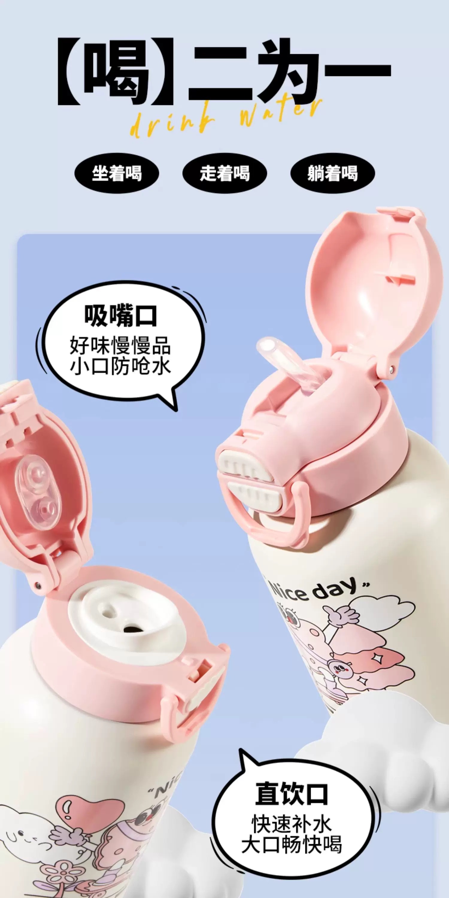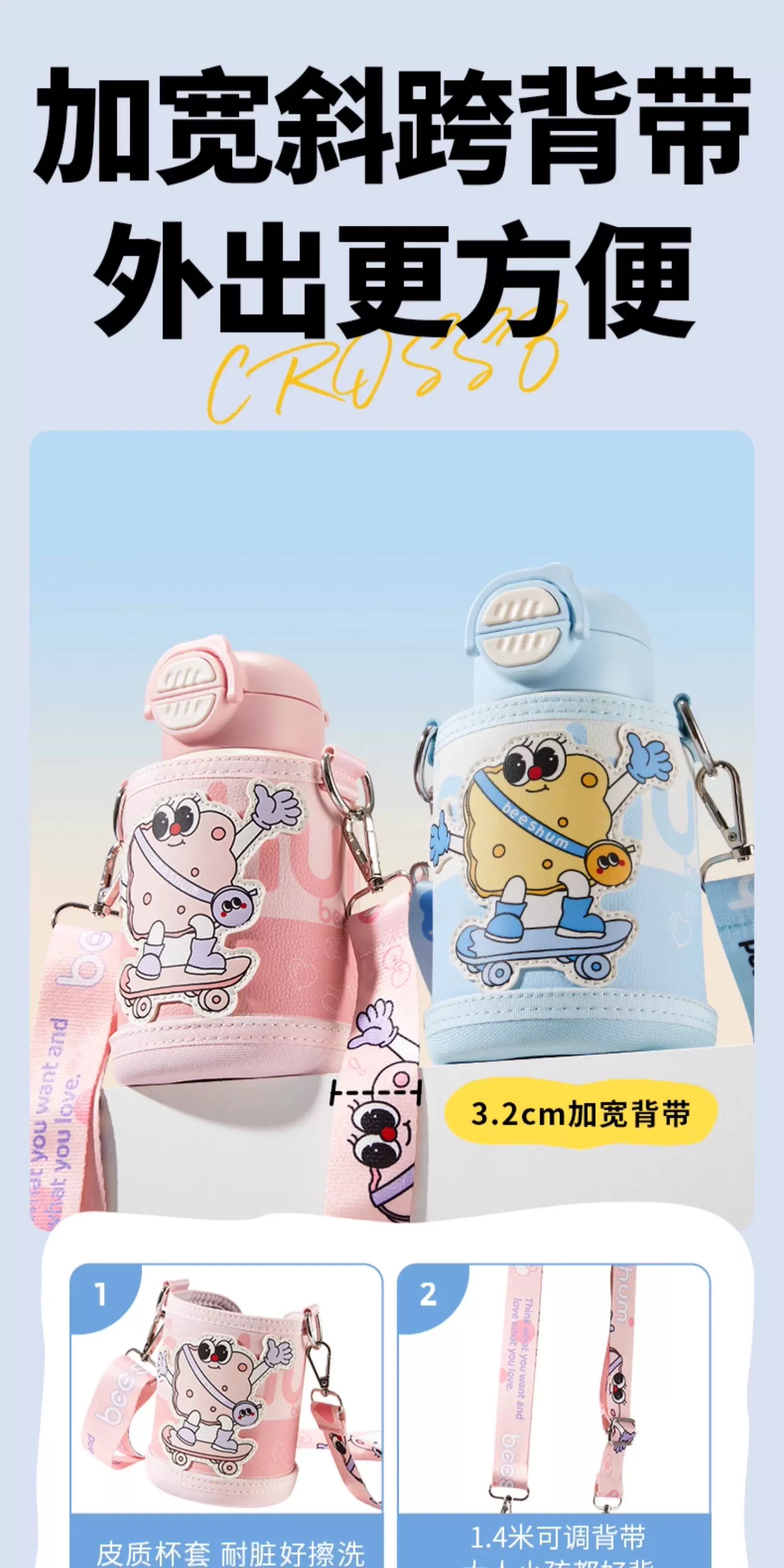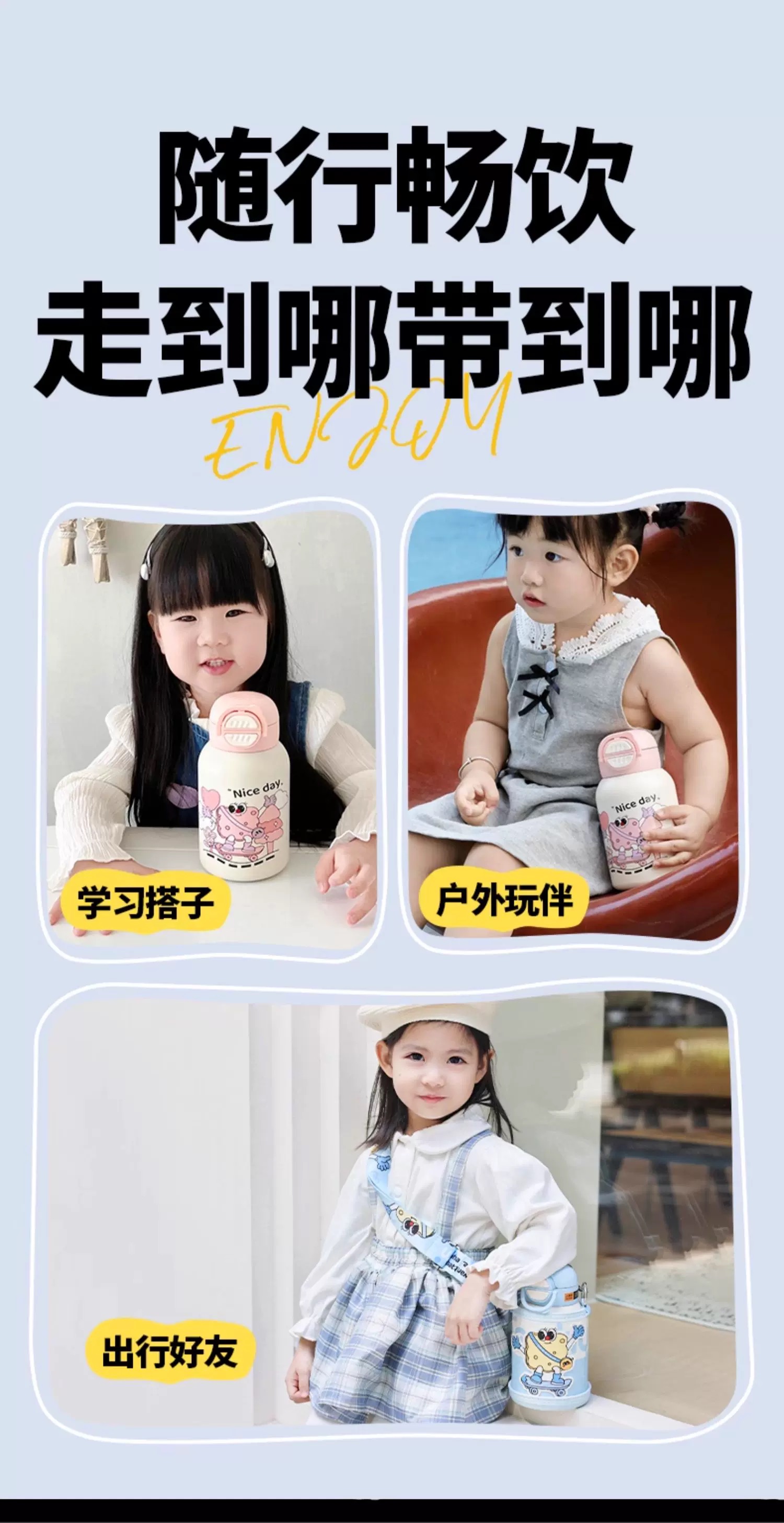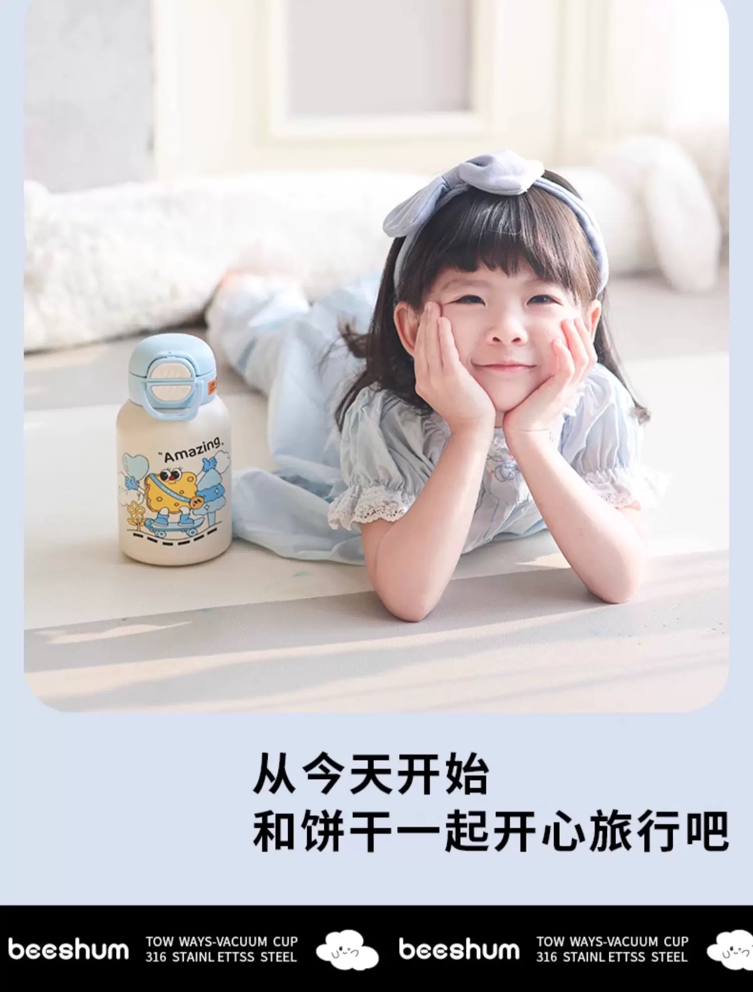 beeshum儿童保温杯男女学生上学专用大号容量宝宝高颜值便携水壶