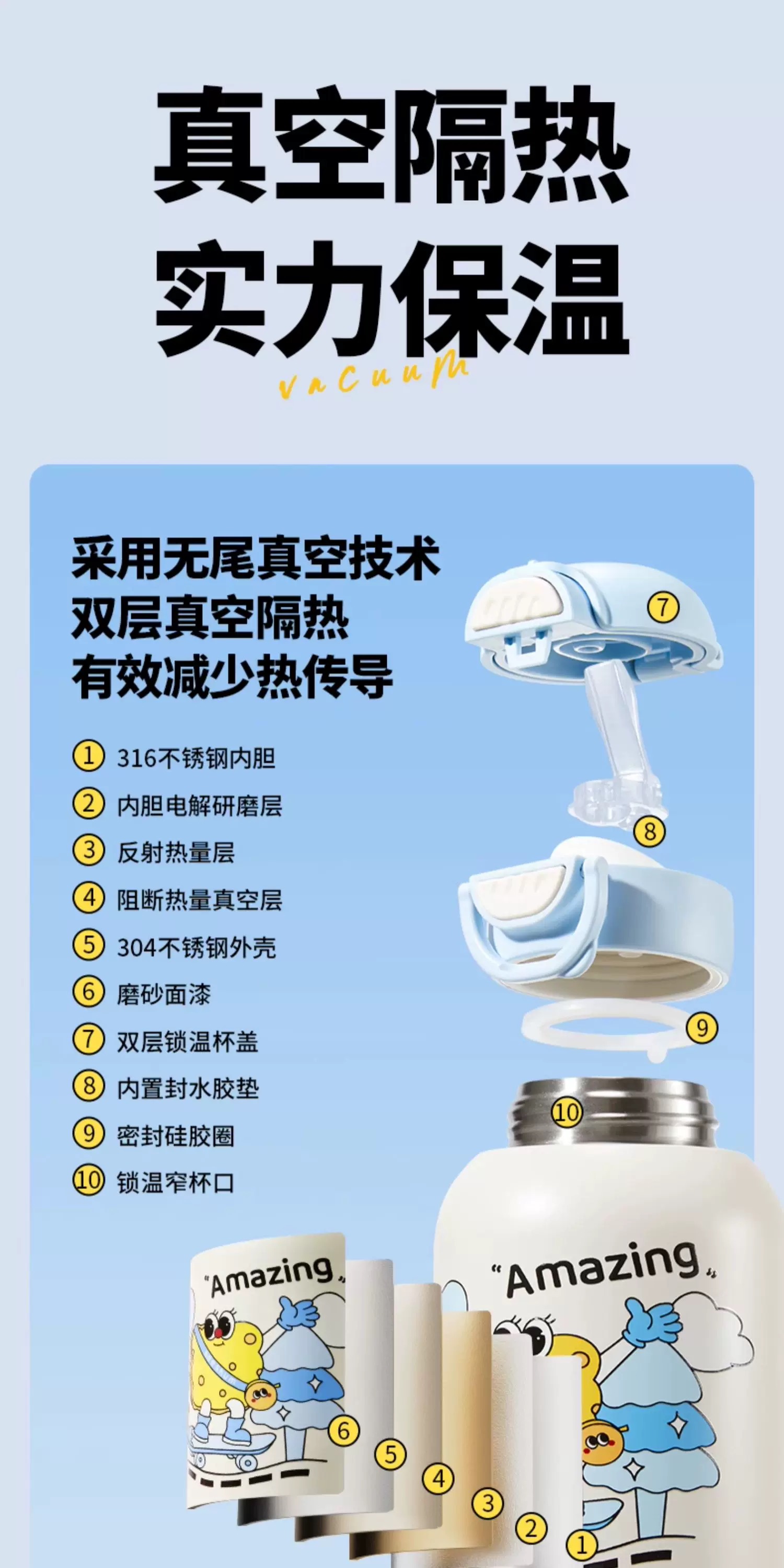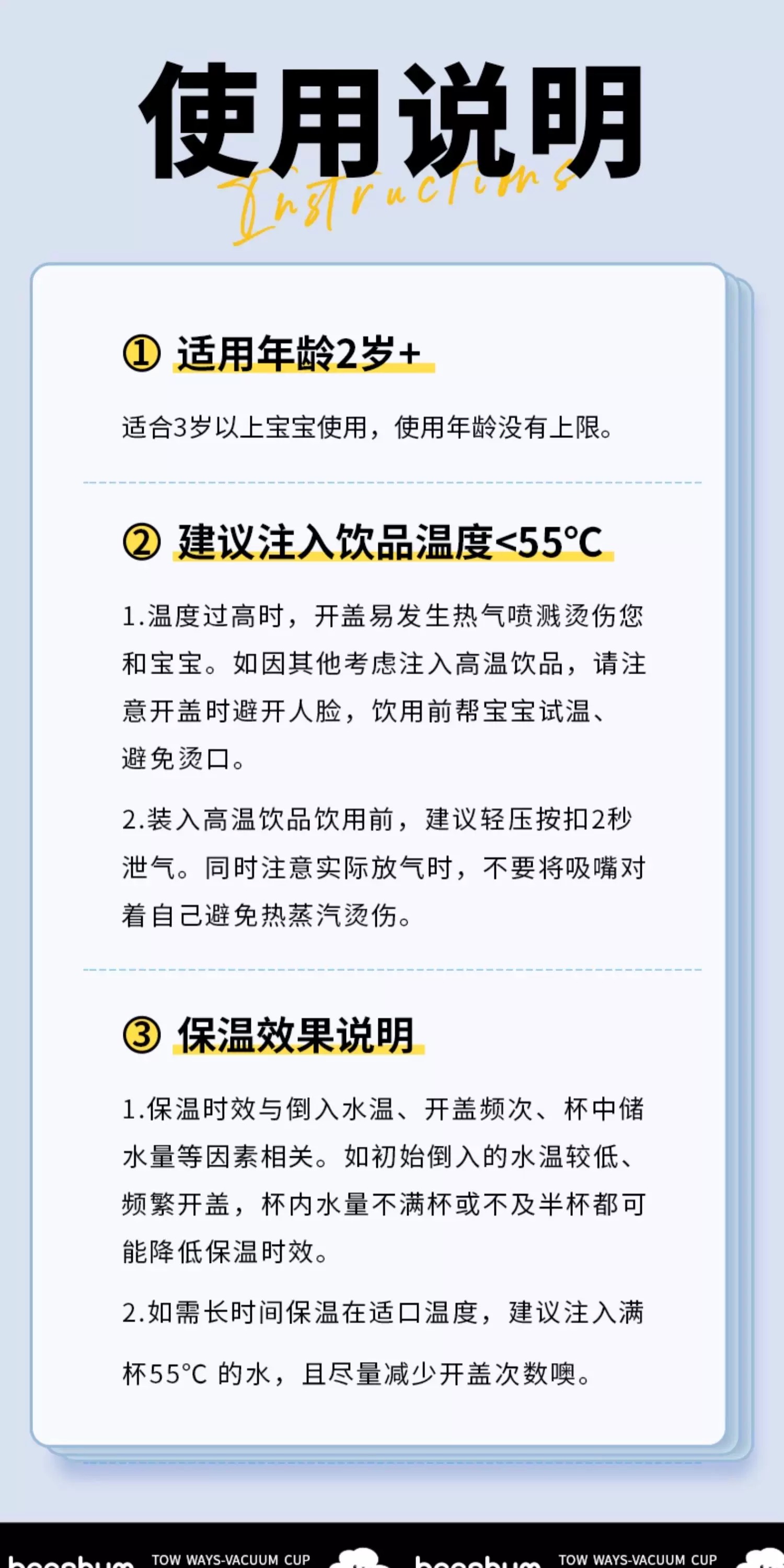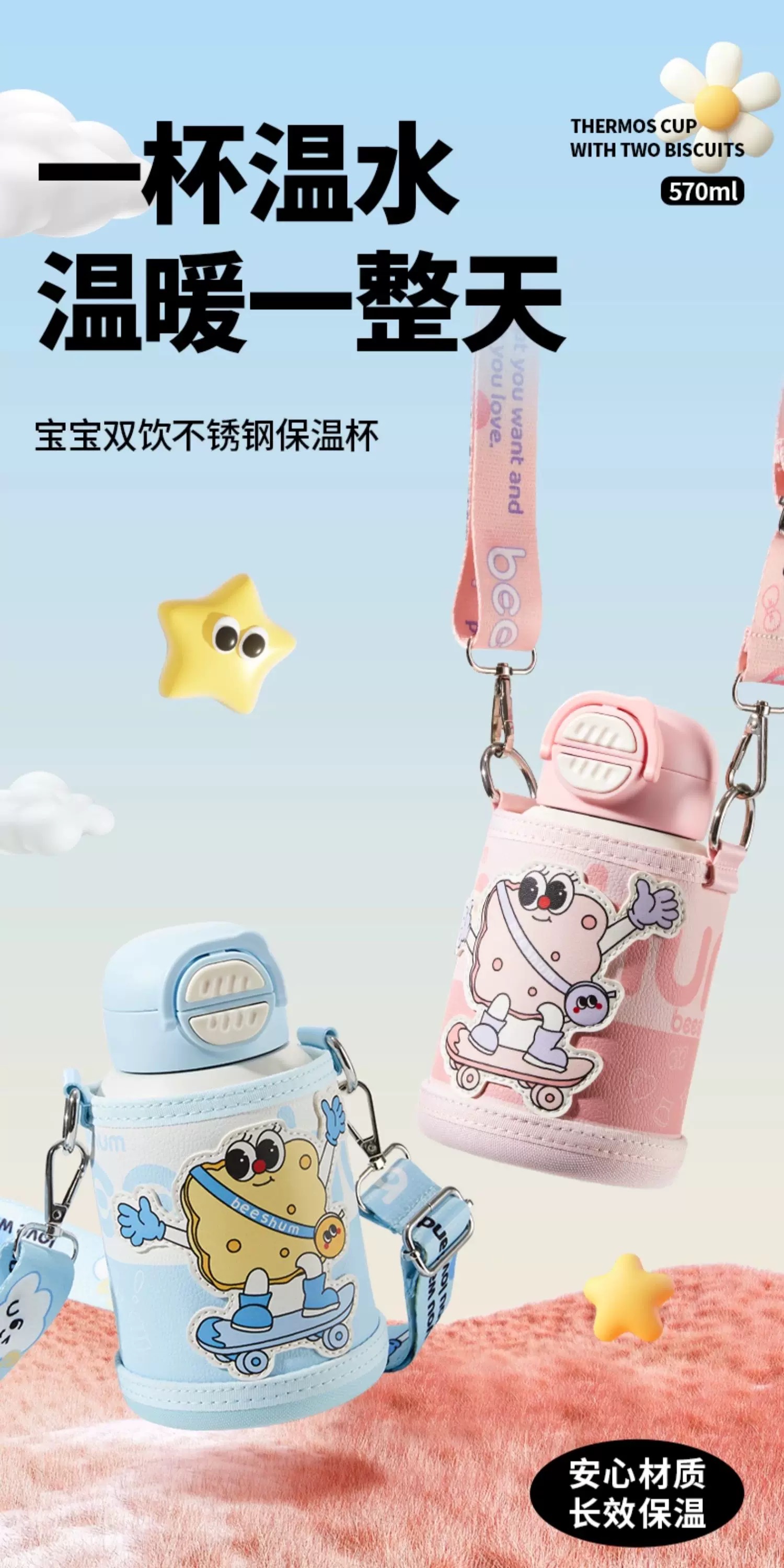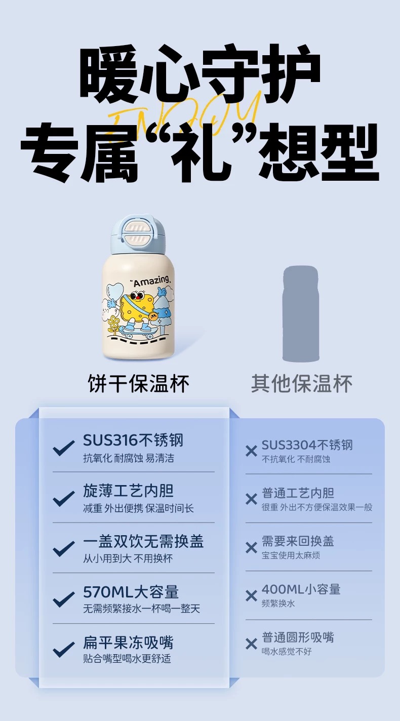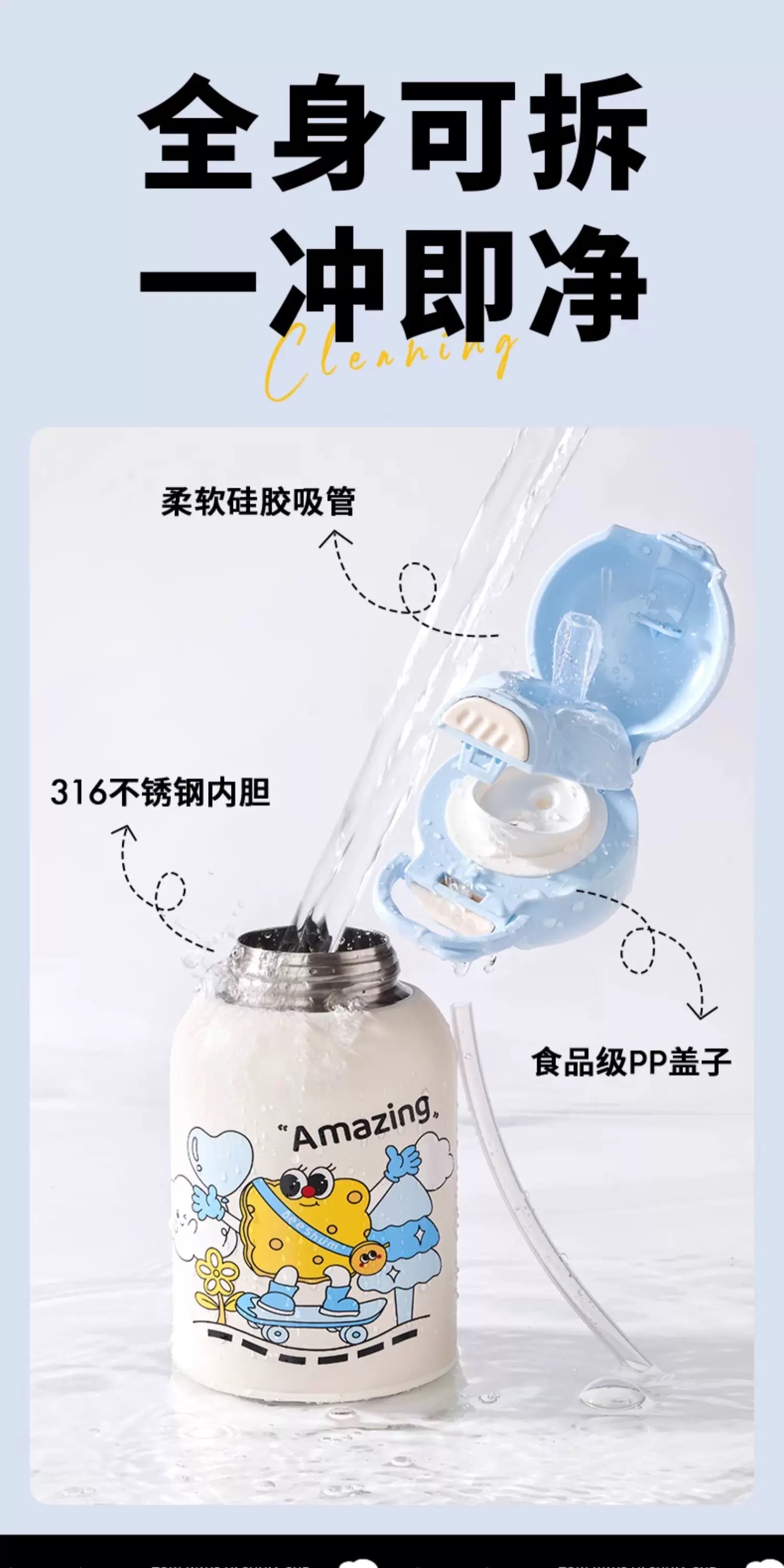 beeshum儿童保温杯男女学生上学专用大号容量宝宝高颜值便携水壶