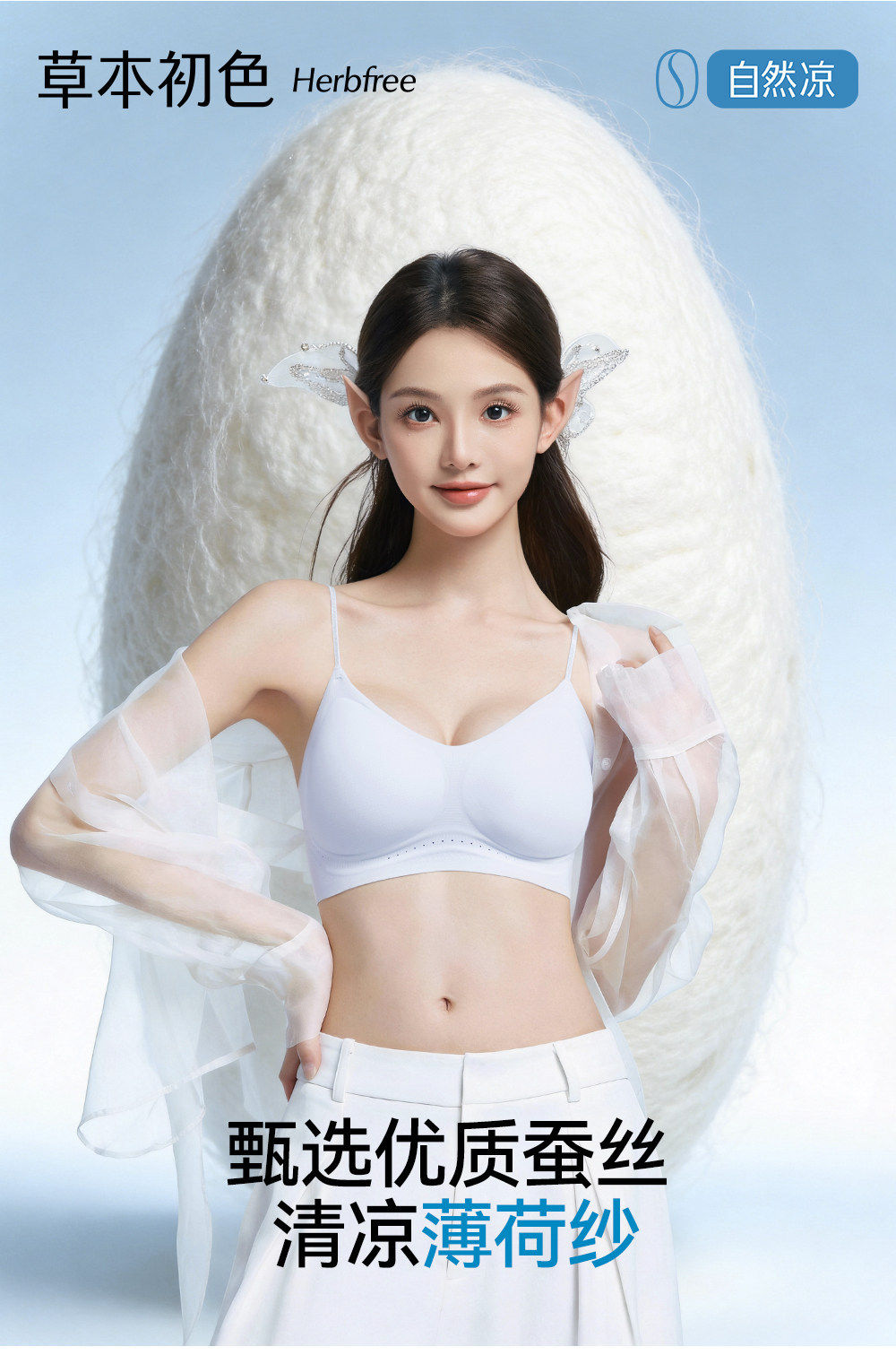 草本初色内衣女聚拢小胸超薄无痕细肩带美背10A抑菌桑蚕丝文胸罩