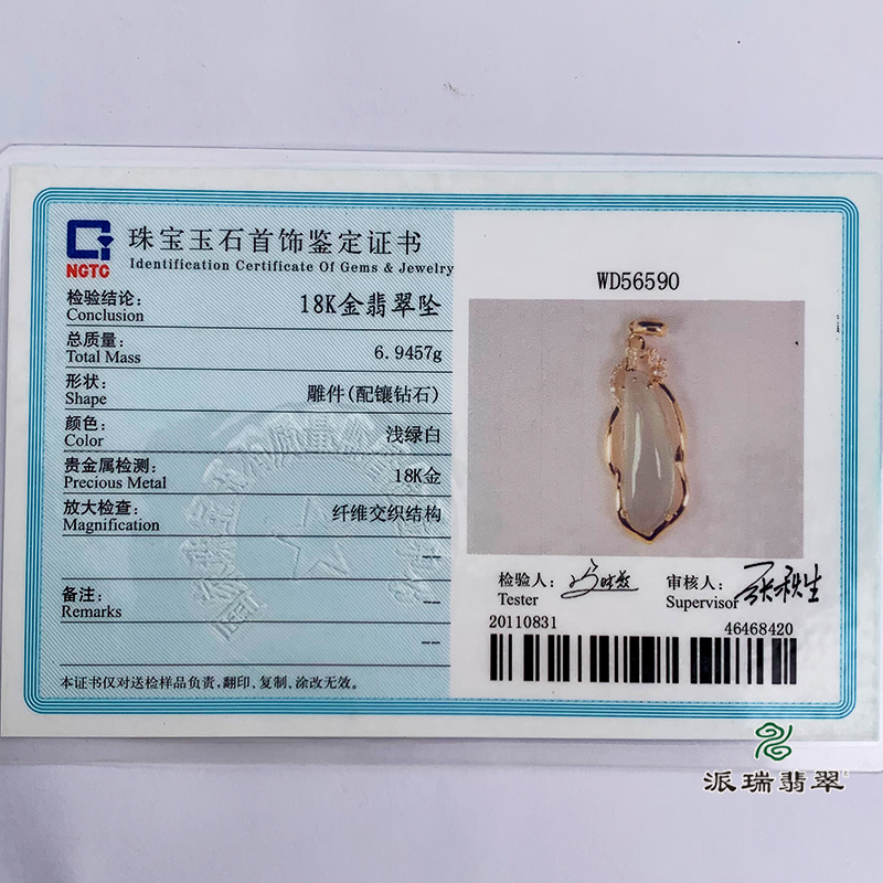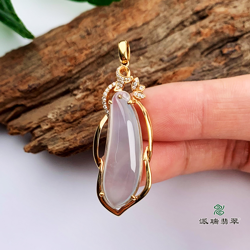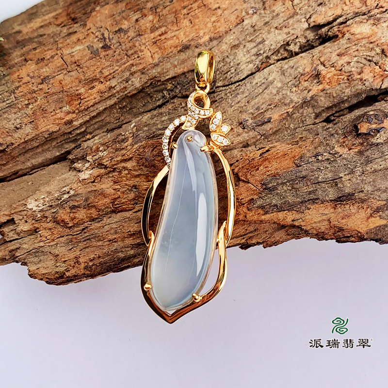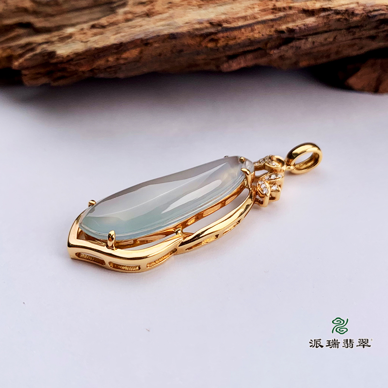 派瑞翡翠 18k金翡翠吊坠 冰种 无色