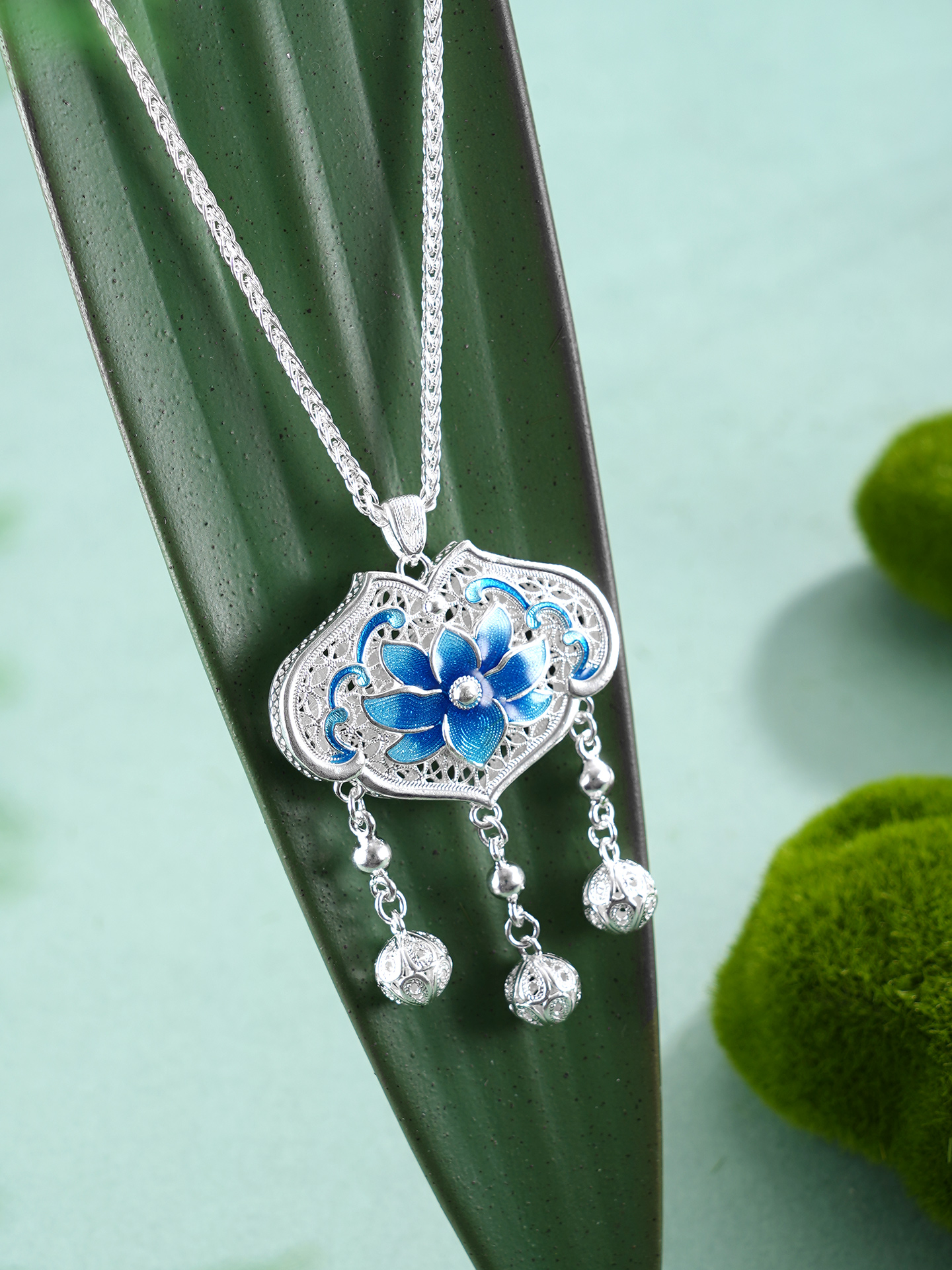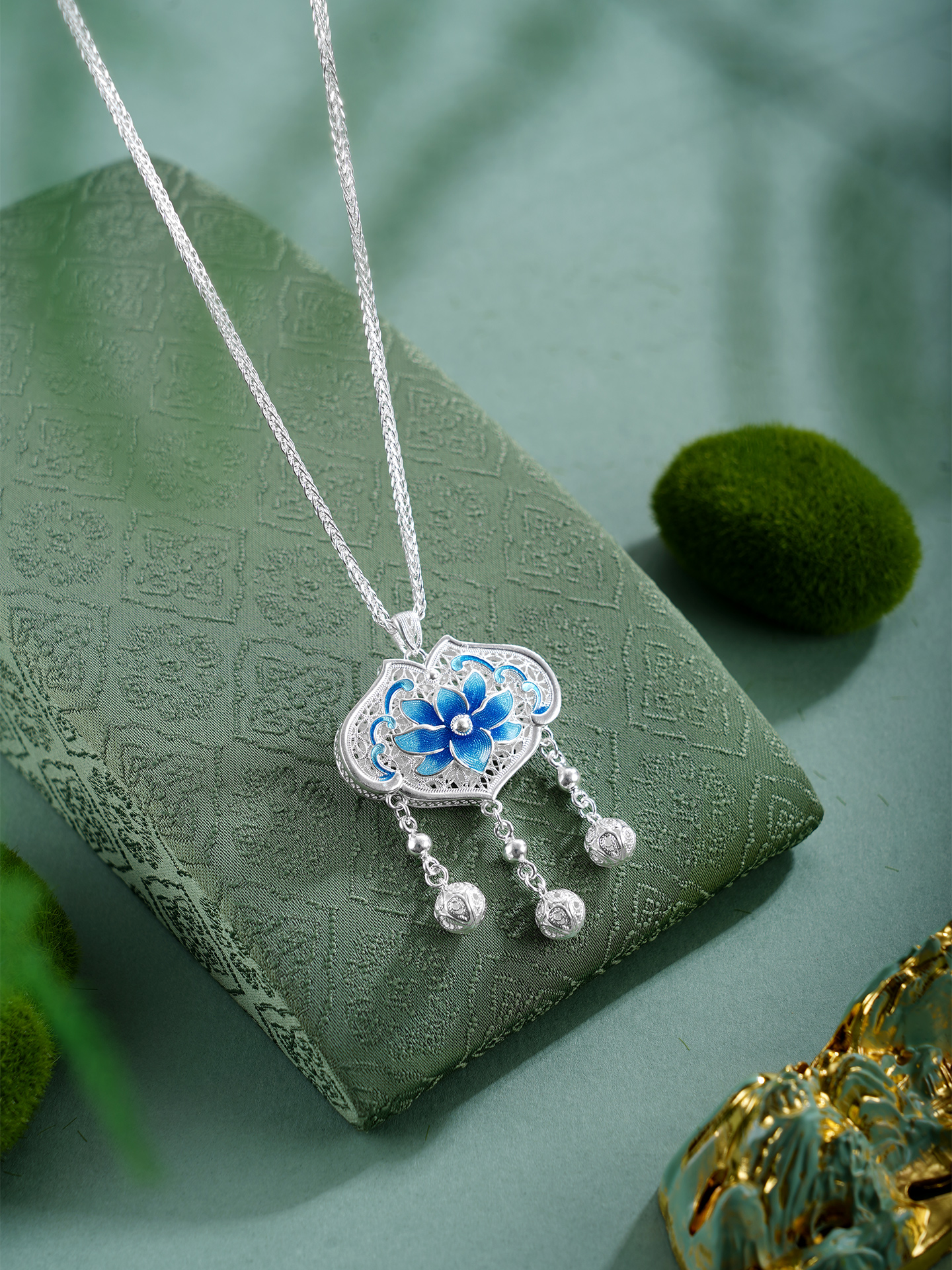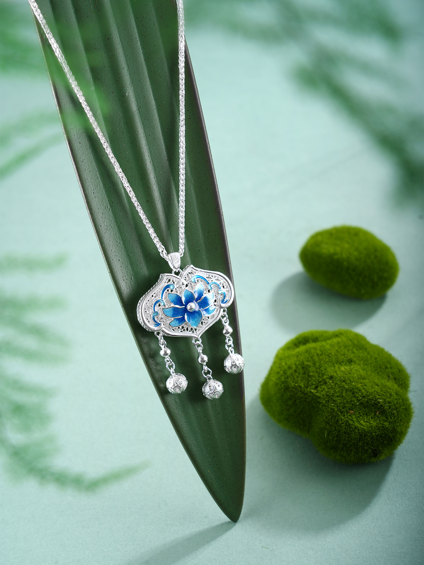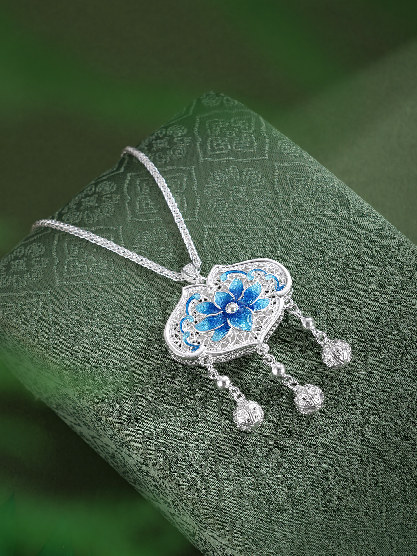 子佩集【莲开静雅】银S990吊坠【QFDZ045】原创作品花丝珐琅彩(不含链)2511