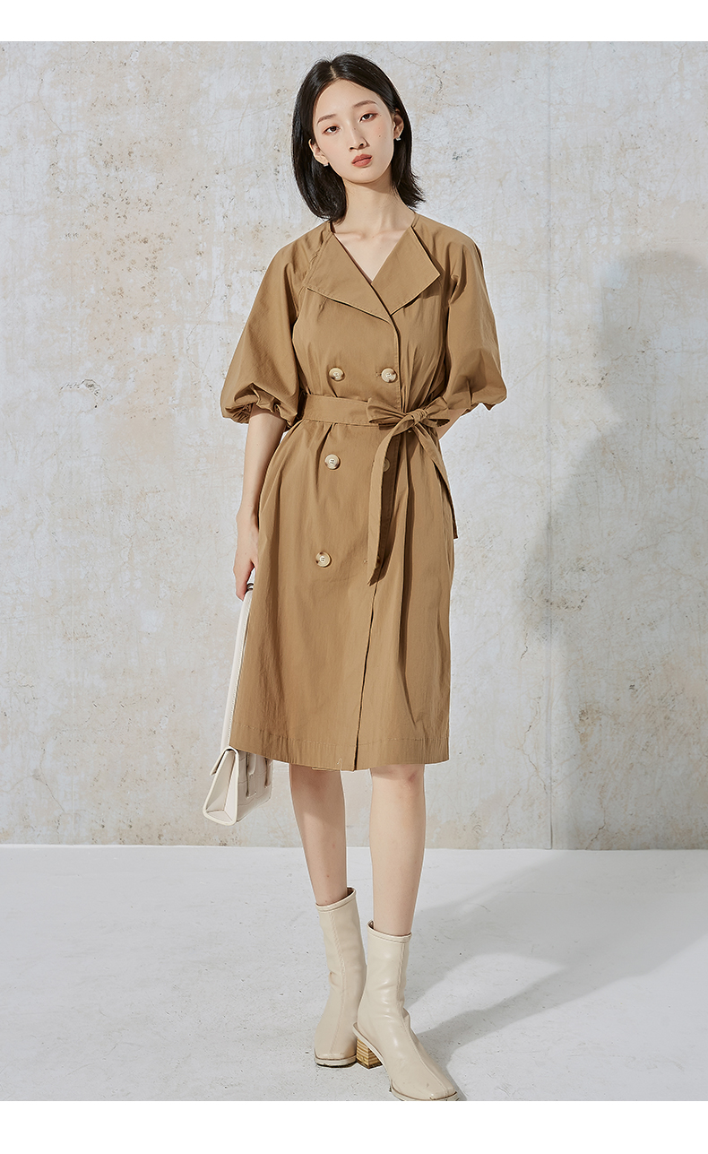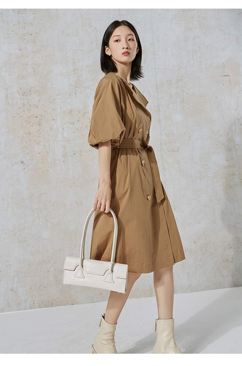 NUTS秋季新款时尚宽松显瘦衬衫款式短袖连衣裙女231101078B