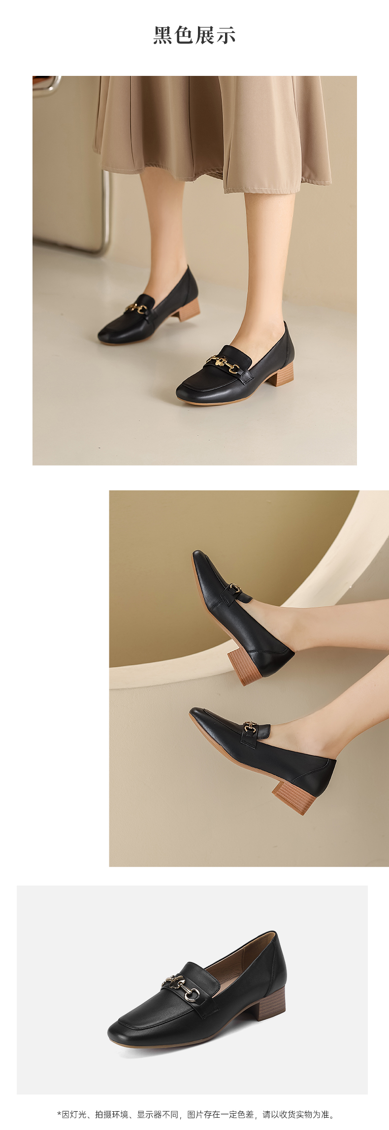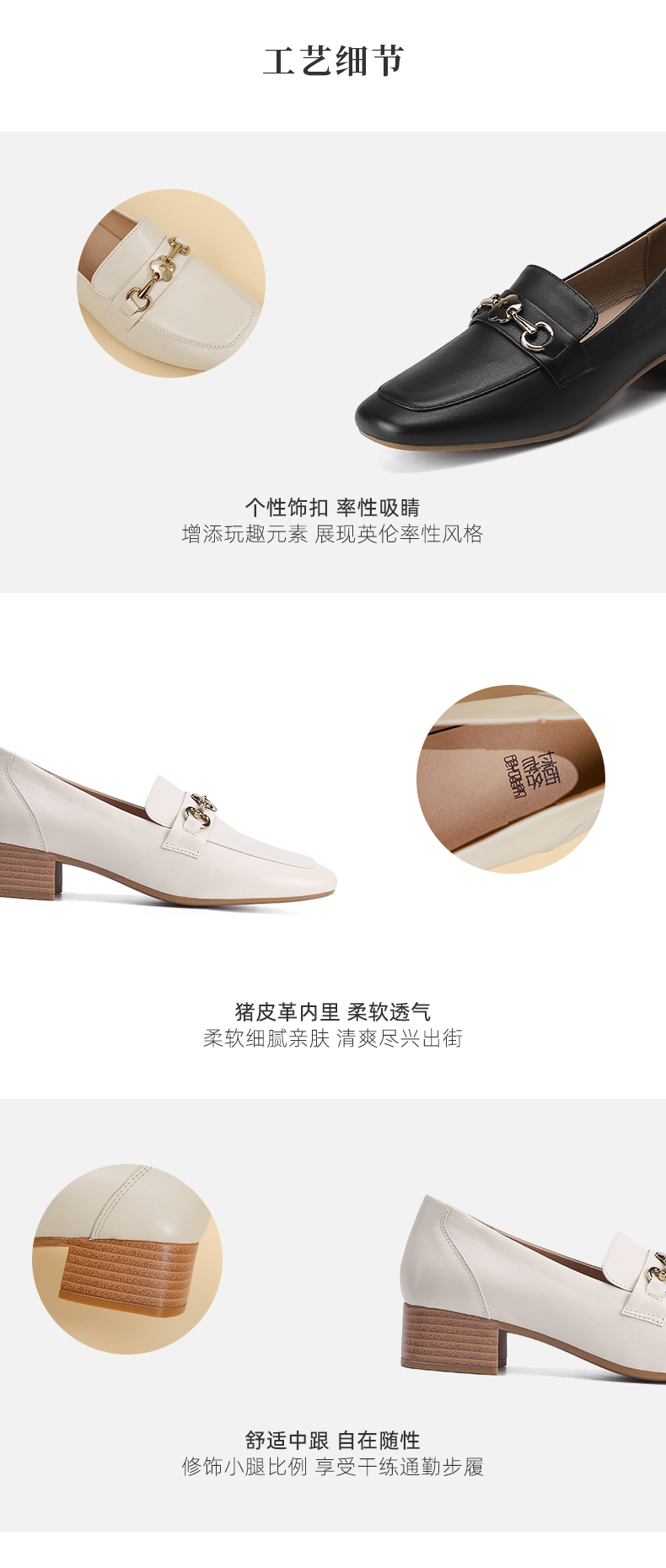 西村名物2023春季新款羊皮革英伦单鞋通勤中跟正装真皮乐福鞋12511