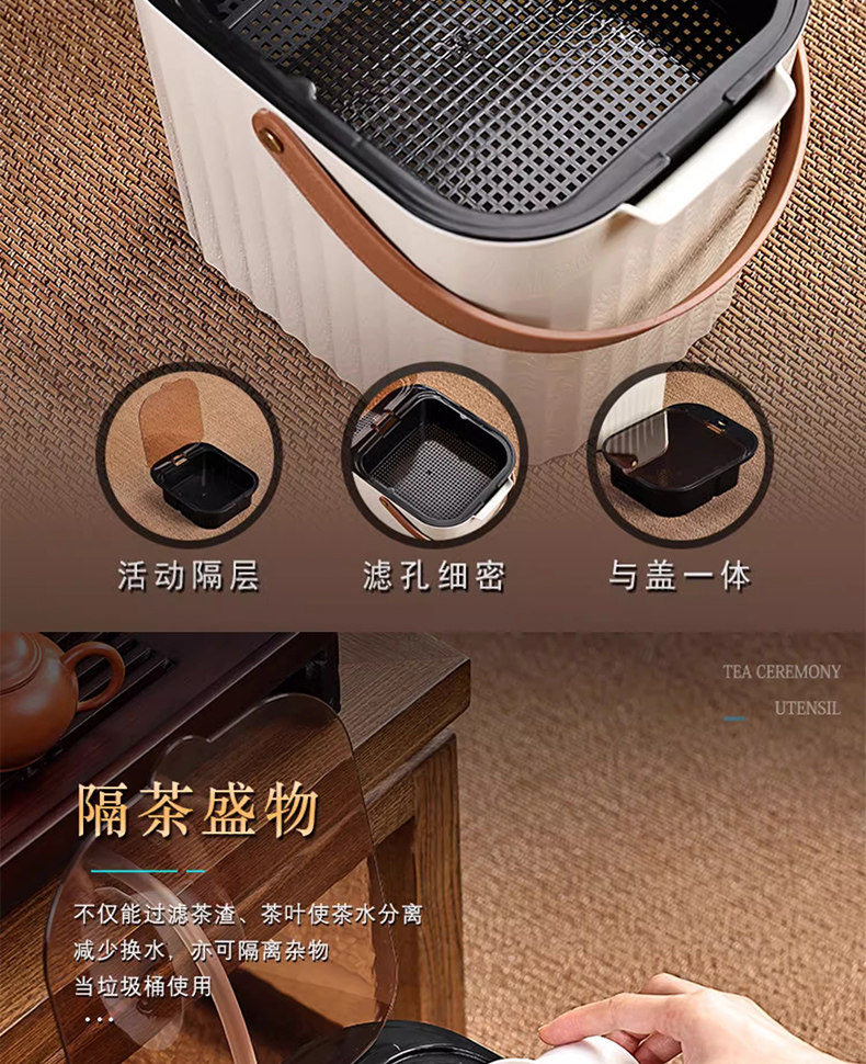 茶渣桶/环保桶/高颜值茶水桶废水桶干湿分离家用茶台功夫茶泡茶排水茶桌塑料茶桶