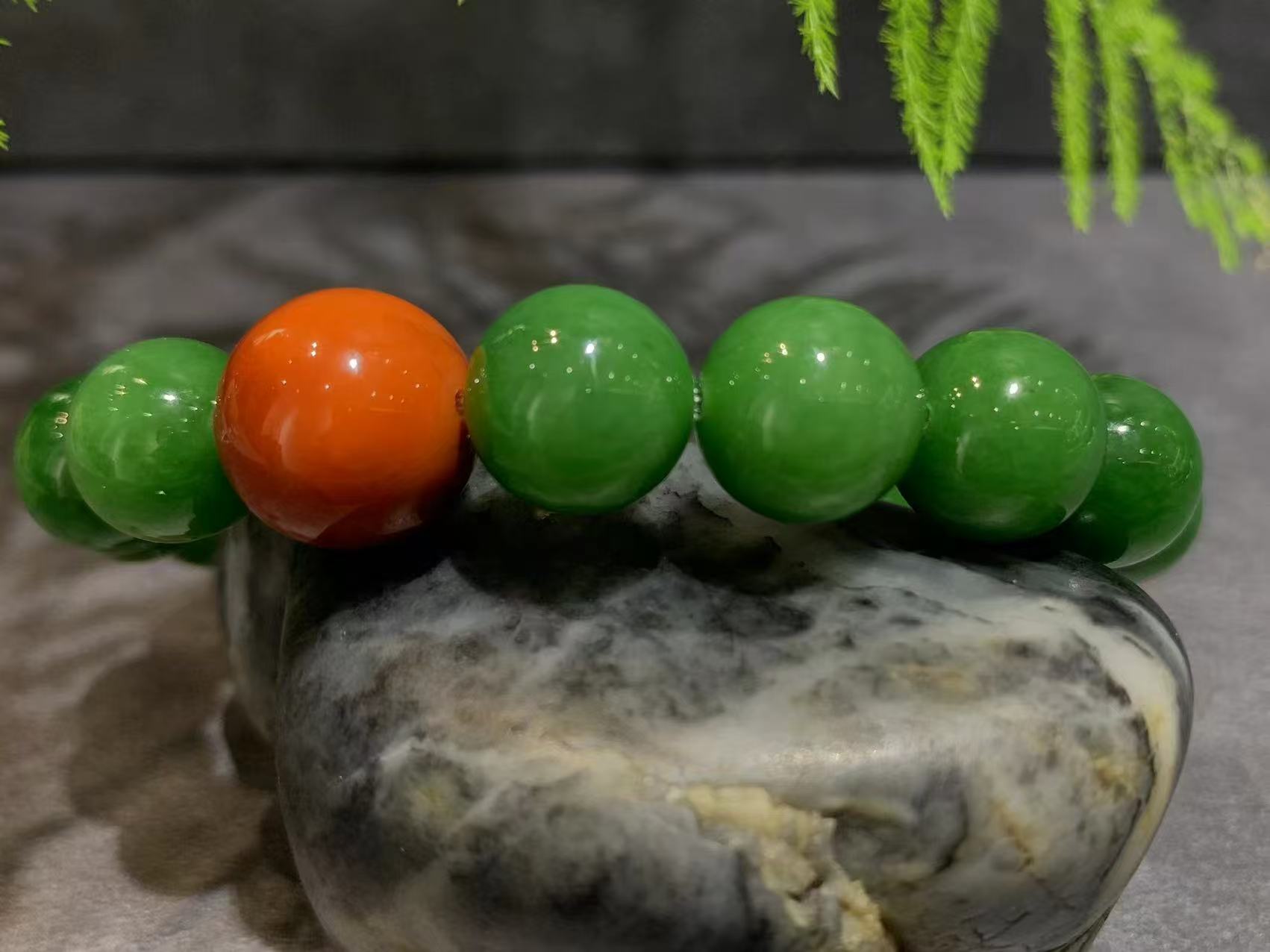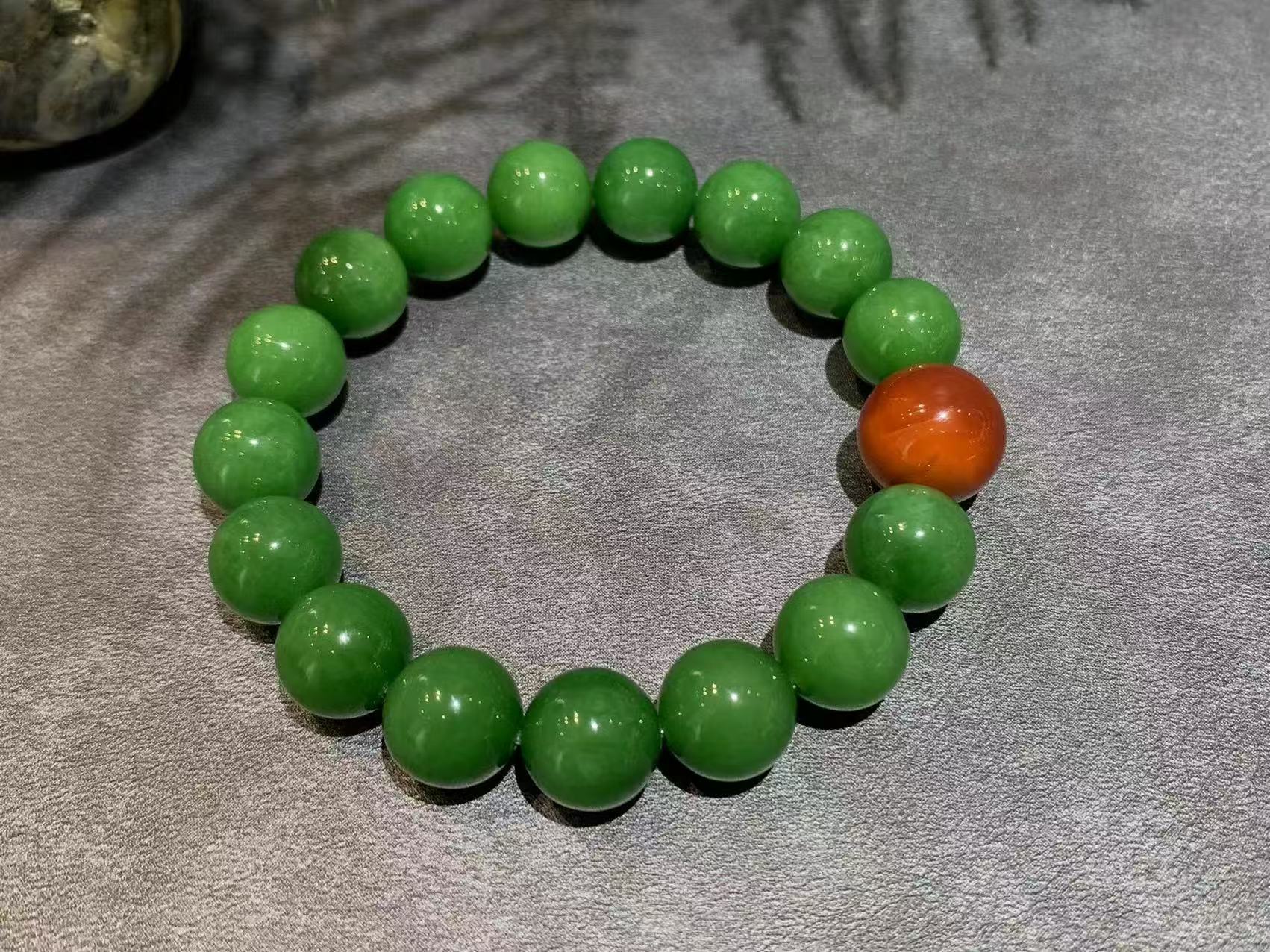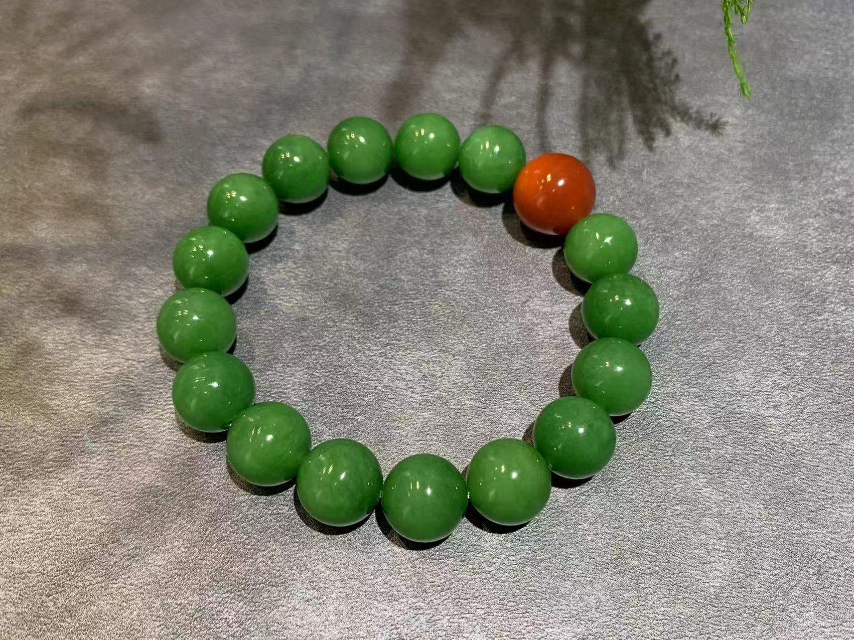 【御珠宫坊】新疆黑羊洞金镶碧玉手链