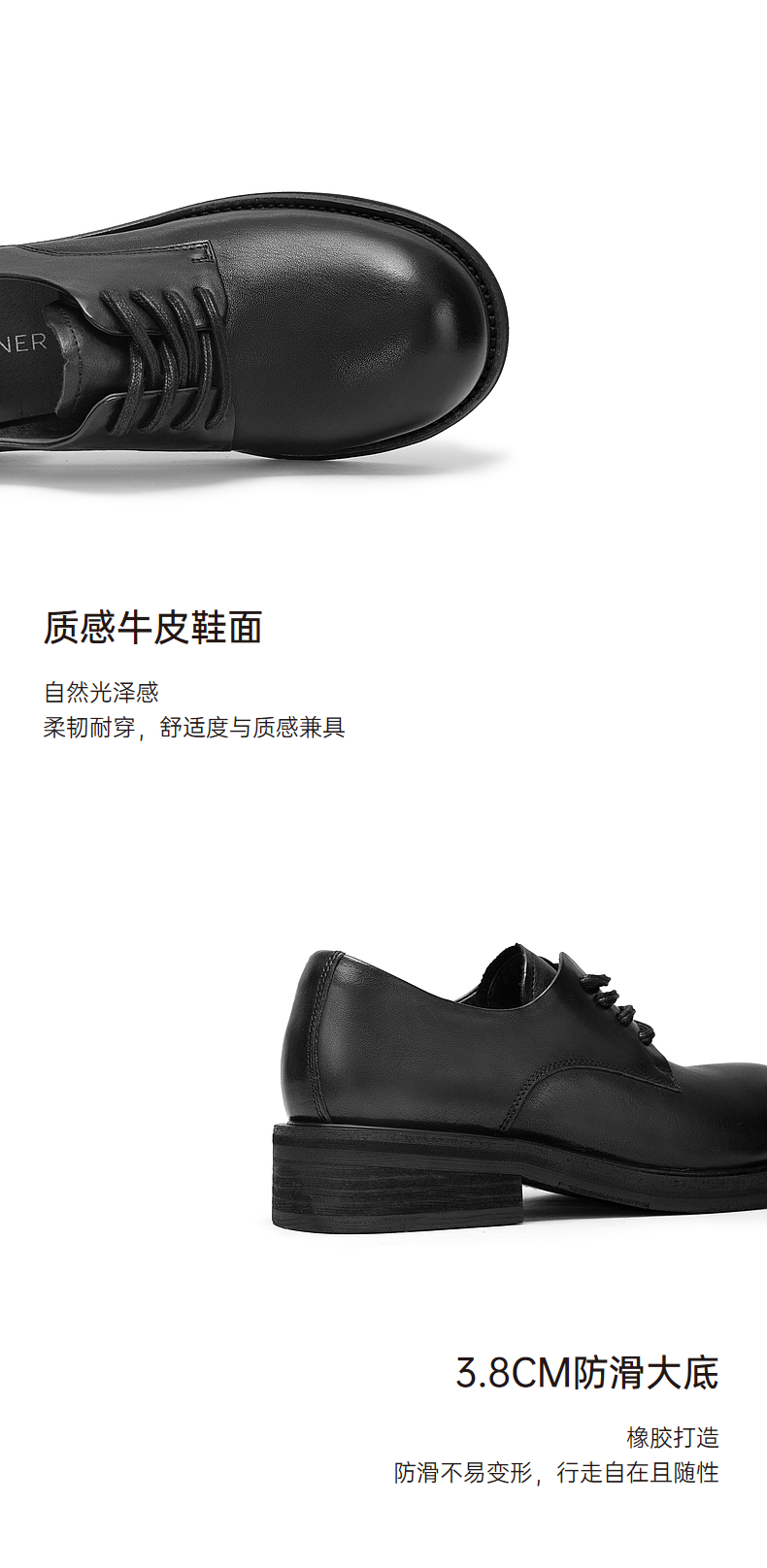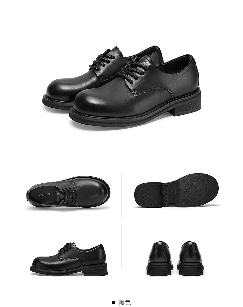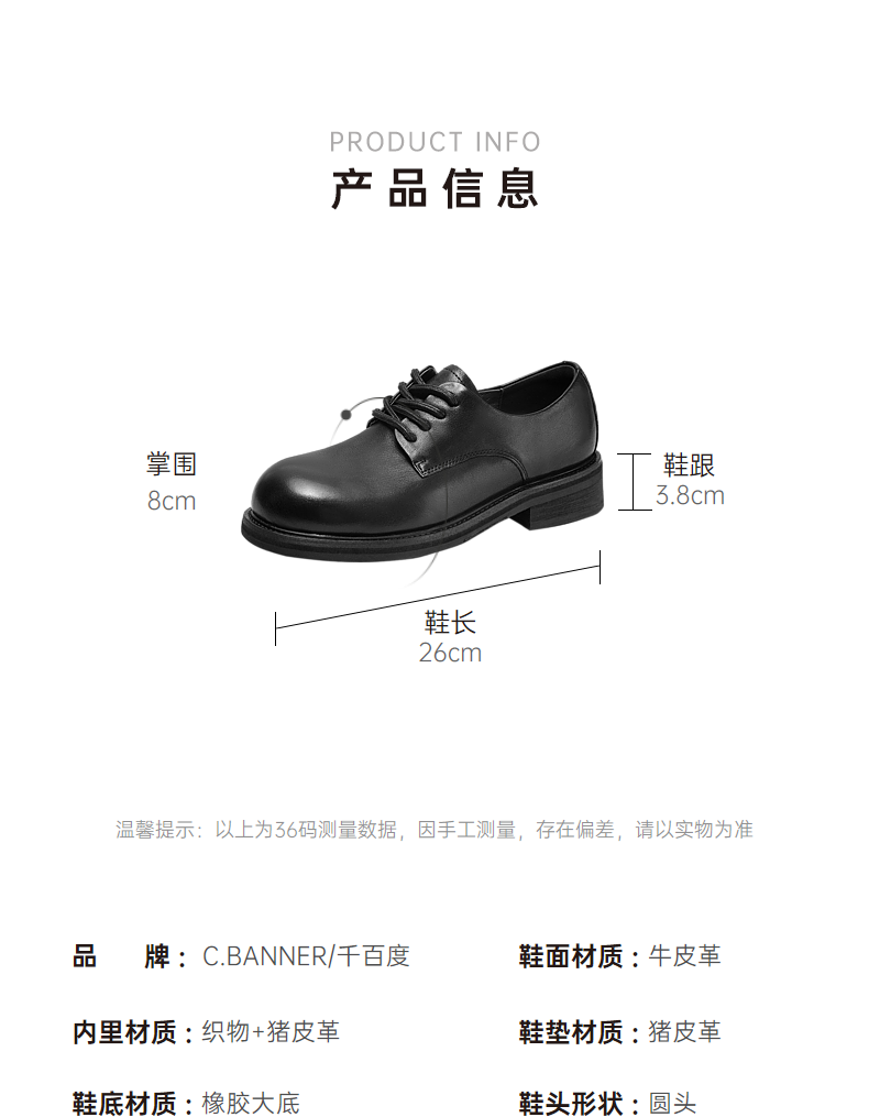 千百度正装小皮鞋女秋冬乐福鞋黑色皮鞋通勤低跟牛津鞋A24483014