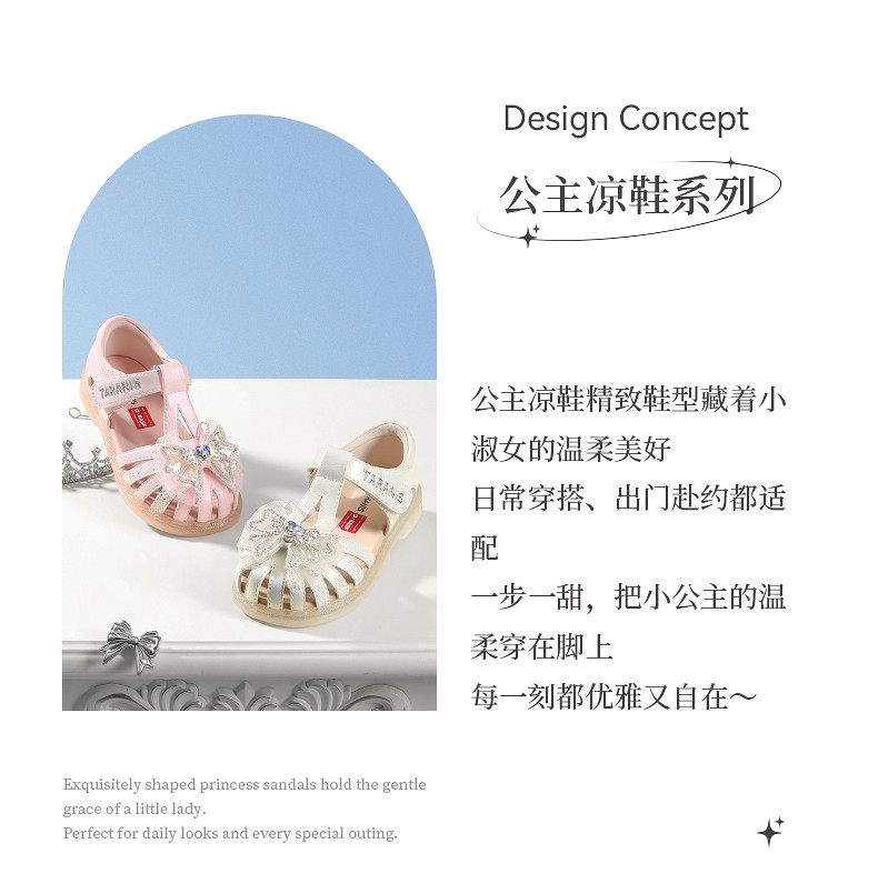 泰兰尼斯meta儿童凉鞋2026夏款新款女童水晶鞋软底女孩公主洋气鞋M07X6B8771