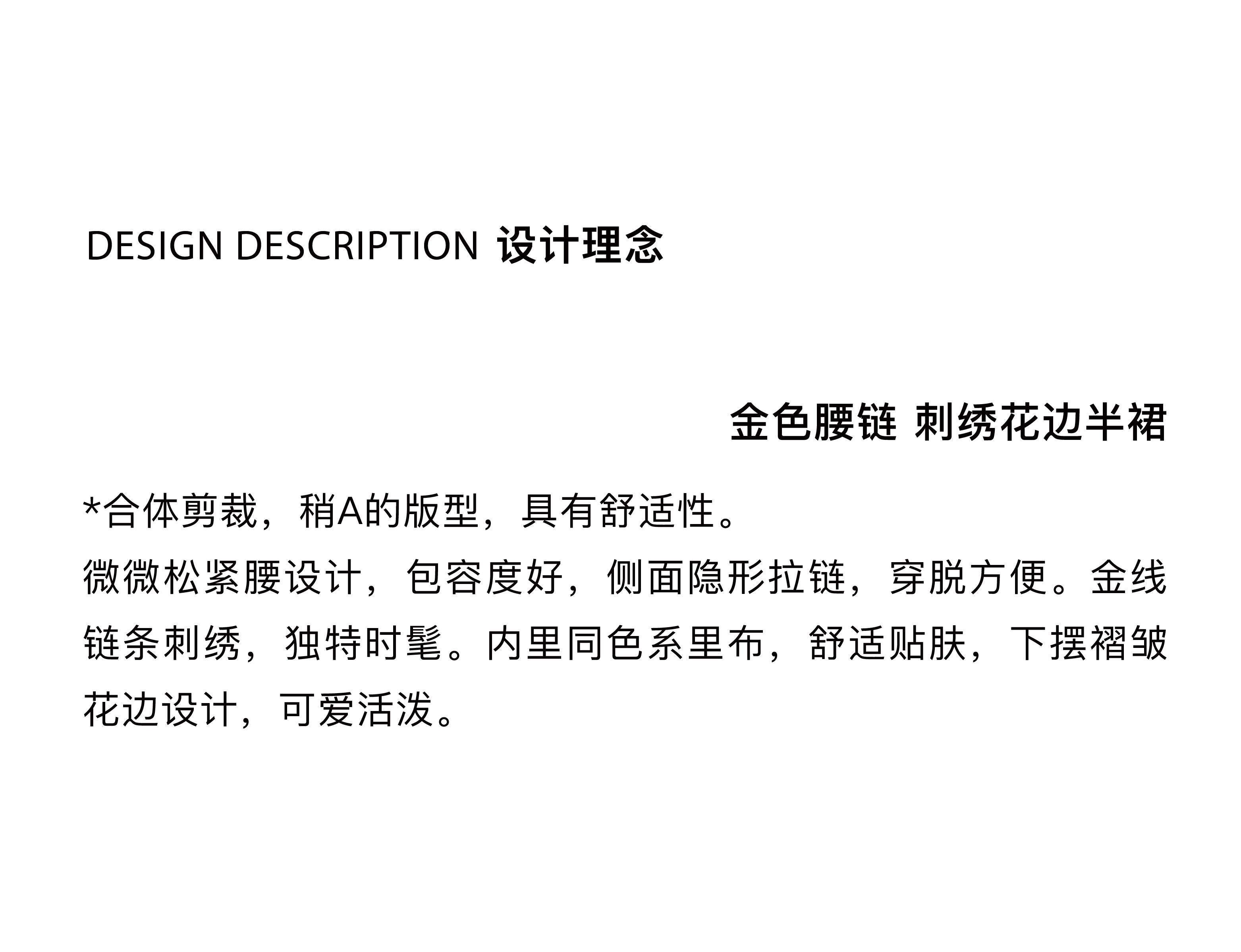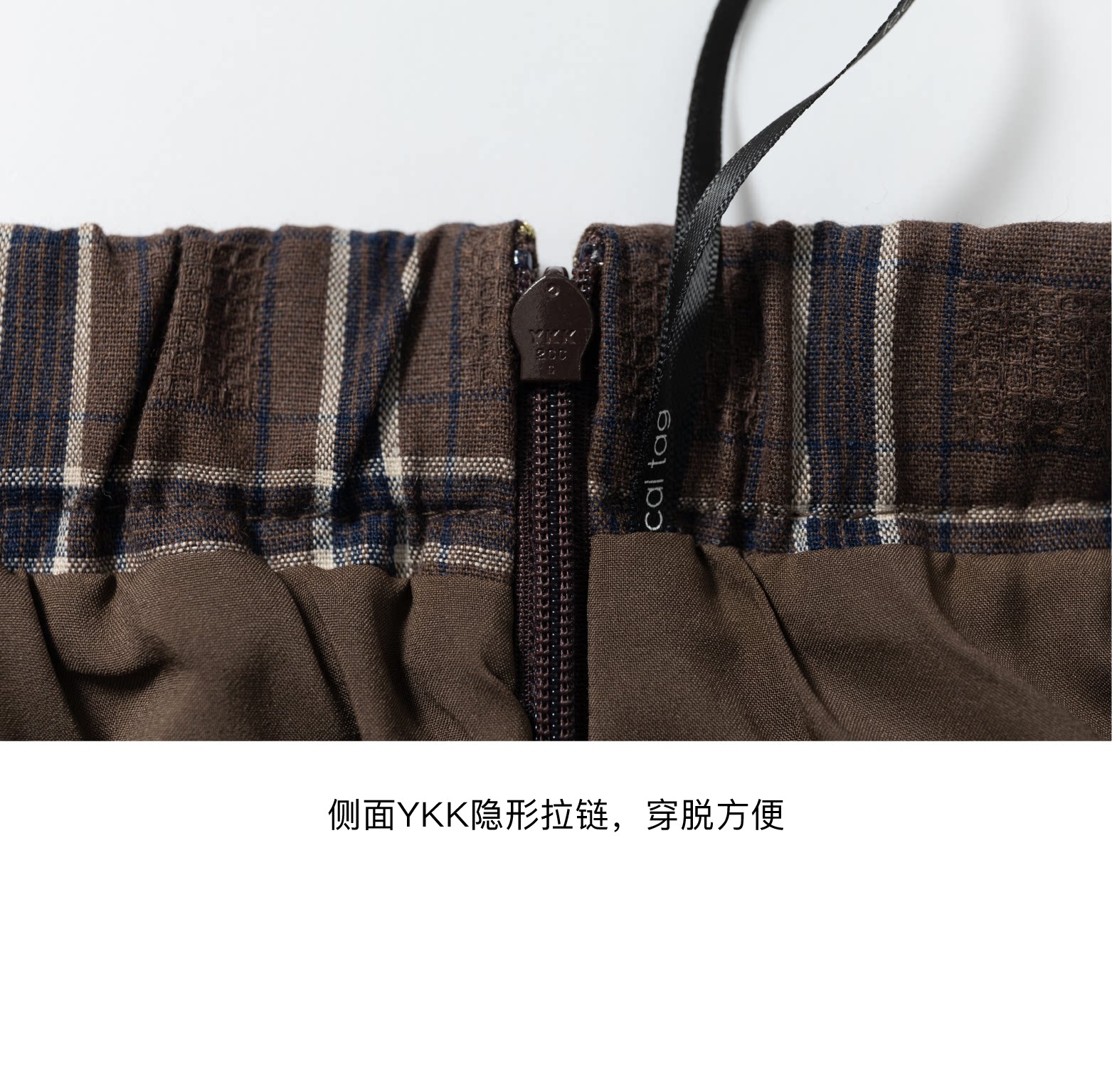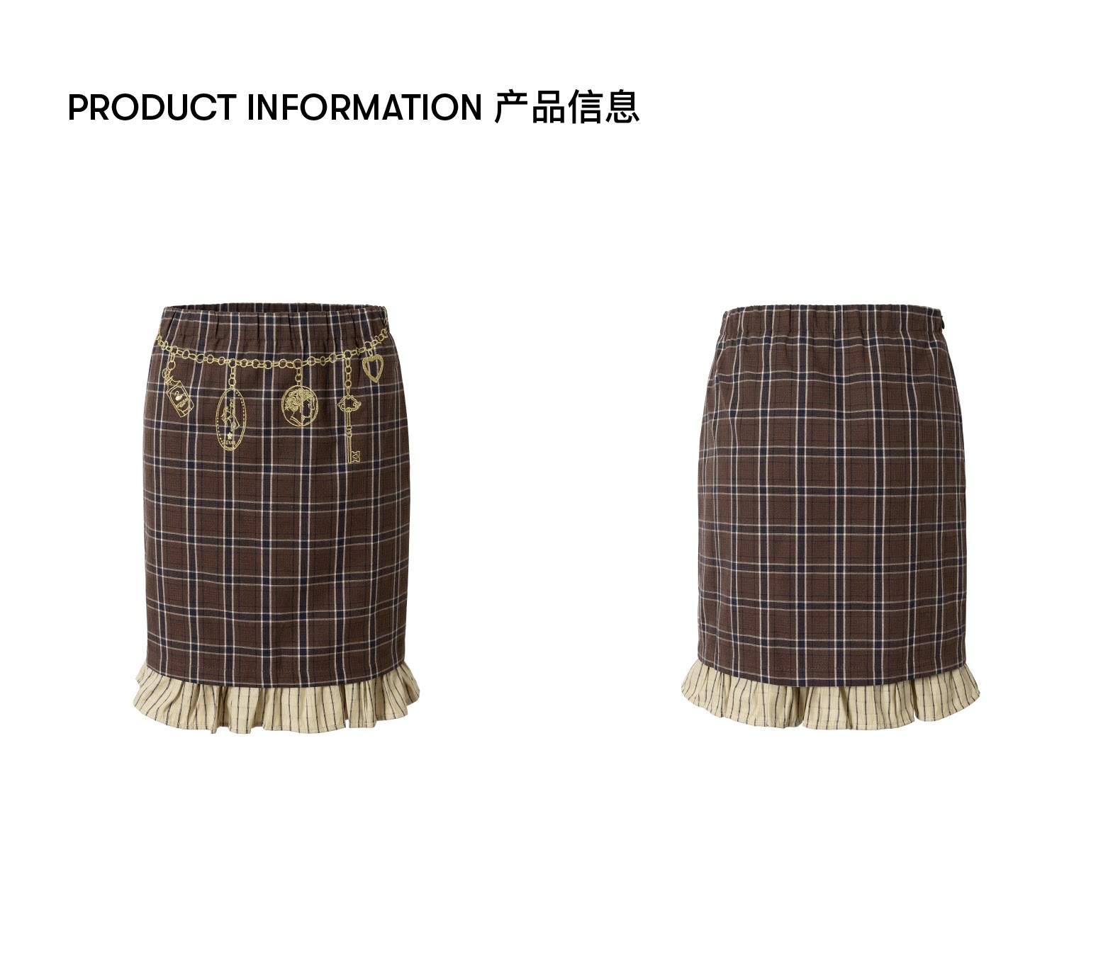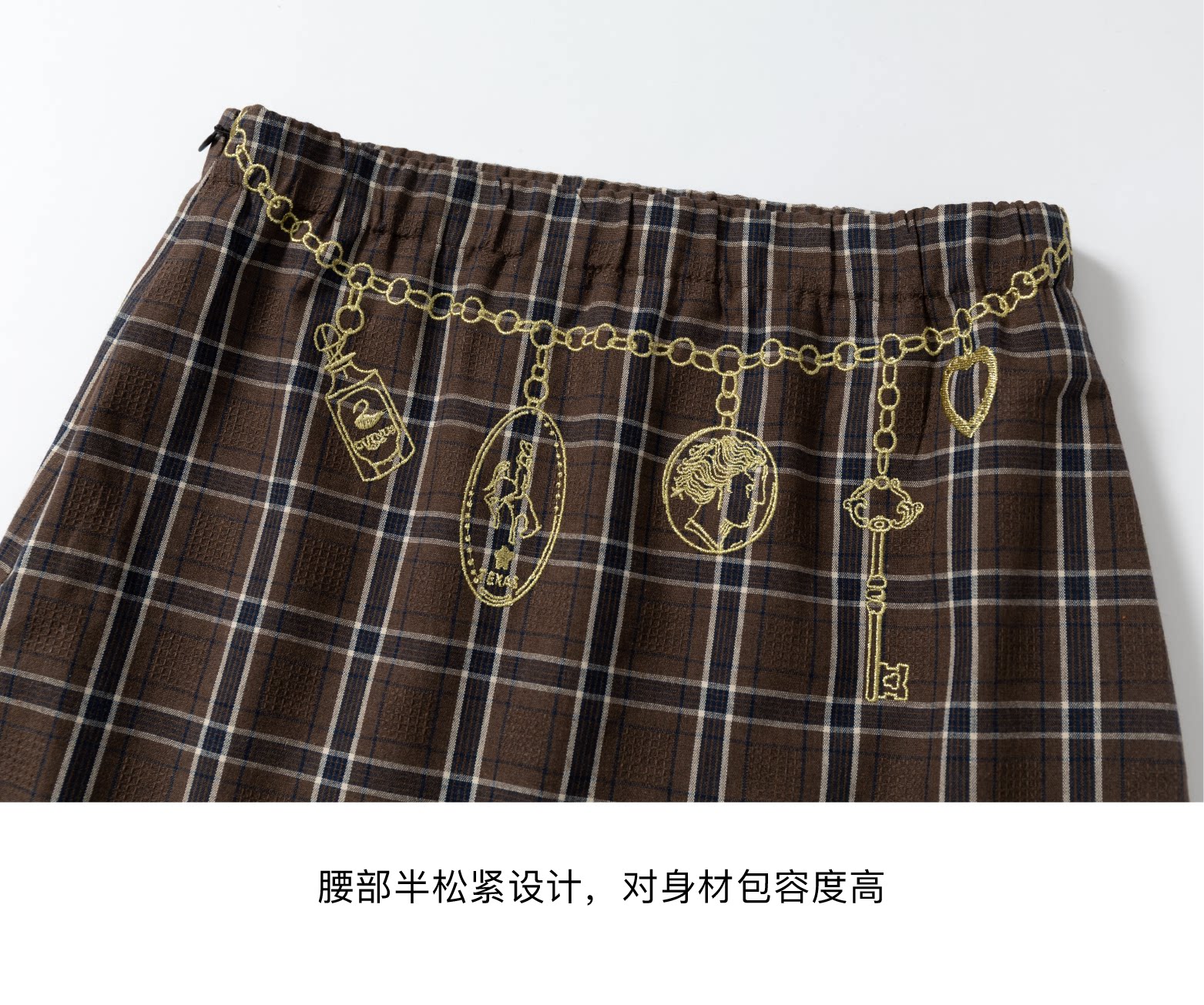 local tag/lt26ssk16/金色腰链 刺绣花边半裙 松紧腰格子拼接短裙
