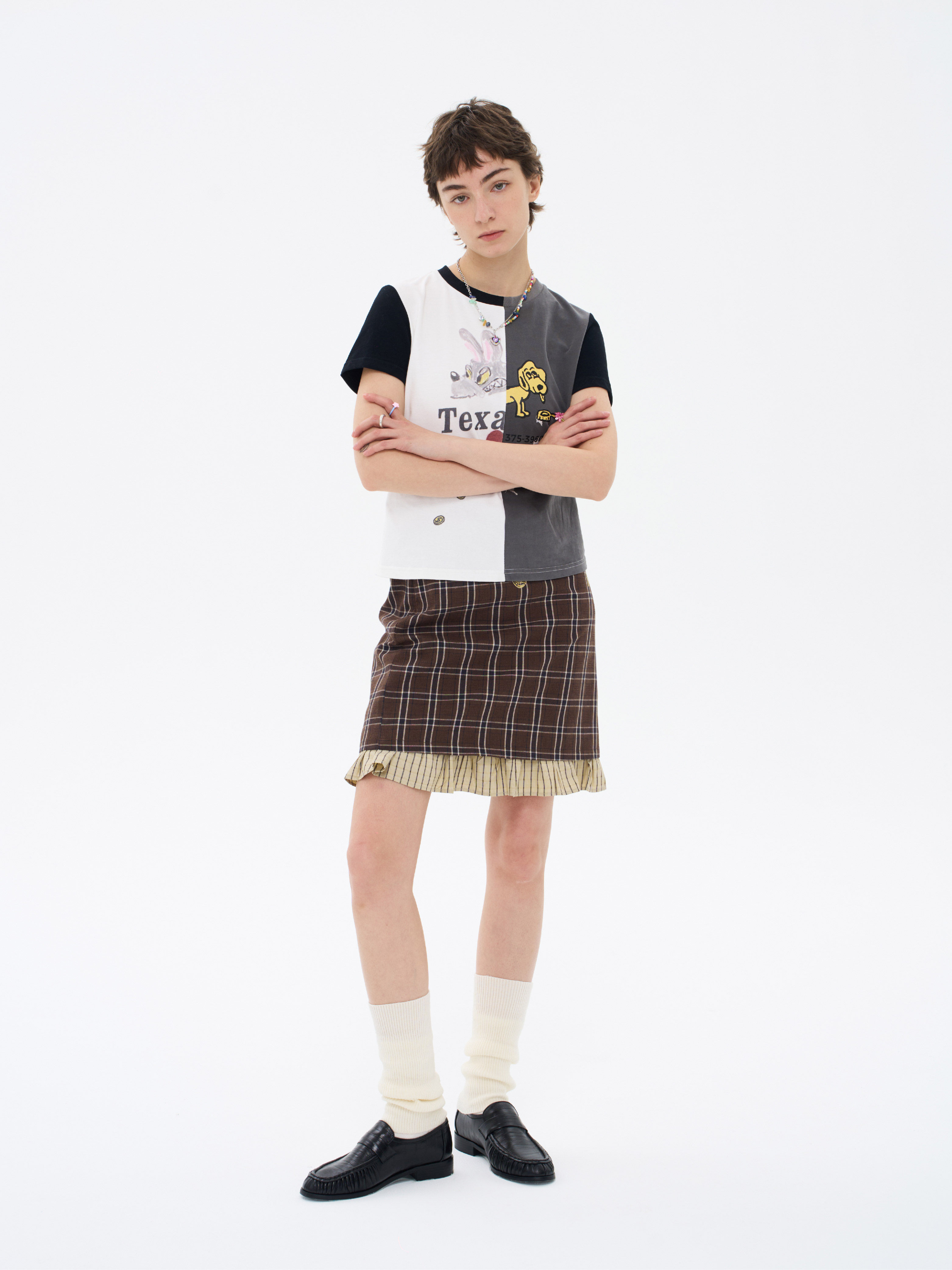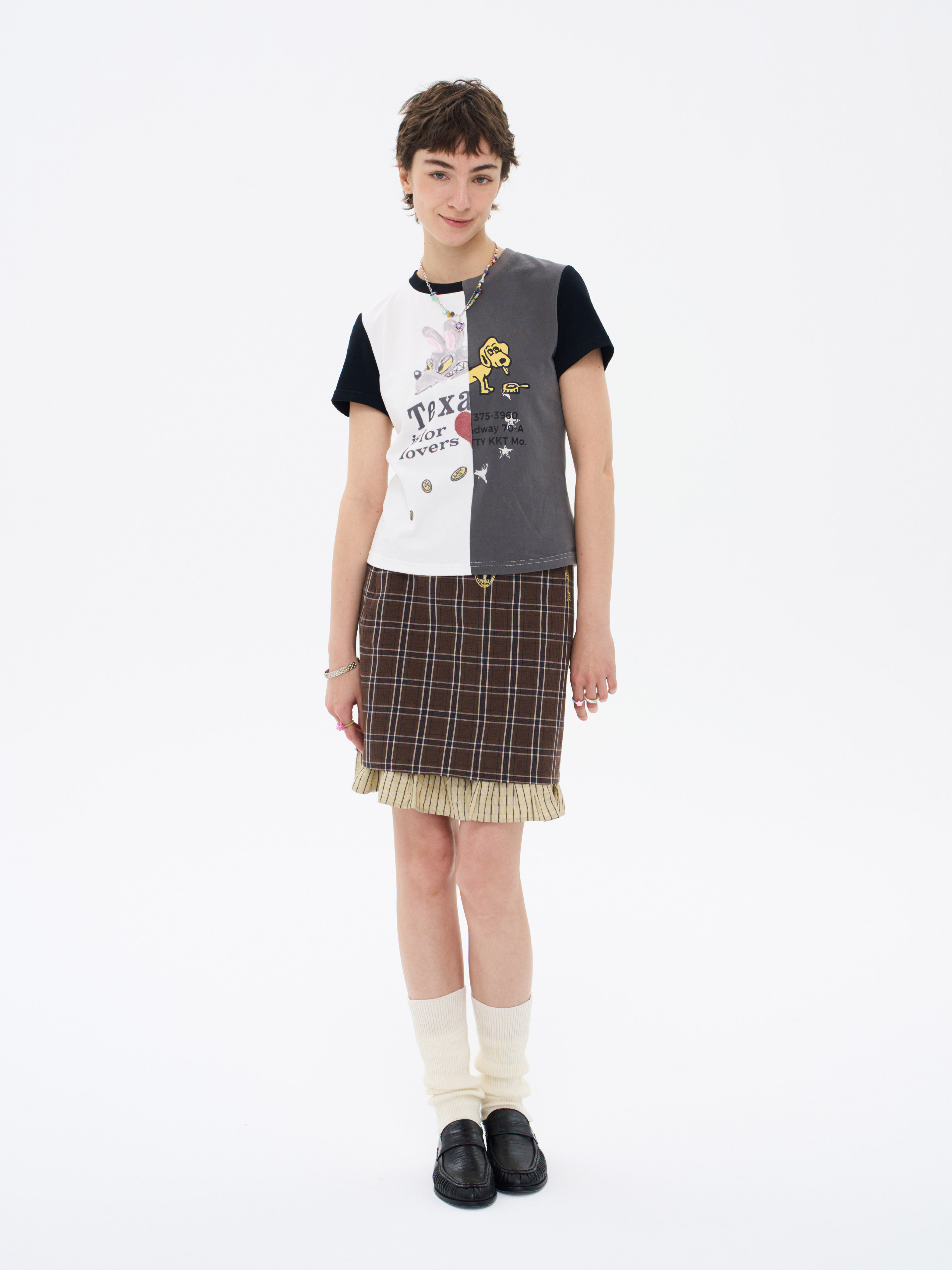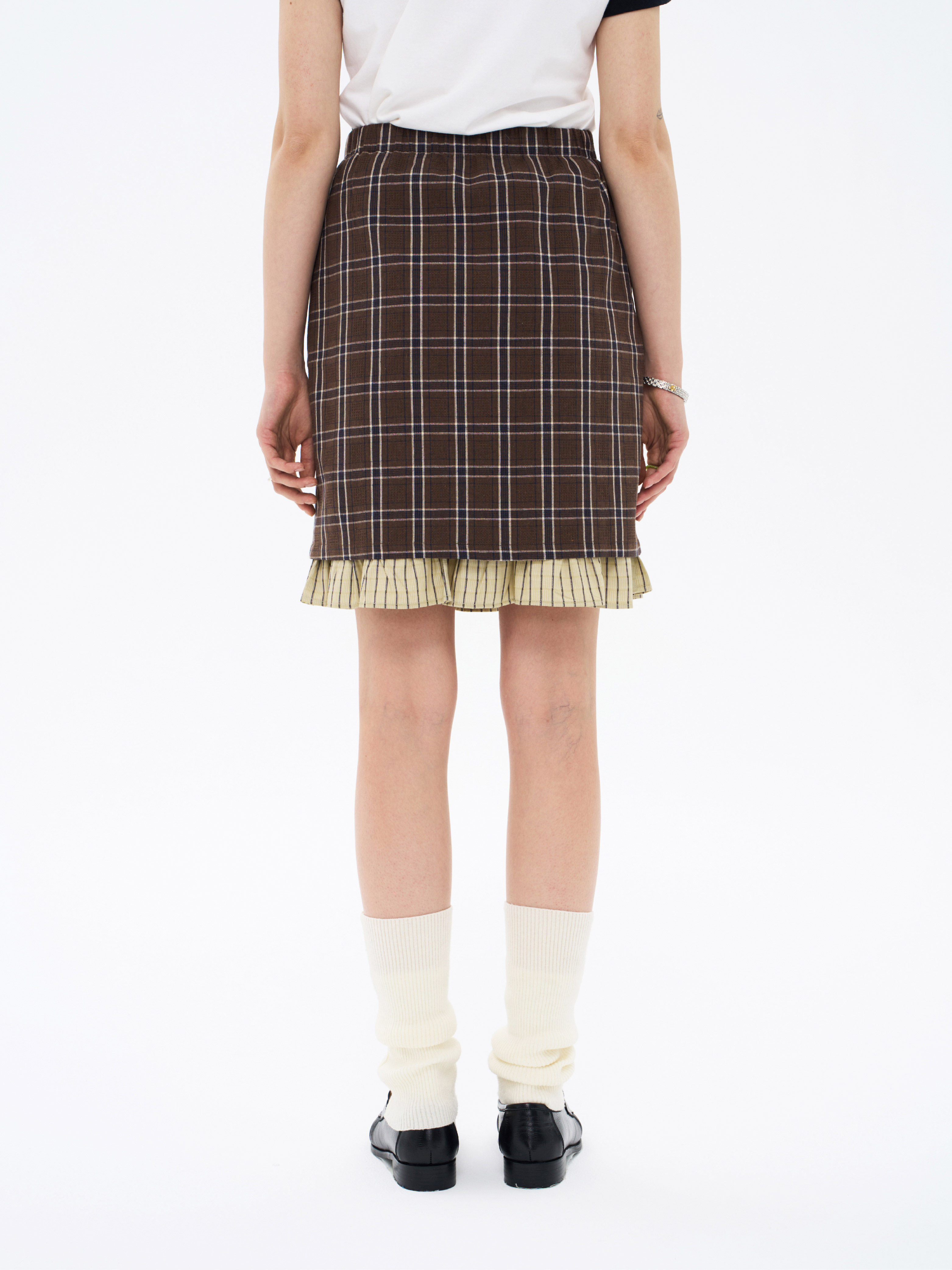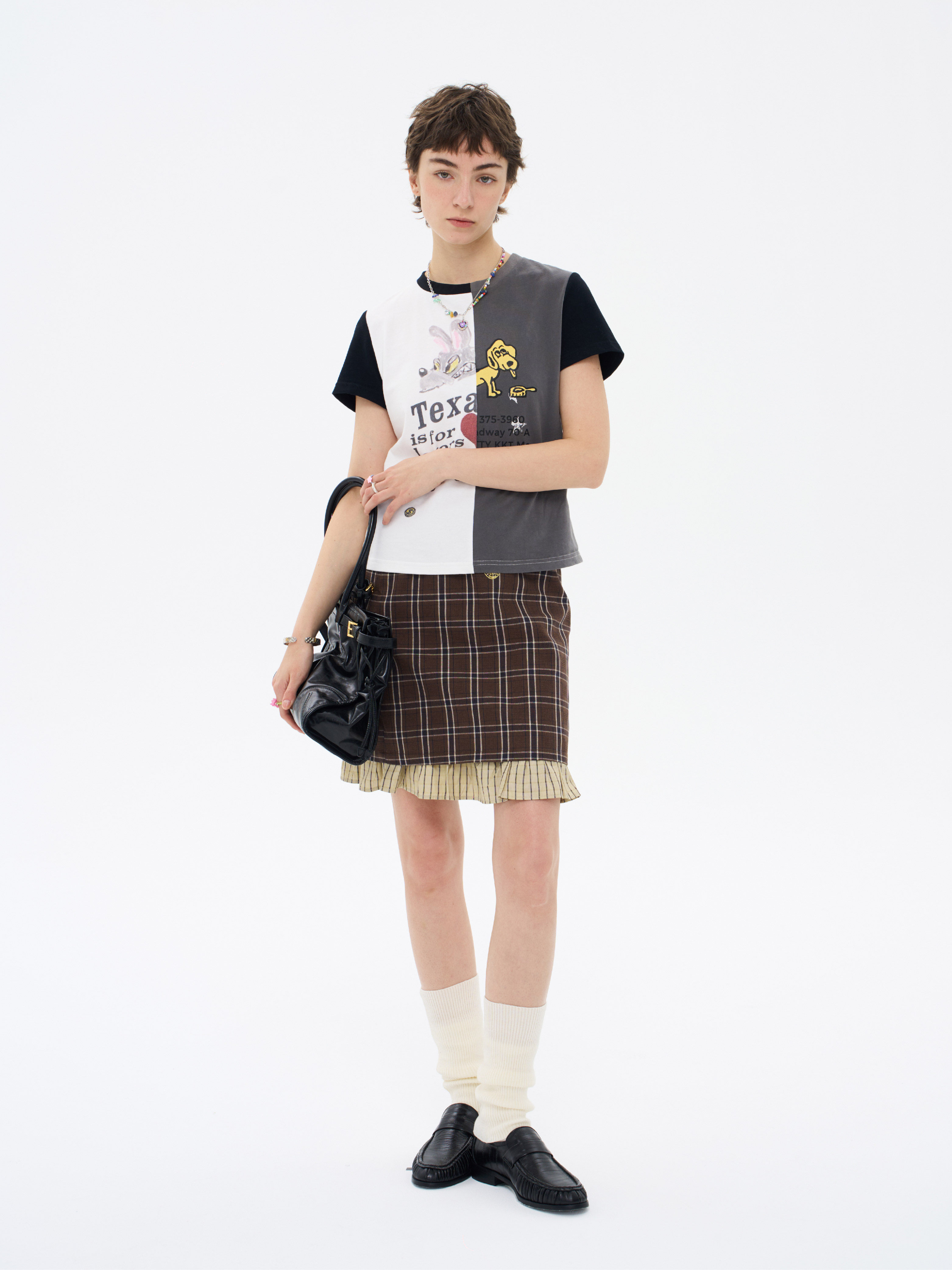 local tag/lt26ssk16/金色腰链 刺绣花边半裙 松紧腰格子拼接短裙