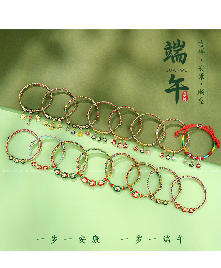 五彩绳手链端午节手绳儿童宝宝手工编织五月节五色线男女粽子红绳