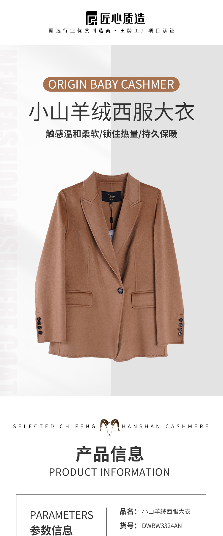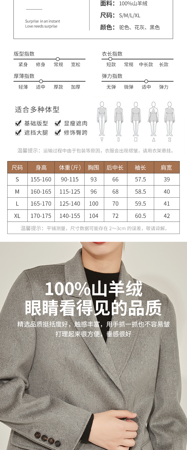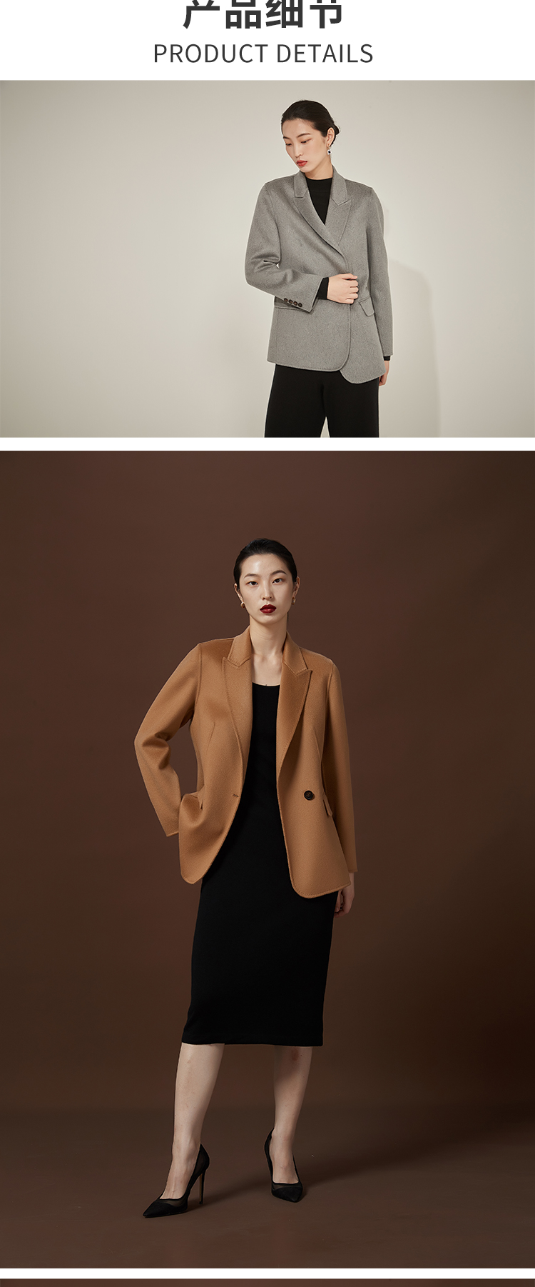东黎 • 小山羊绒女士秋冬西服领双面羊绒呢短款大衣 3324