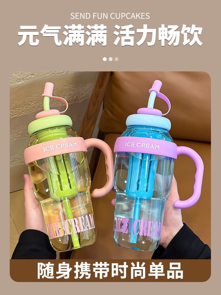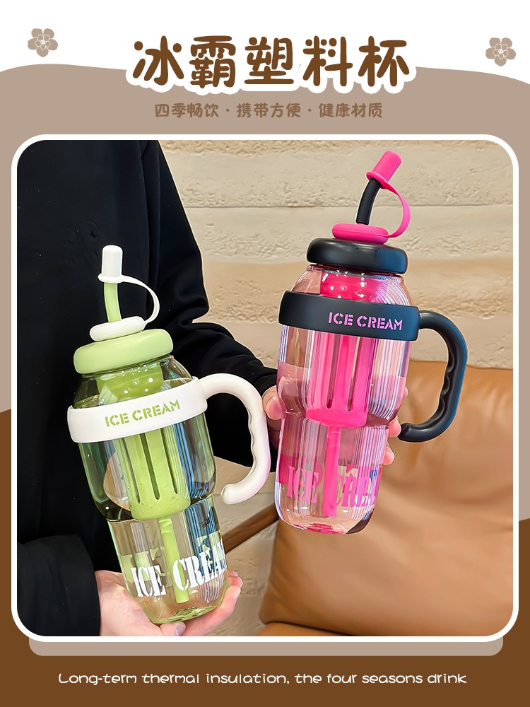 夏天【大容量冰霸杯子】水杯男女新款 办公室学生便携耐高温塑料杯 夏日泡花茶让你爱上喝水