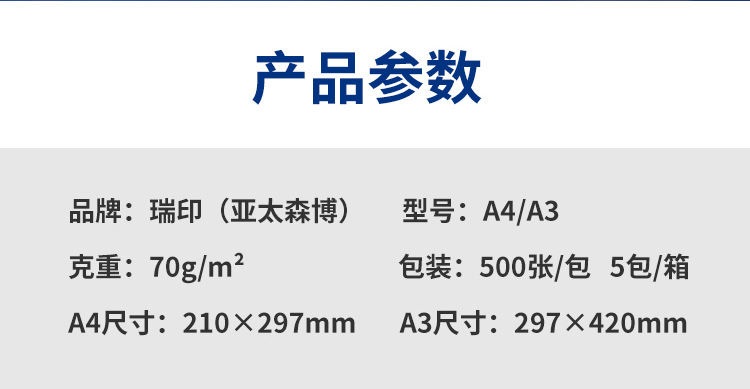 亚太森博复印纸瑞印a4打印纸整箱 办公用纸草稿纸a4复印纸70g批发 商品图1