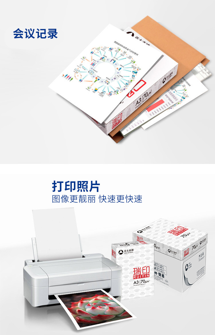 亚太森博复印纸瑞印a4打印纸整箱 办公用纸草稿纸a4复印纸70g批发 商品图2