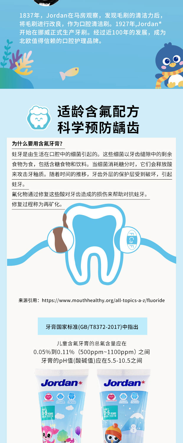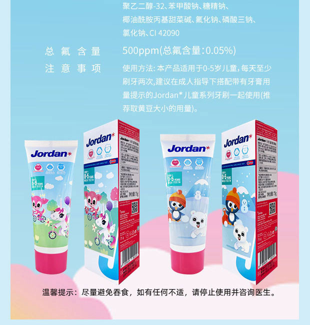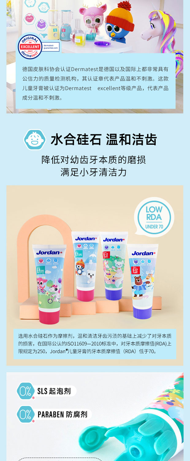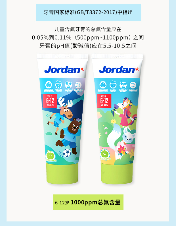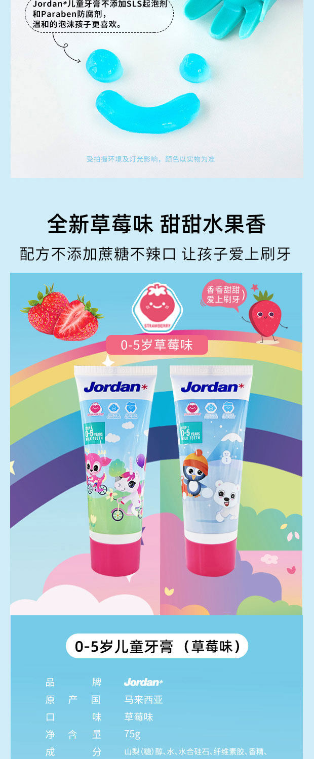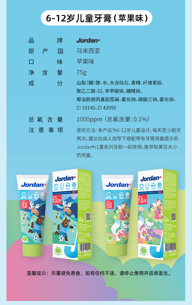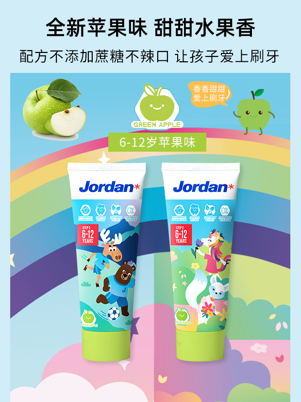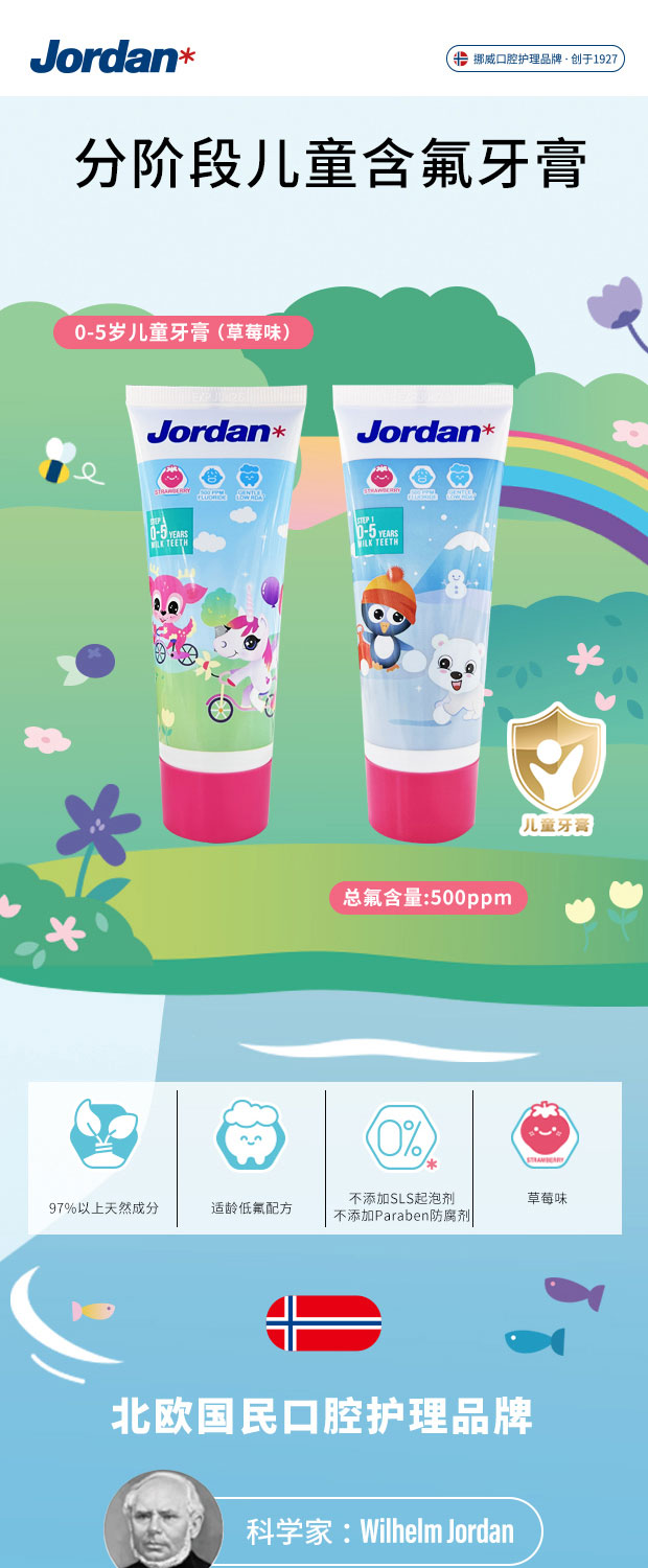 【儿童牙膏】挪威Jordan原装进口儿童牙膏( 0-5岁草莓味、6-12岁苹果味)75g/支