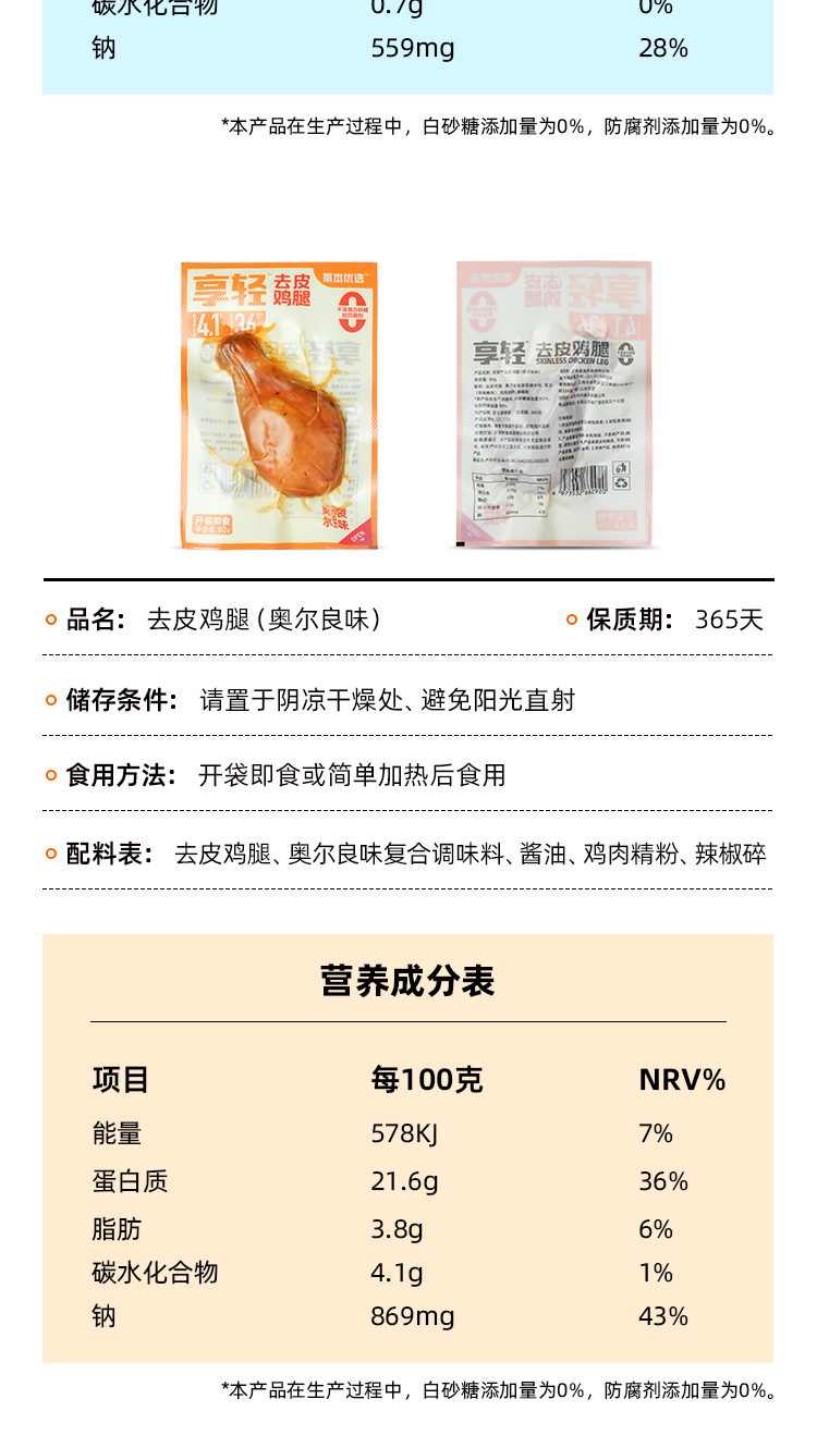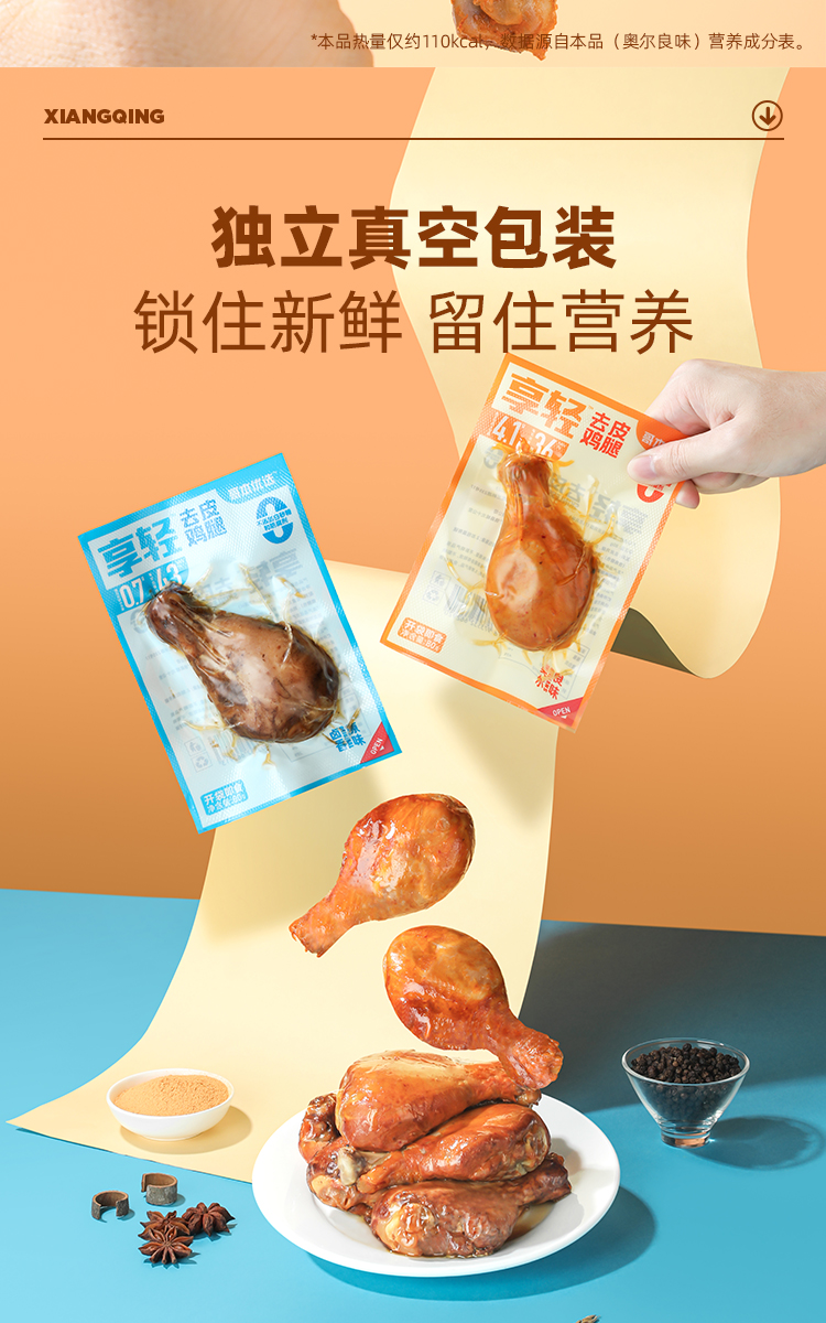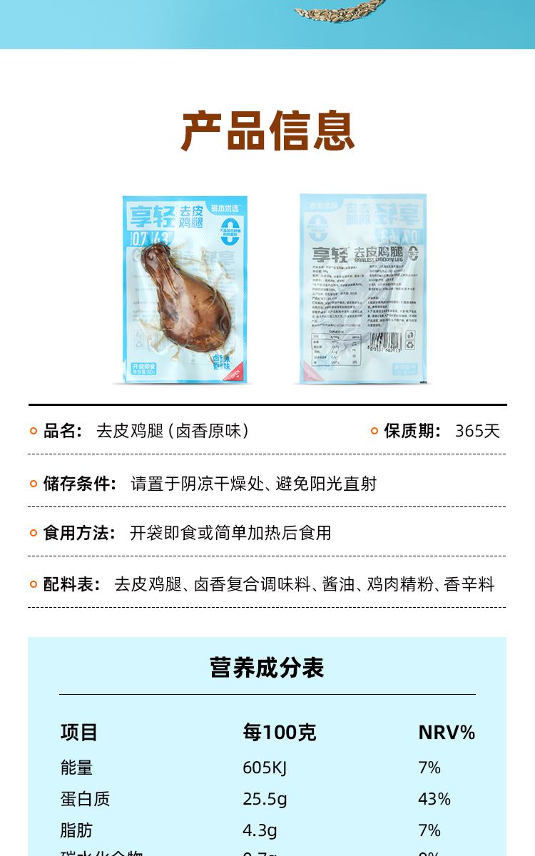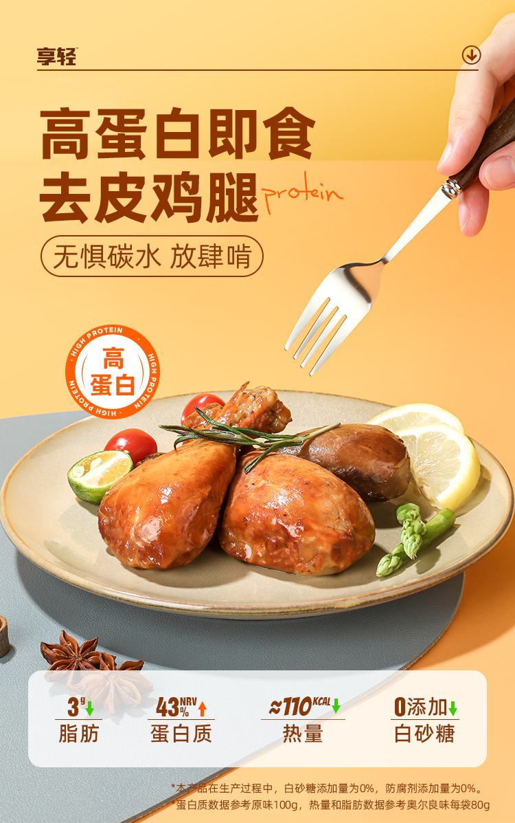 【共享分销】高蛋白低碳水!哥本享轻去皮鸡腿 原味款每百克蛋白质含量43%NRV 精选鲜嫩小鲜鸡肉 二次去皮工艺 去油更控卡!