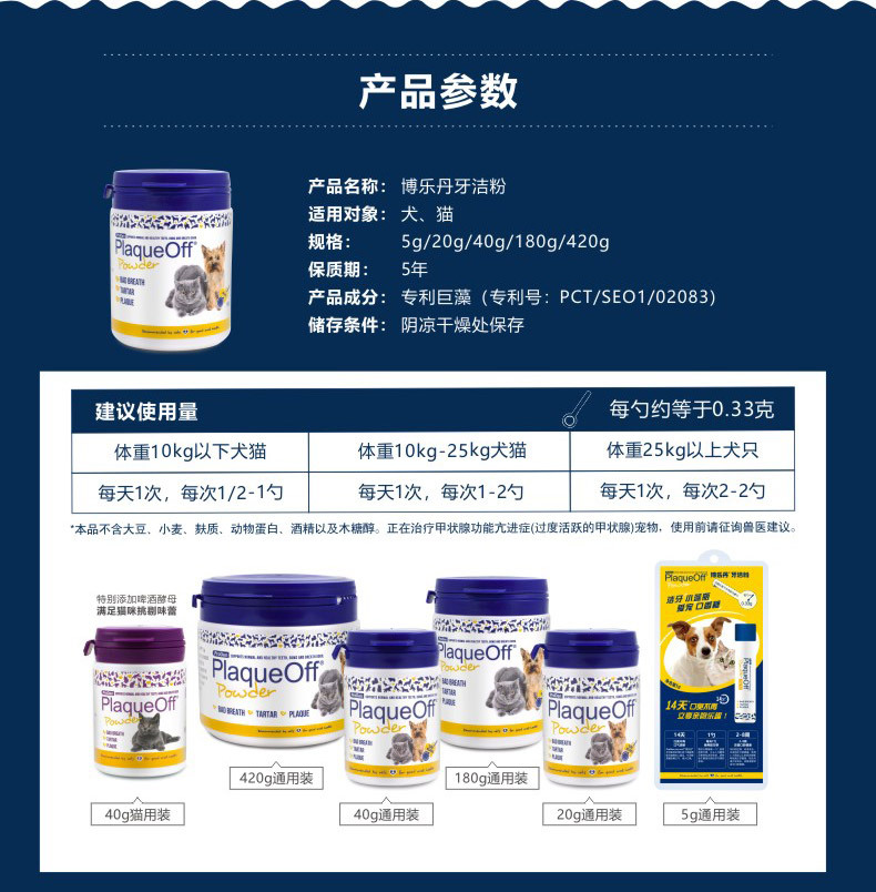 博乐丹洁牙粉(犬猫通用)20g/40g 减少洁牙宠物牙结石口臭