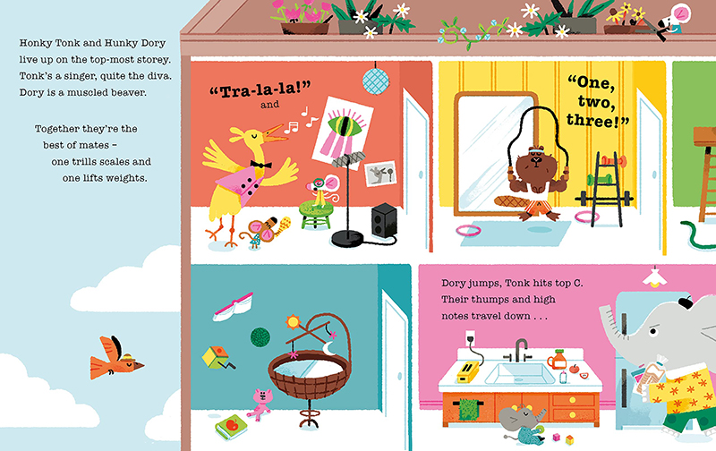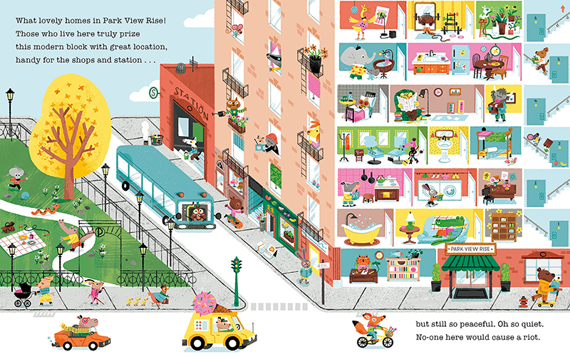 The animals of Park View Rise all love their high-rise home. It's peaceful, calm and quiet - no one here would cause a riot... But when Honky Tonk sings much too loudly, Smart Alec's DIY goes all wrong and Sugar Plum's freshly baked treats are ruined, well, all hell breaks loose! Luckily, Kitsy Bitsy arrives just in time to teach her neighbours about the importance of kindness... and an enormous cake brings everyone together for a party!